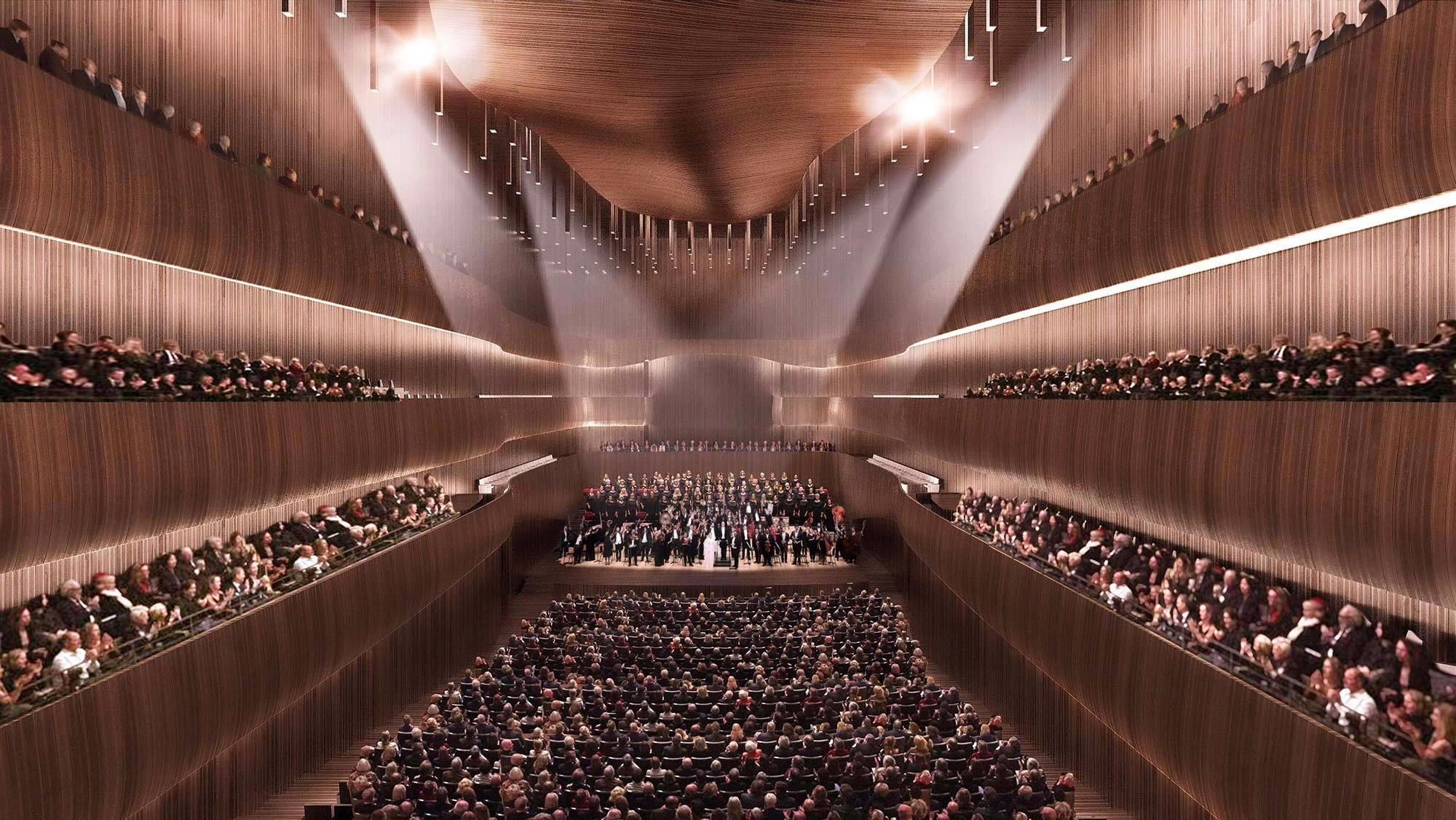 The form is inspired by the Lithuanian Kankles, a trapezoidal zither of hollowed out wood, the columns recalling the strings of the instrument and the roof openings representative of the sound holes. It seemed fitting that such a prestigious concert hall should pay tribute to an instrument that is such an important part of Lithuanian culture.