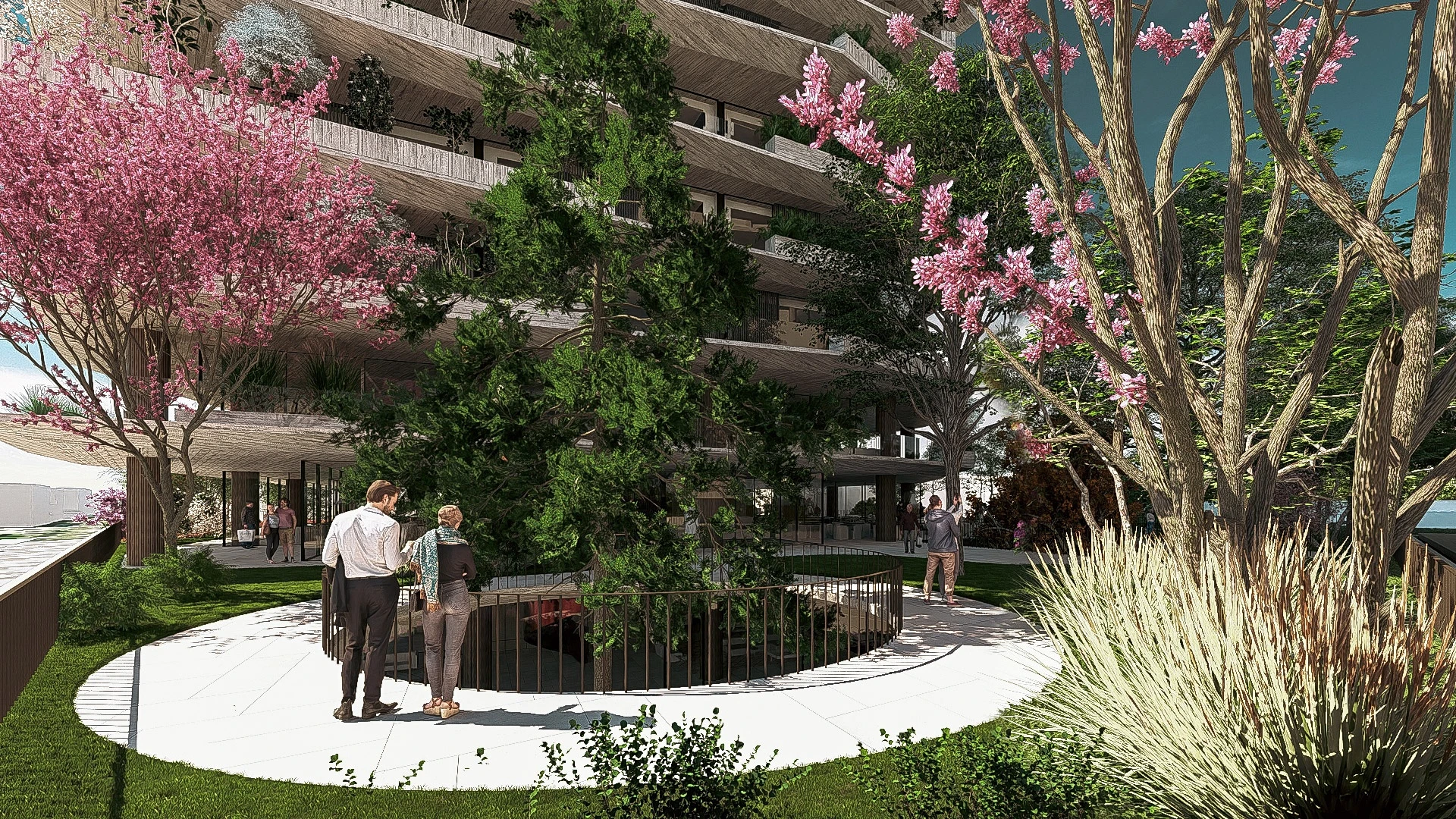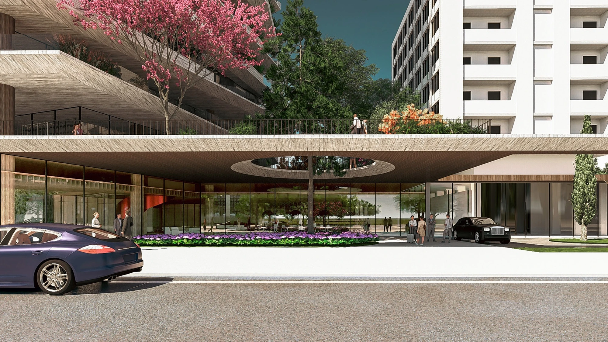 Inside, the ground floor houses foyers for both hotels, an apart-hotel entrance and amenities such as a restaurant, a bar, a 25-meter pool and a spa flanked by secret gardens, while the first floor offers fine dining and a 2,600-square-meter garden, open to all. Co-working spaces and meeting rooms surrounded by 700 square-meters of green terraces occupy the second floor.