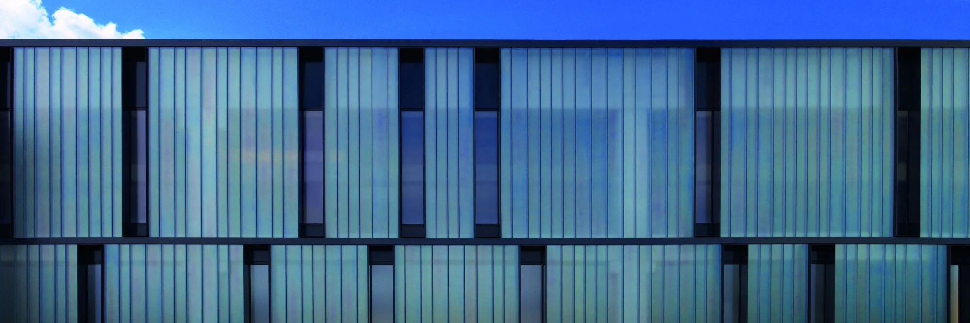 The signature feature of the 10,000 square-meter building is its external cladding, which encompasses both the pre-existing parts of the structure and a completely new complex. The façade is punctuated at irregular intervals by narrow, black steel, window frame insets with horizontal glass lamellas. These provide an additional source of natural light and contribute to the pleasant circulation of air inside the building. On the north side of the building, two cubic structures made of sandblasted, reinforced slab concrete dominate the headquarters, a reference to the Italian architect Carlo Scarpa.