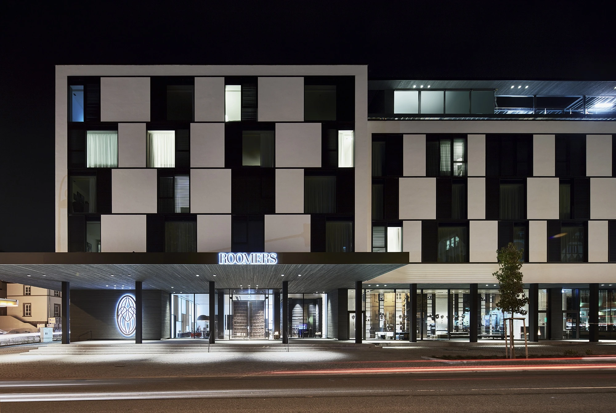 Located in one of the most prestigious areas of Baden-Baden, the Roomers Hotel is an urban project designed with KHP architekten. The hotel offers a unique destination with proximity to the main services of the city, the adjacent City Concert Hall and a beautiful park. It features 130 rooms and suites, restaurant, bar, a spa and outdoor pool with a rooftop bar. The main characteristic of the public areas is the generous open space, separated into different areas and surrounded by a full height glass façade evincing the feeling that the building is suspended in some way and establishing a strong connection between the inside and the outside. The welcoming and congenial quality of the public areas is even more present in the guest rooms. Natural materials, such as wood and stone, are used along with light colours to convey a relaxed and a comfortable atmosphere.