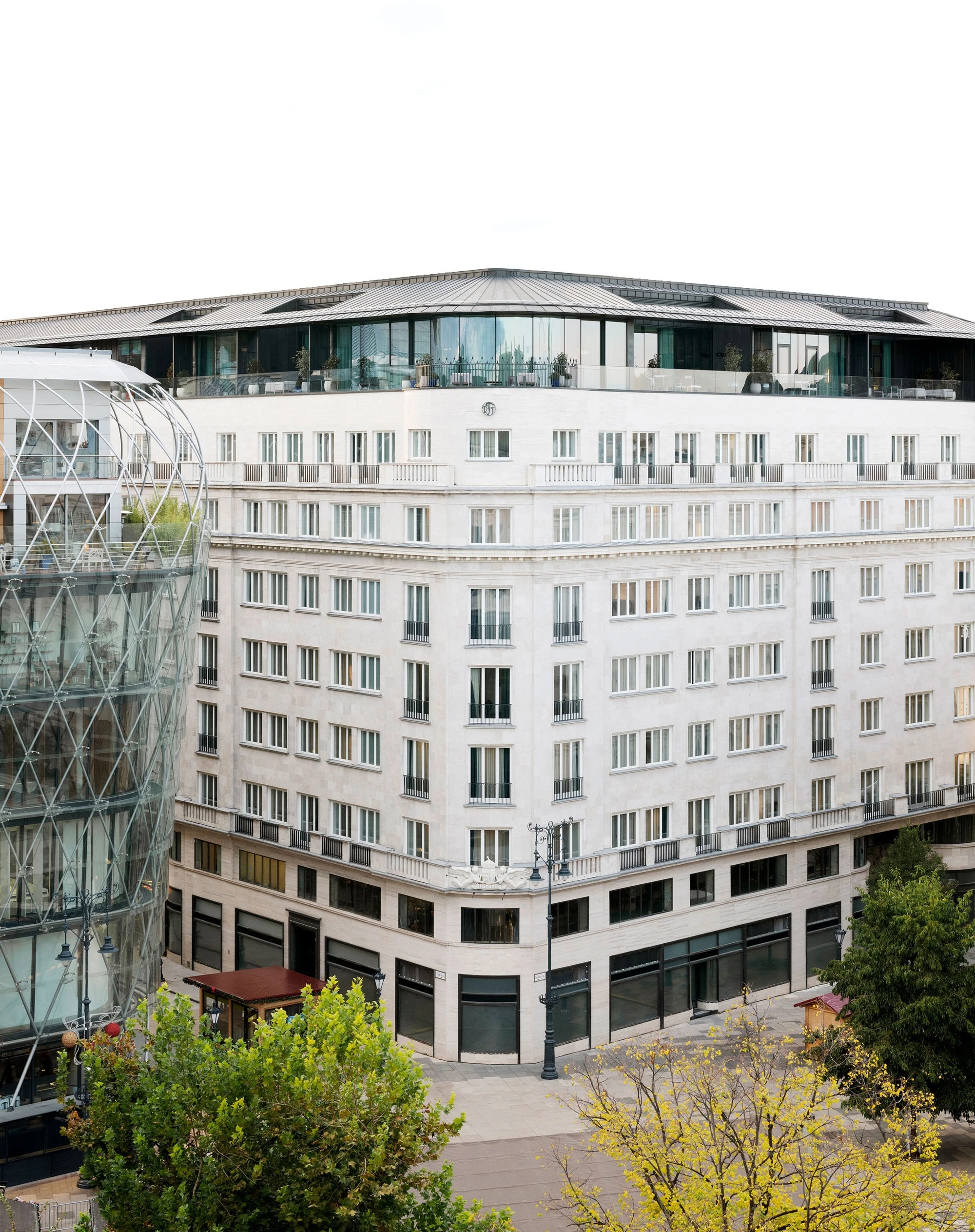 The architectural project reconfigures the roofs into a new piano nobile that can be used by hotel clients, residents and the general public alike.