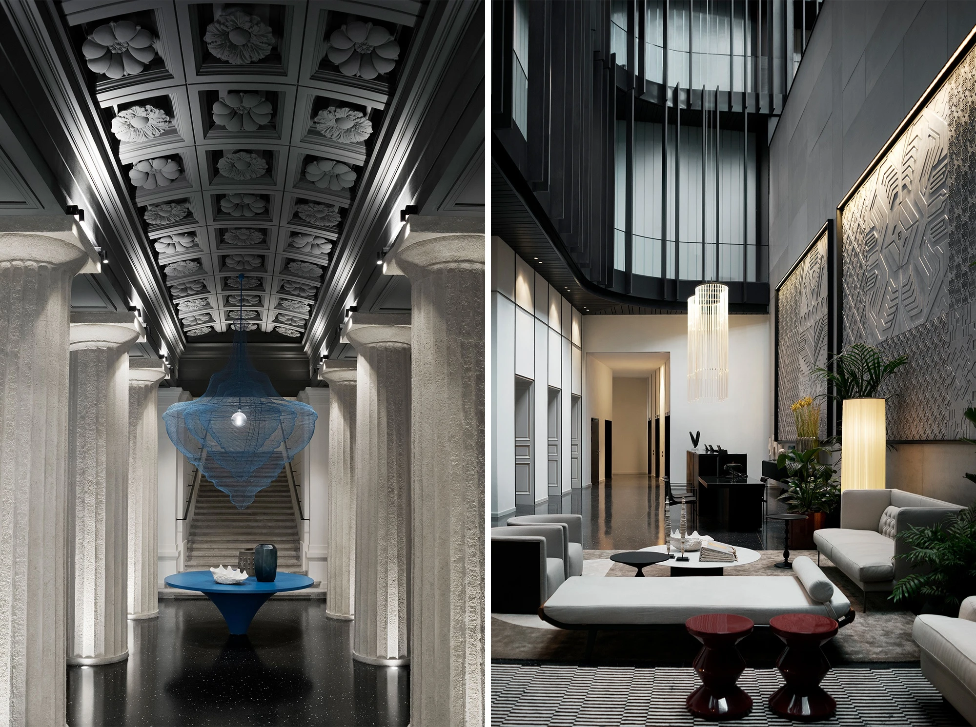 The historical context and the enhancement of important architectural features is also the starting point for the development of the hotel's interior design, where the interpretative matrix is again contemporary and introduces unexpected and sometimes ironic elements.