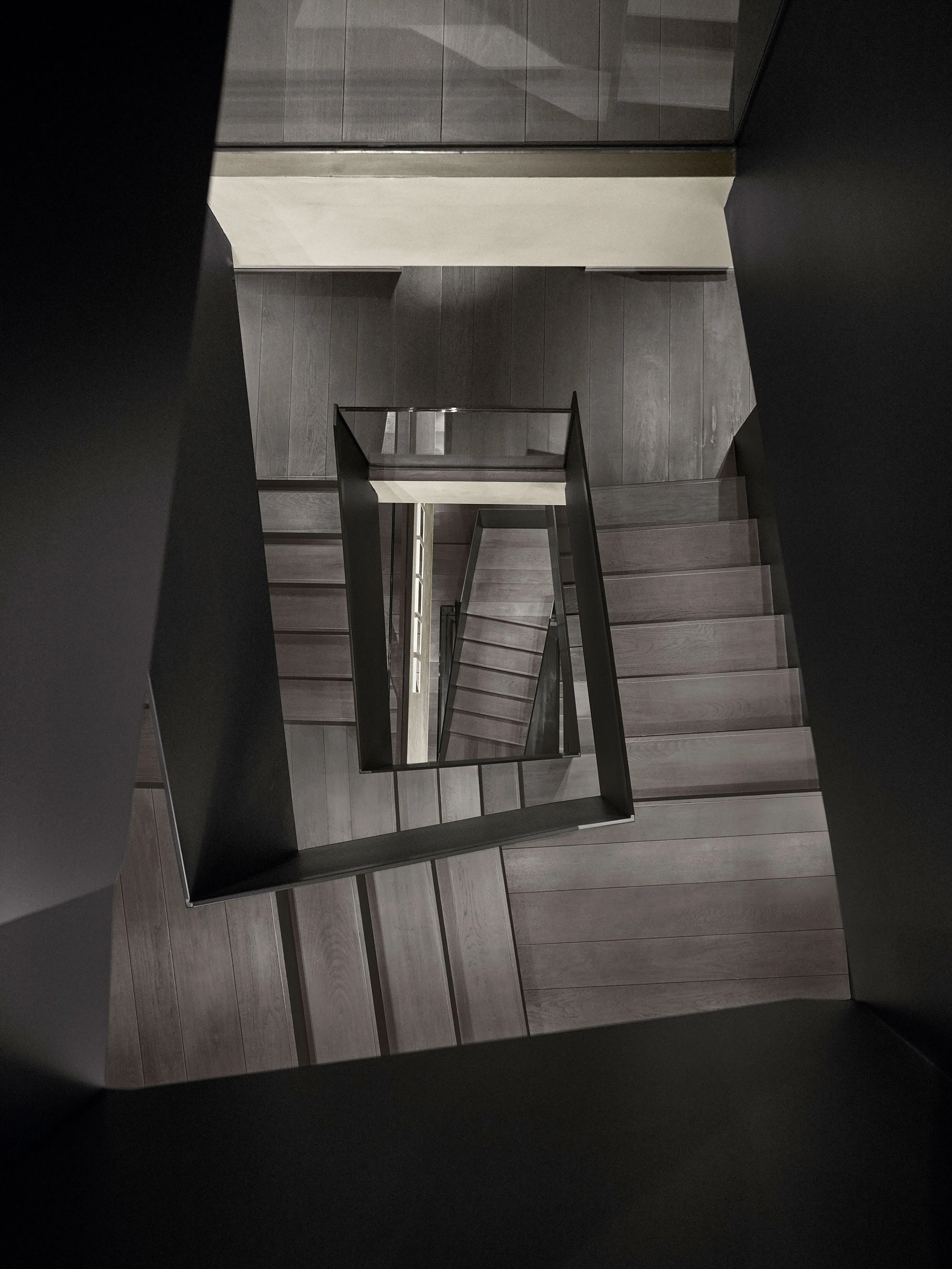 “This house very delicately reinterprets the complexity of a Dutch building. Almost as if the project was inspired by Escher, there are spaces that merge into each other, staircases that lead somewhere... But above all we used a dual language, so while we sought to respect the original architecture as far as possible, we also integrated elements that are ultra contemporary: large glass alcoves, glazed surfaces where possible and unexpected spaces such as a secret sunken patio.” - P.L.