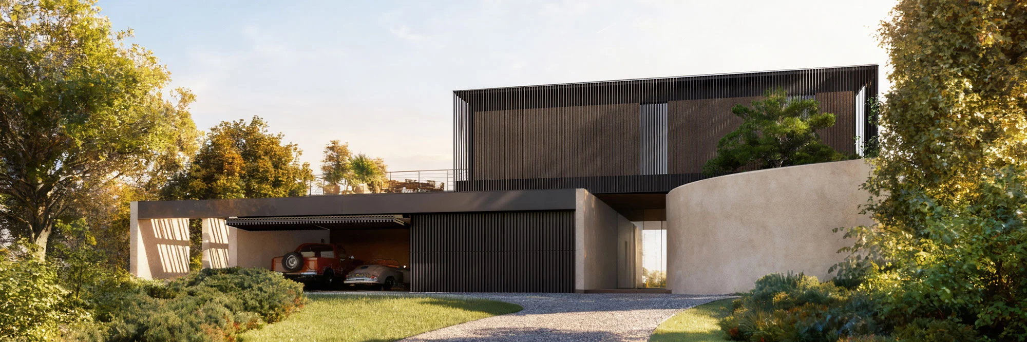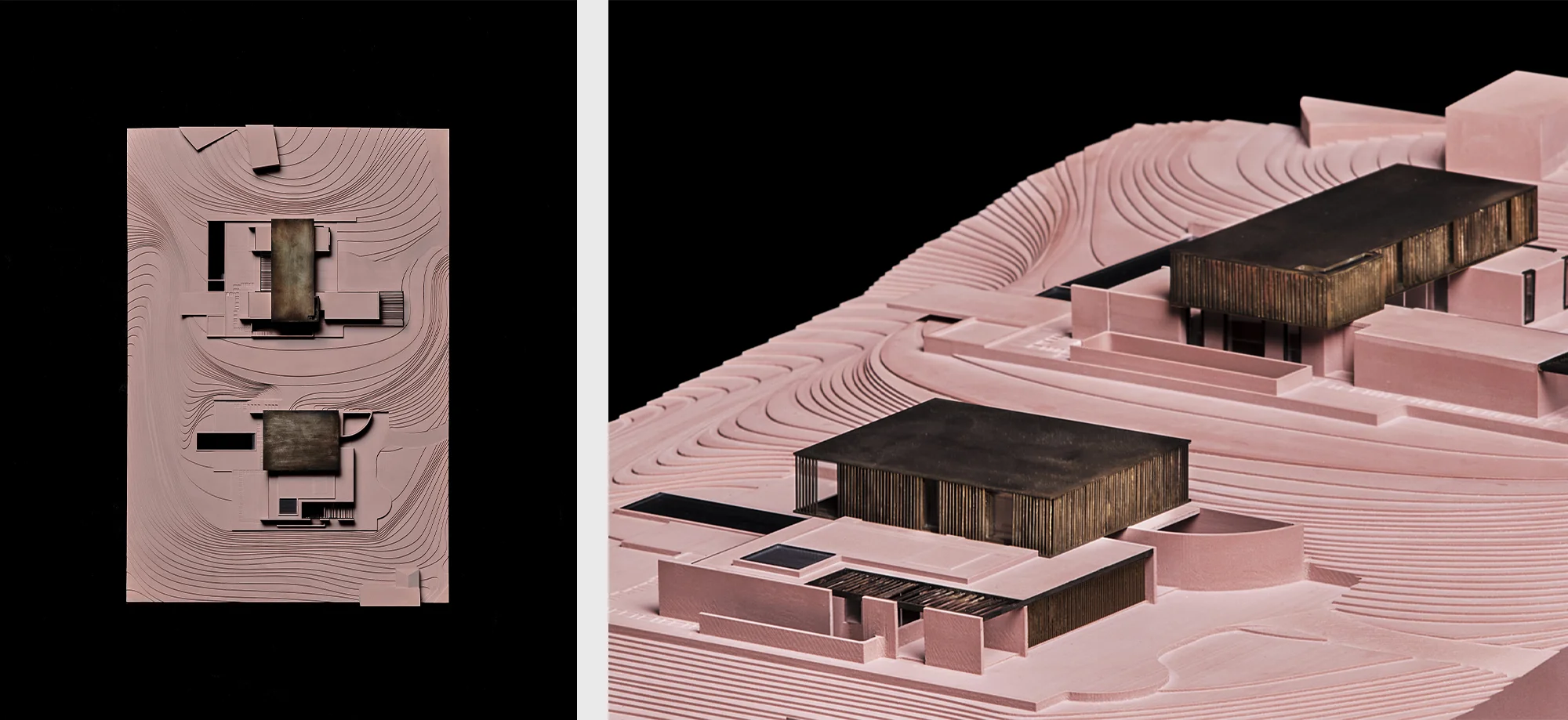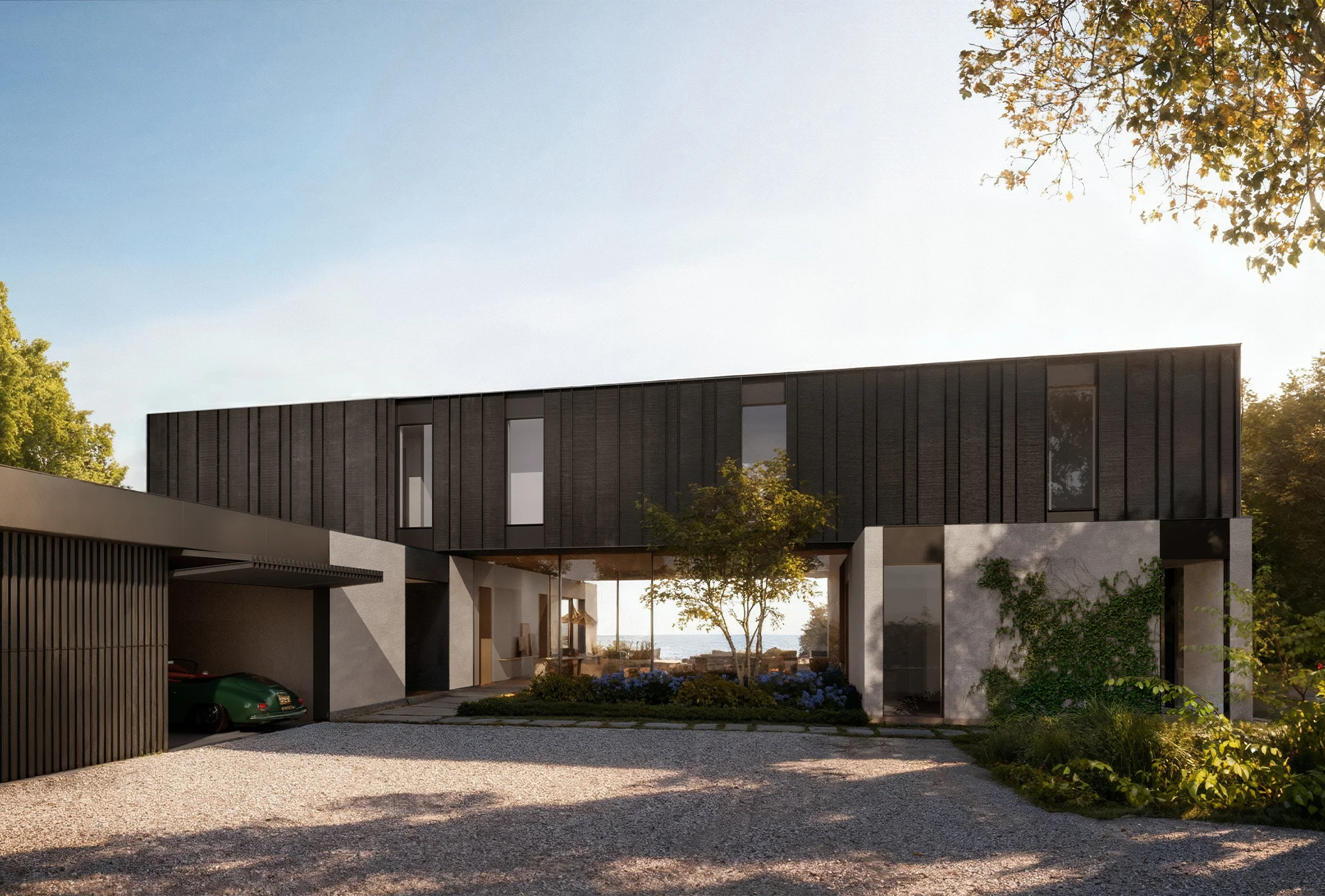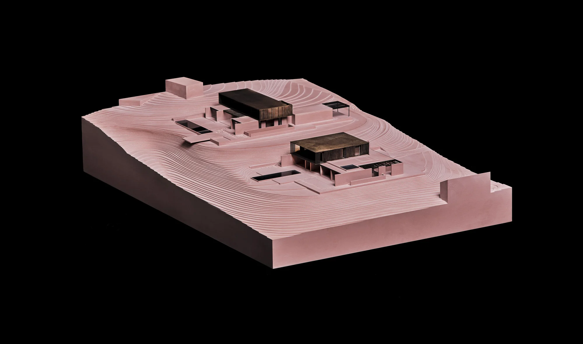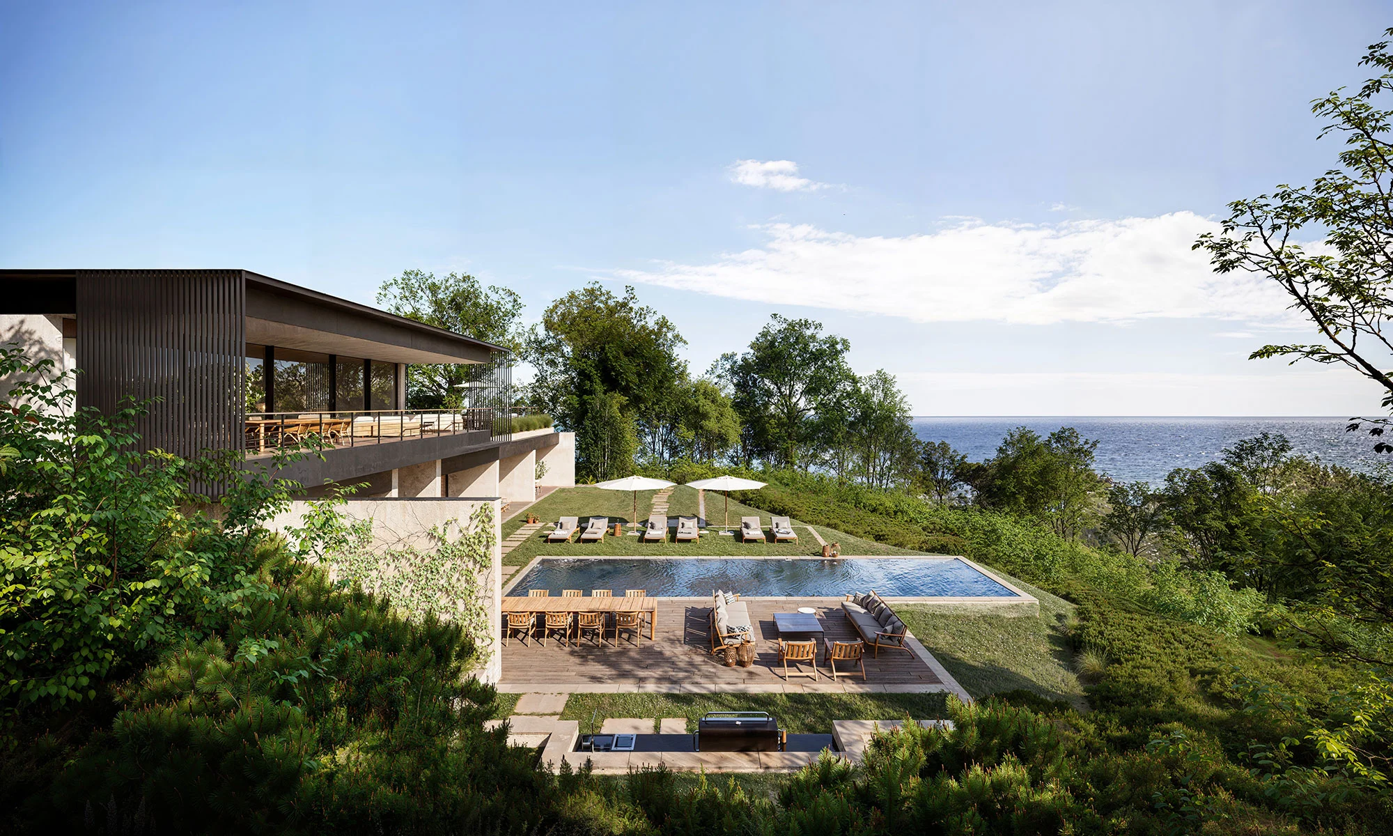 The Maple Villas project comprises two private residences nestled within the natural landscape of Montauk Bay, New York. The site’s topography, defined by a continuous slope immersed in dense vegetation, shaped both the architectural approach and the spatial organization of the villas.