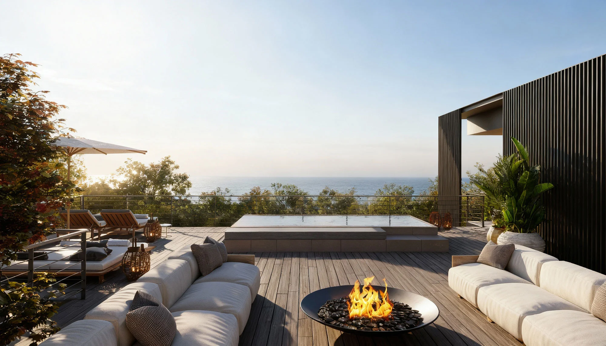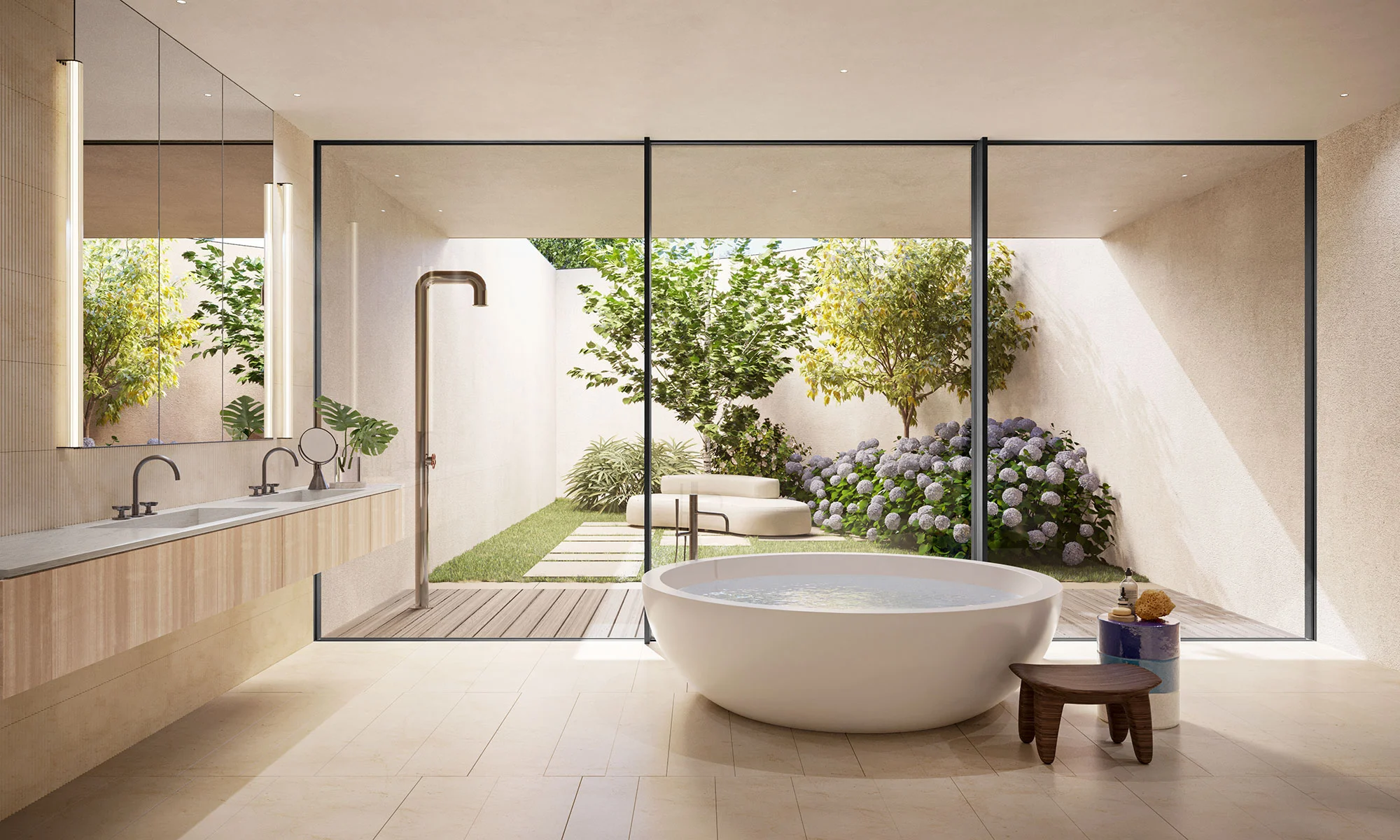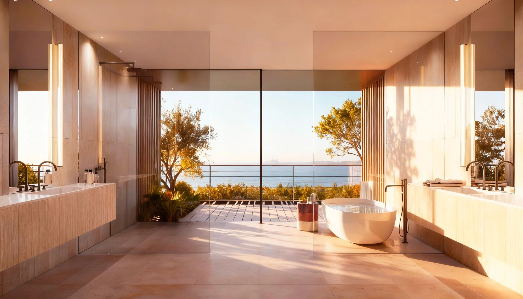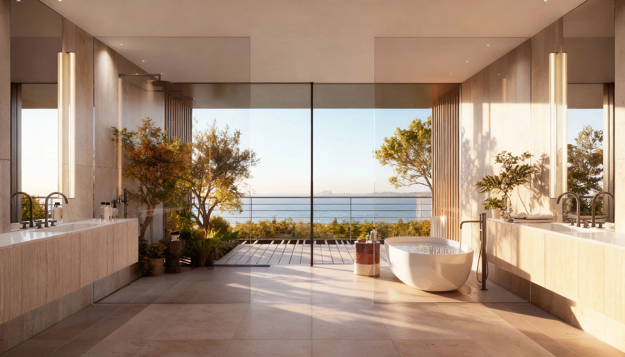 The continuity of materials and finishes, extending seamlessly from indoor to outdoor surfaces, produces a unified architectural expression that blurs the threshold between the built environment and nature. Natural tones, tactile textures, and expansive glazing emphasize transparency and connection, framing the landscape as an essential component of the architectural experience.