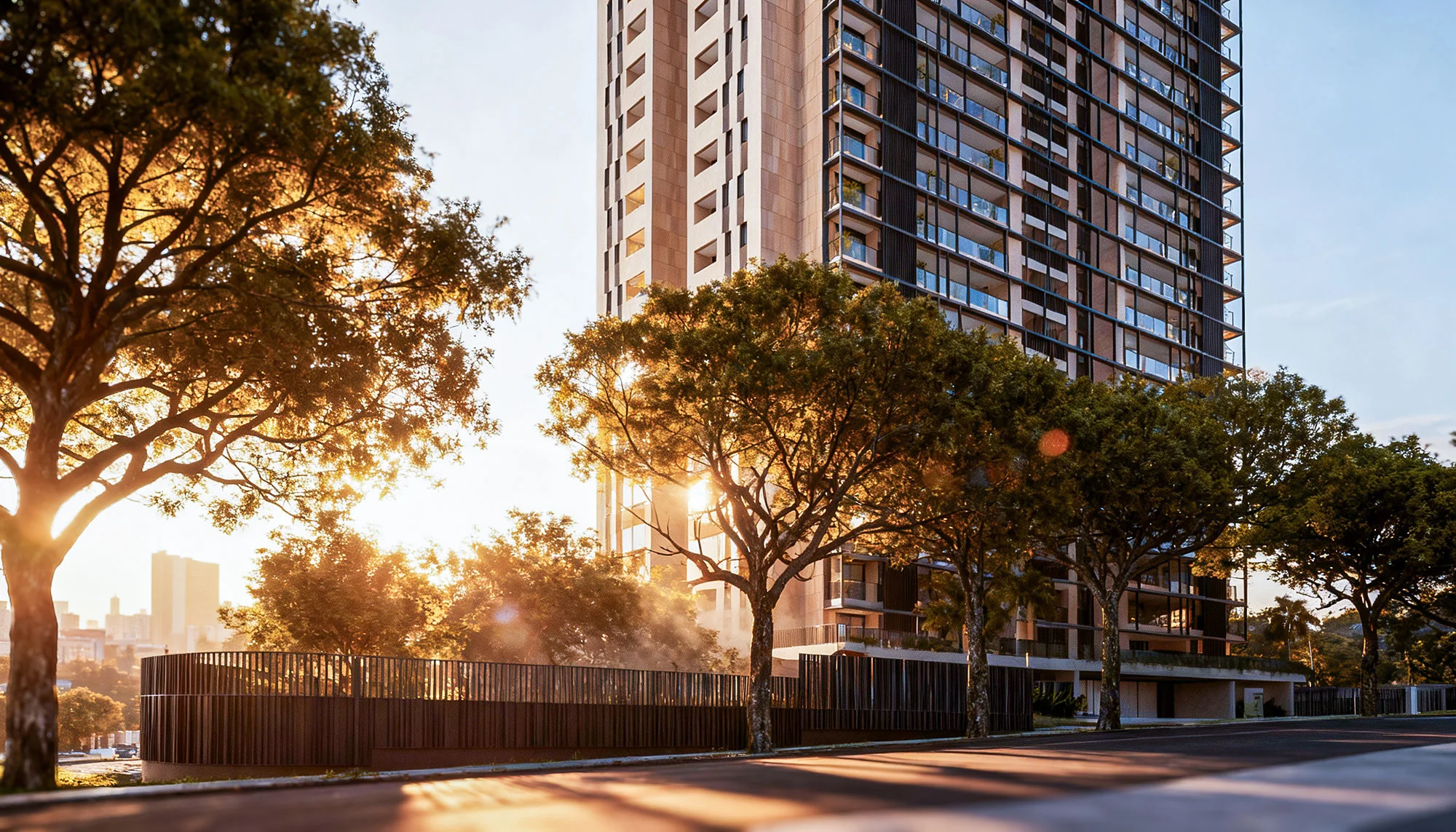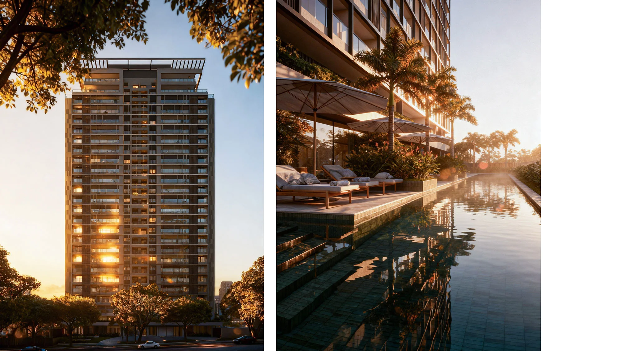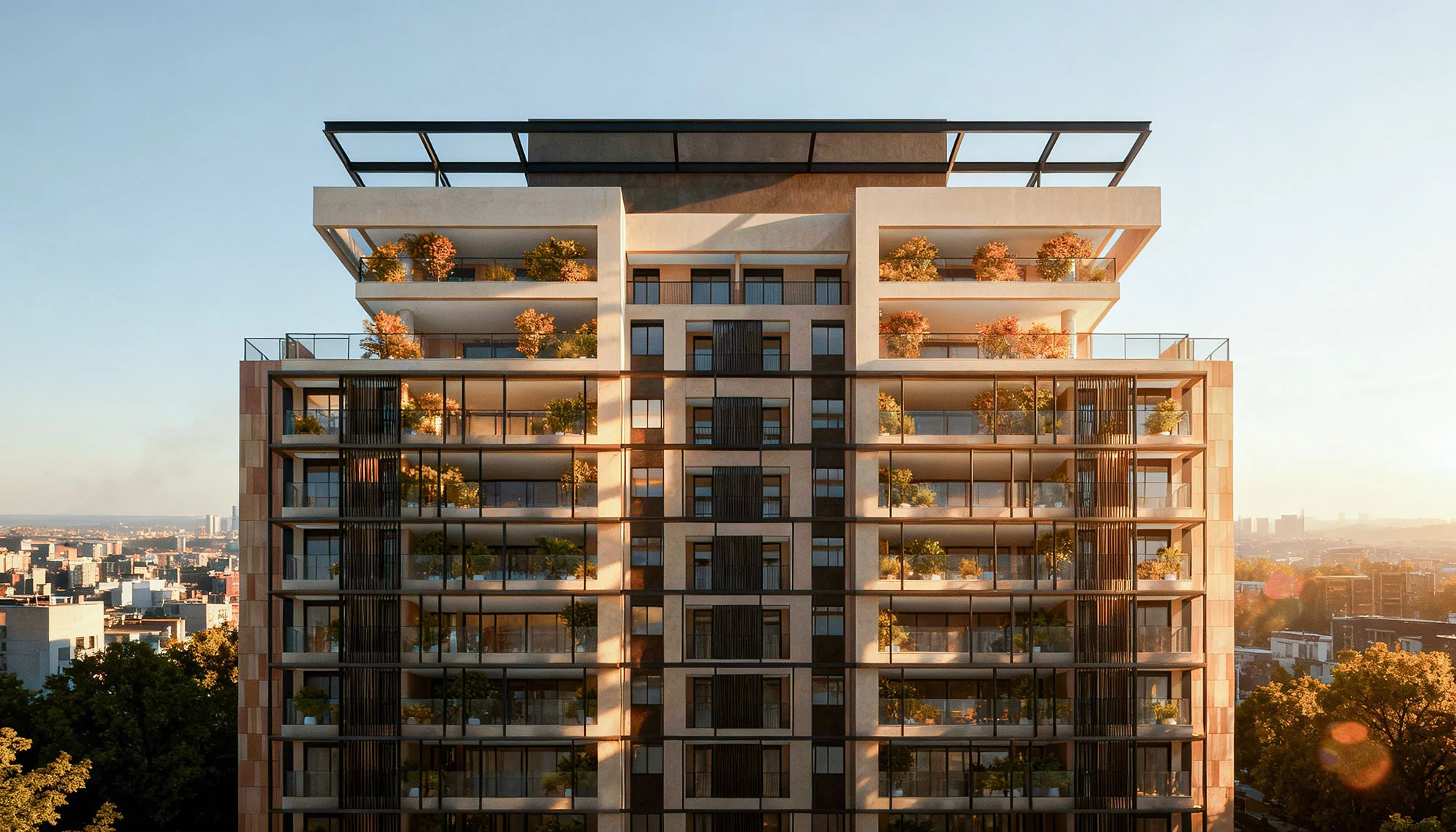 Architecturally, the tower expresses a refined and contemporary identity defined by clean lines, transparency, and carefully balanced proportions. The composition of the façade emphasizes lightness and vertical rhythm while maintaining privacy and comfort for the residences.