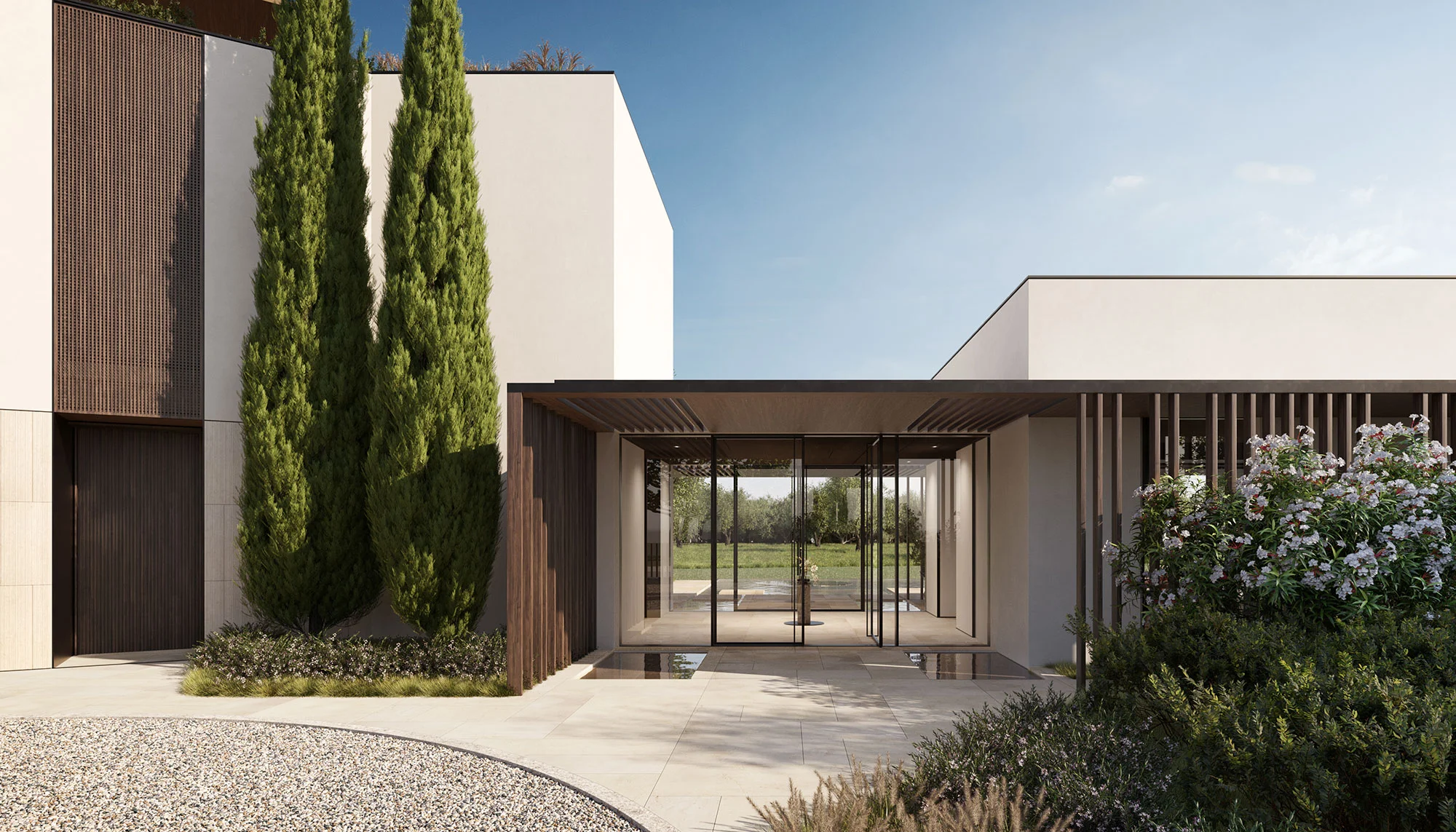 One of the most significant architectural interventions was the inclusion of large panoramic windows with slender profiles, allowing natural light to be a central feature and providing continuity between inside and outside. Pergolas with light and precise lines were designed to protect the spaces from direct sunlight and give rhythm to the façades, while vertical screens offer both aesthetic continuity and privacy.