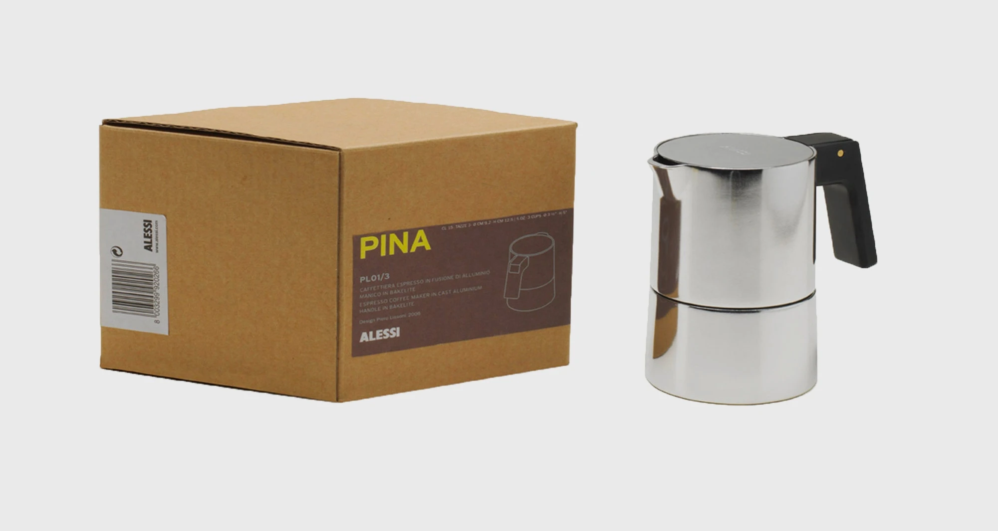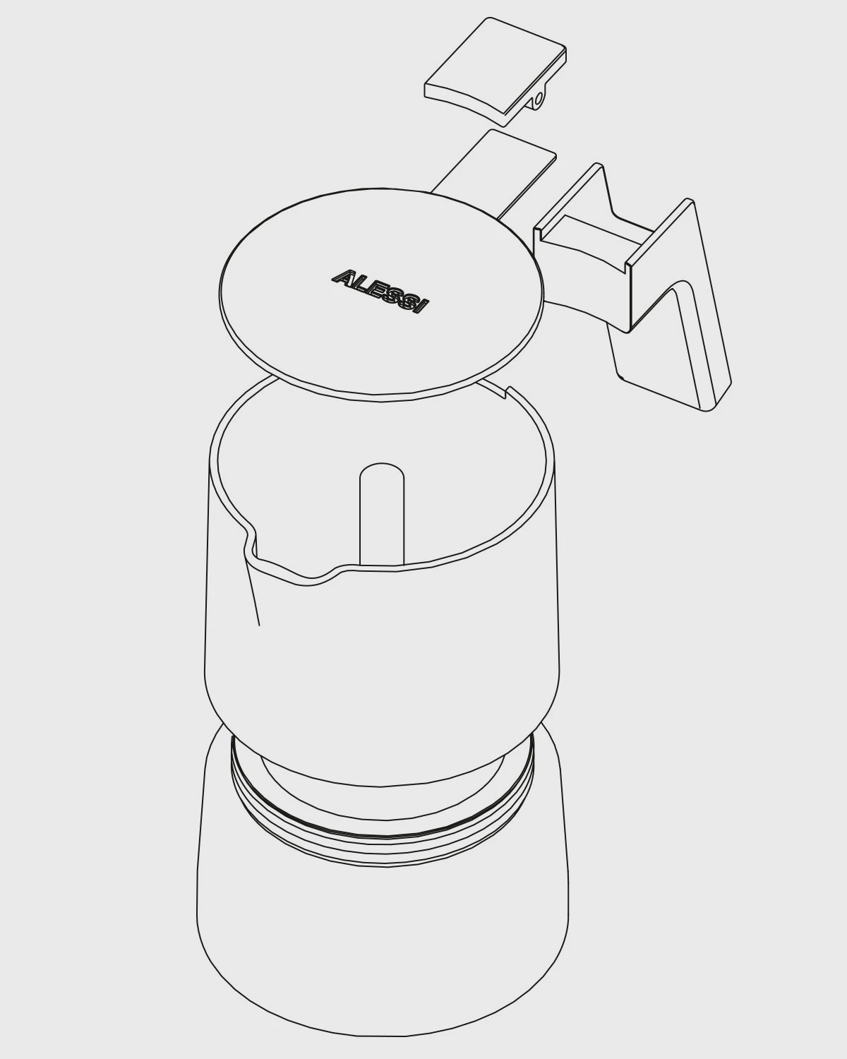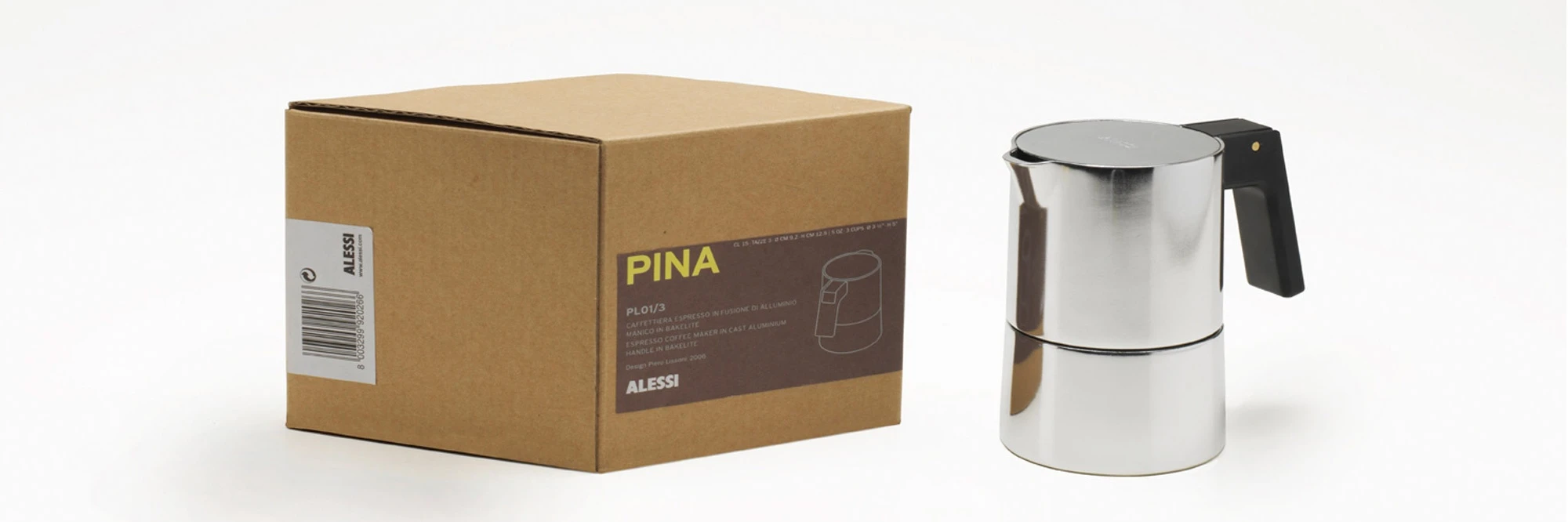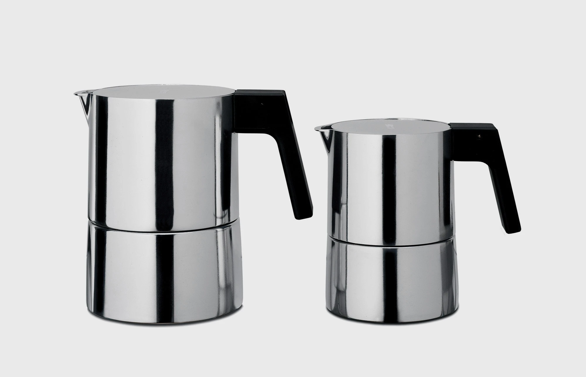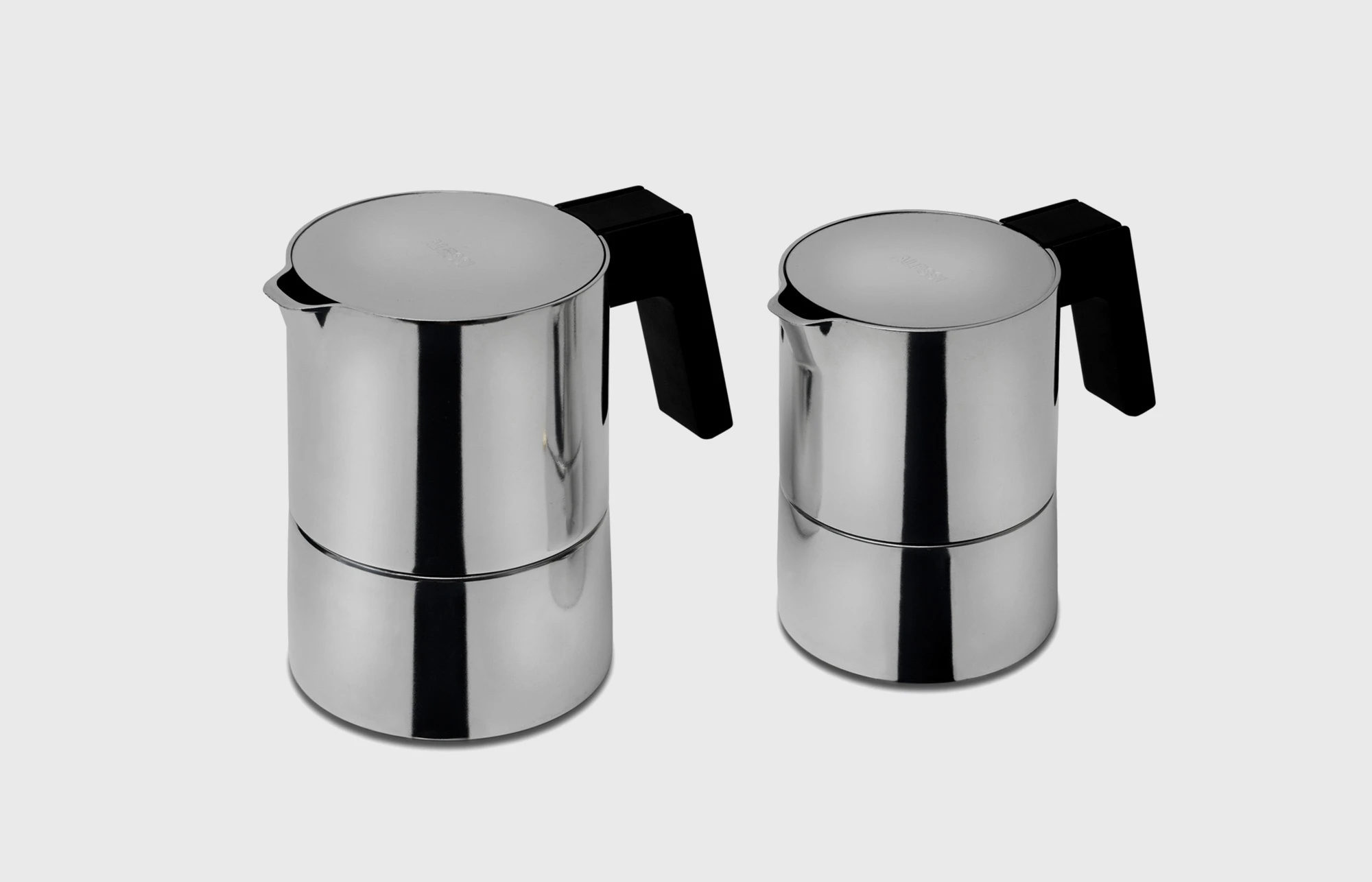 An espresso coffee maker with a minimal and elegant design, its name conveying its domestic and homey character.