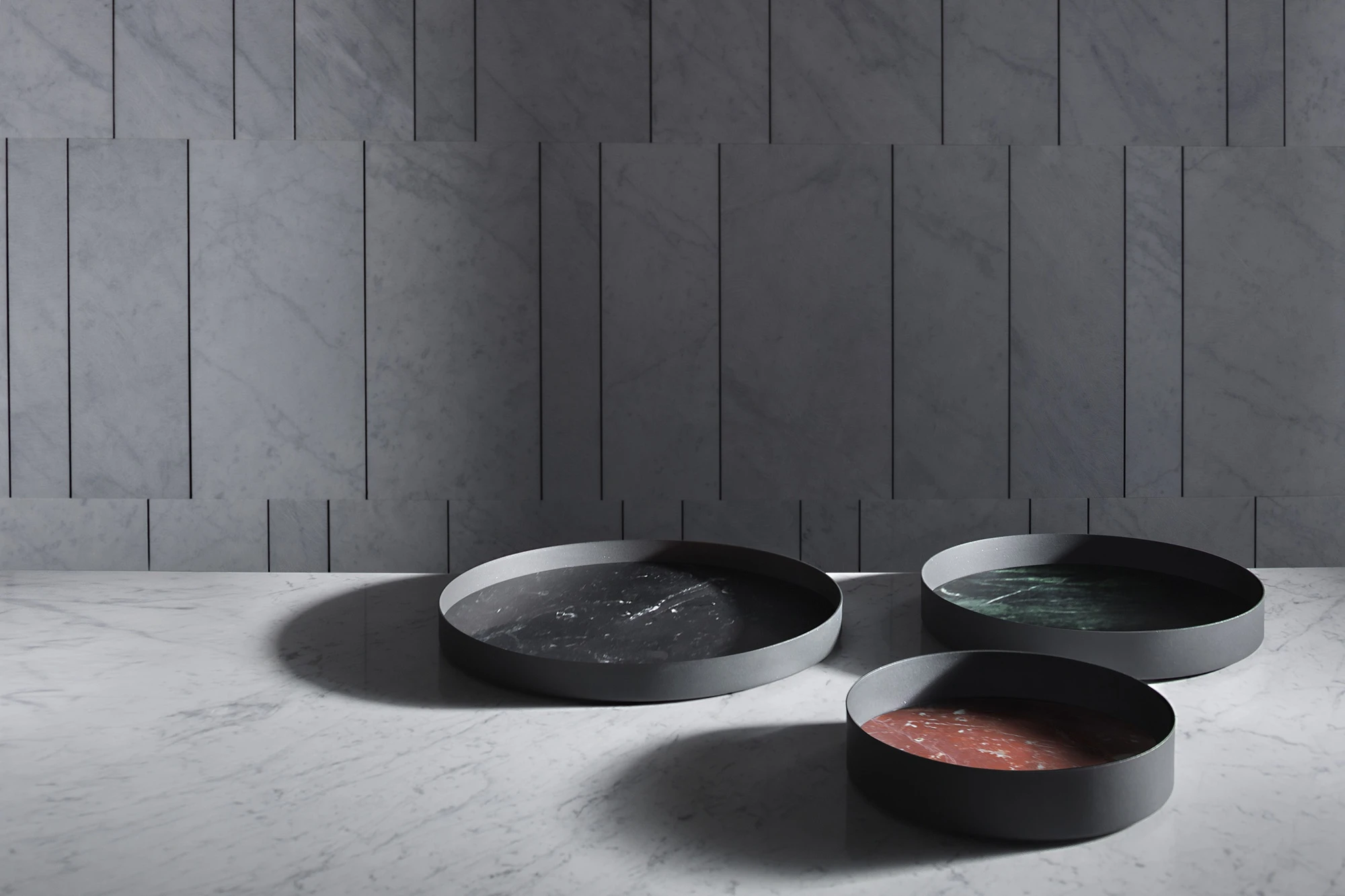 Piero Lissoni has taken everyday items for the home and reinterpreted them in novel ways, using Salvatori’s exceptional natural stone as the starting point. The Pietra L Collection transforms umbrella stands, door stops, trays and other items from banal, functional objects into arresting, elegant feature pieces.