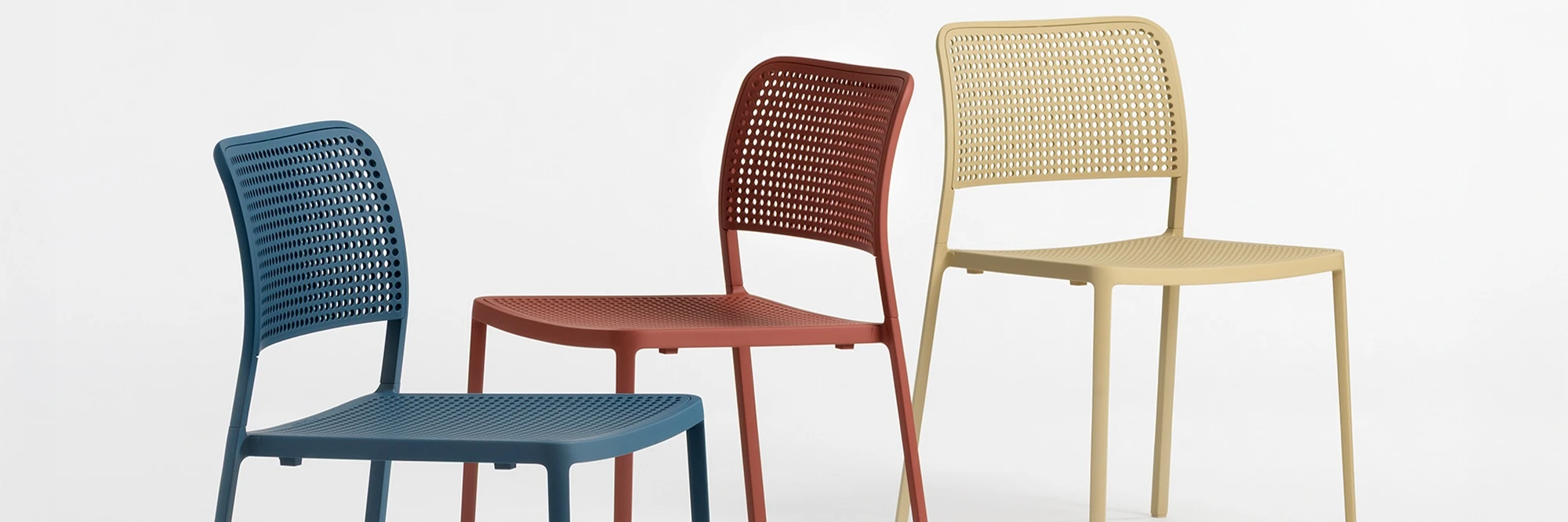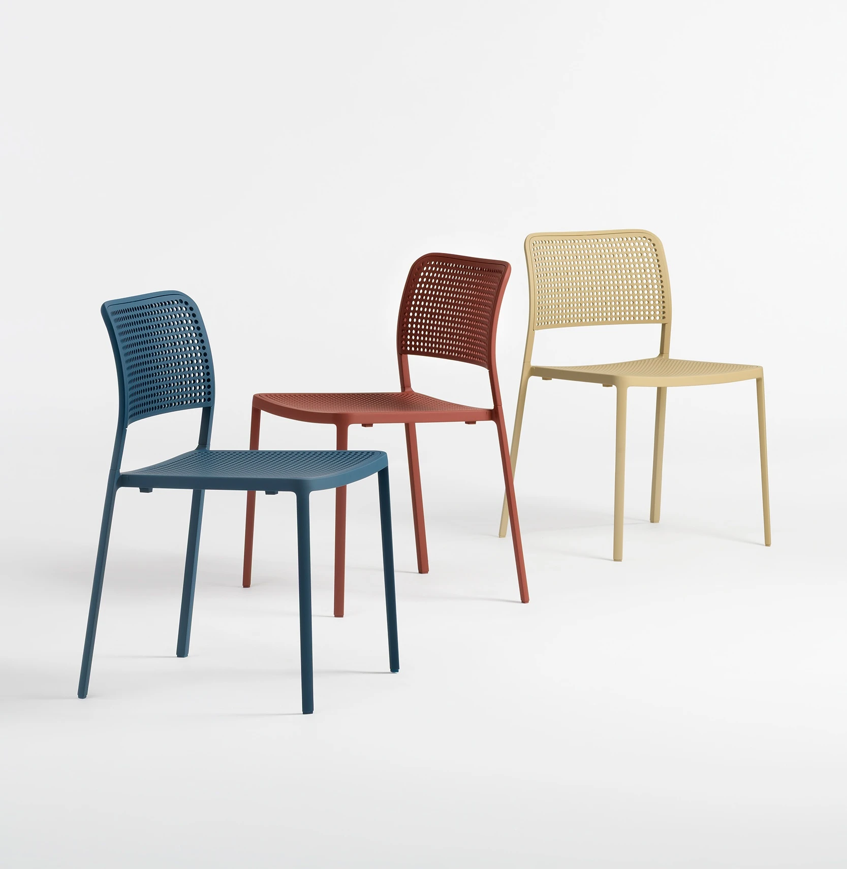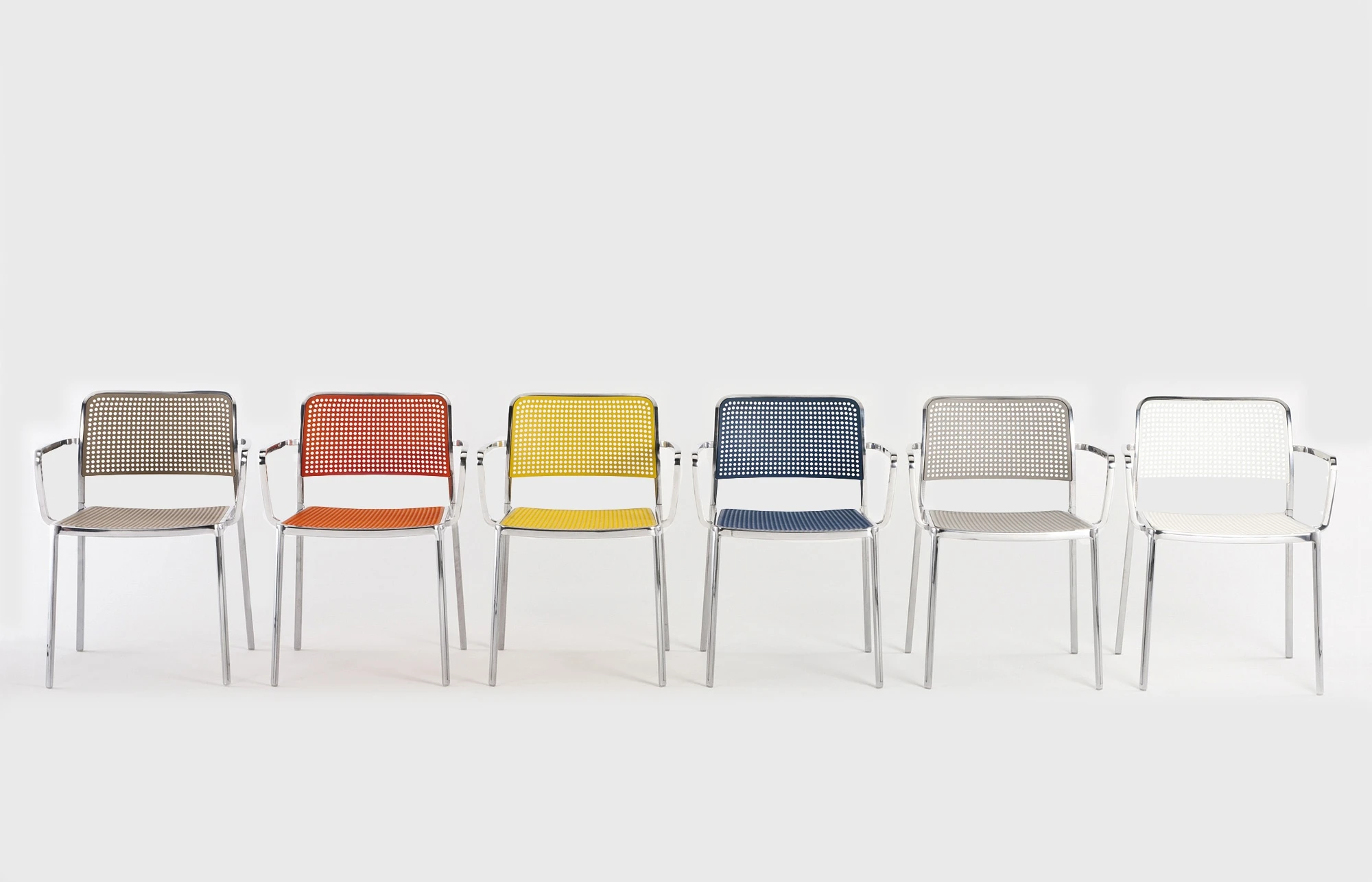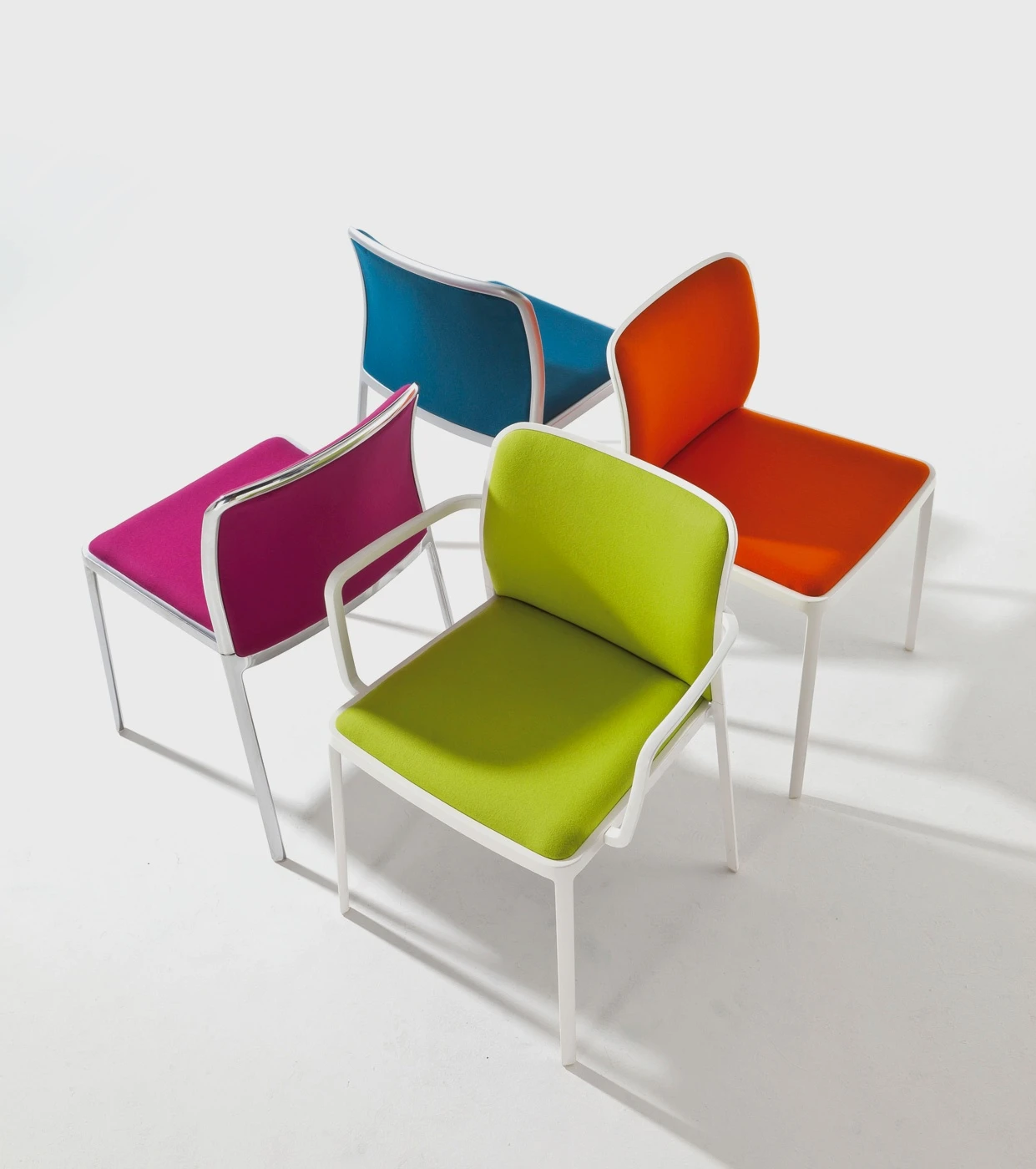 Audrey is a versatile and contemporary chair which because of its simple, clean lines obtained through a special die-casting process is composed of only two parts and made without welding. It is multifunctional and adaptable to all uses - indoor, outdoor.