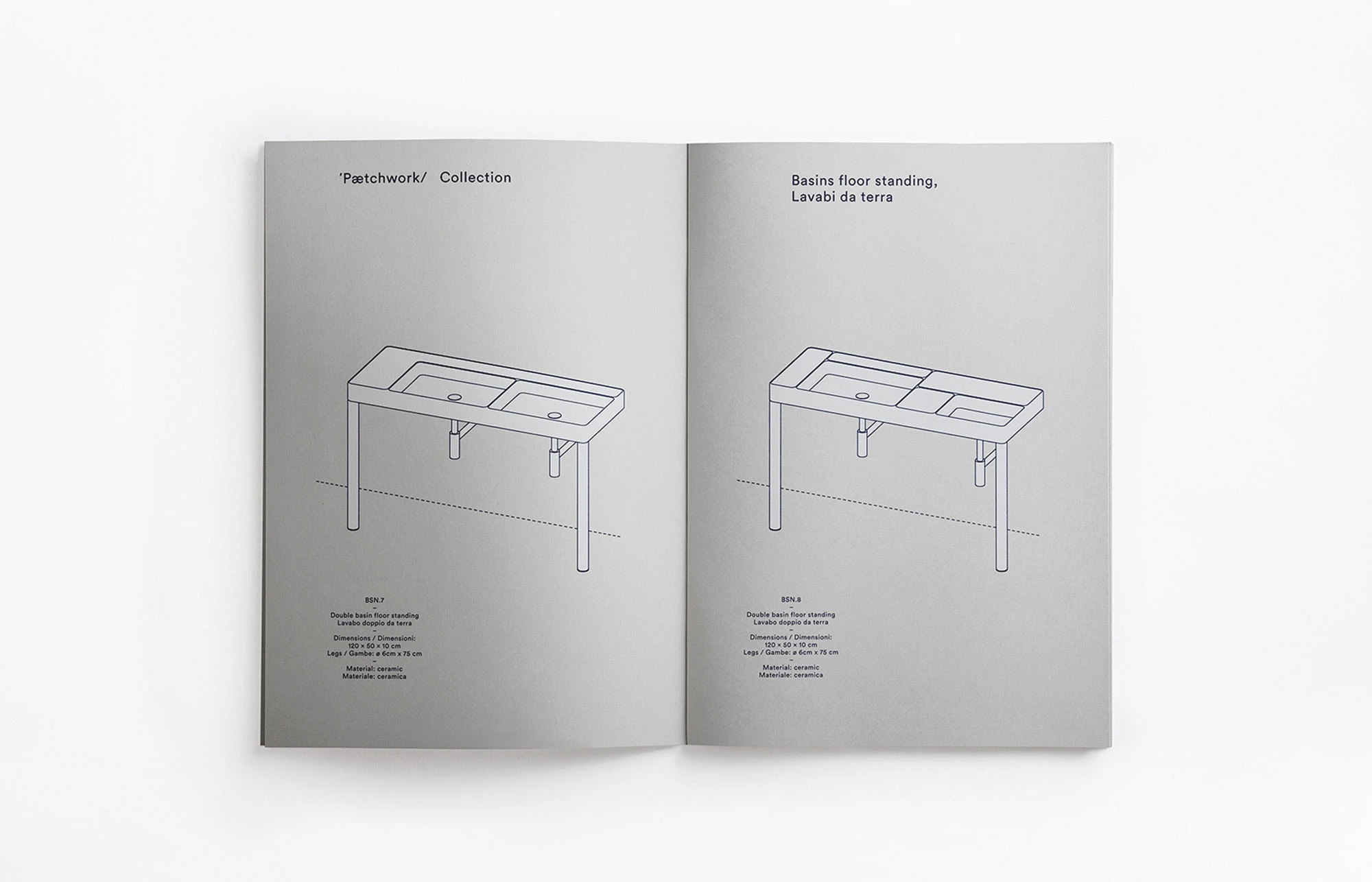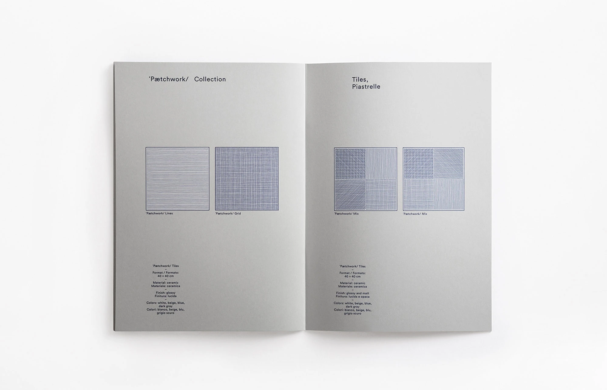 Corporate identity and catalogue for the Paetchwork Collection of tiles and basins by Piero Lissoni.
