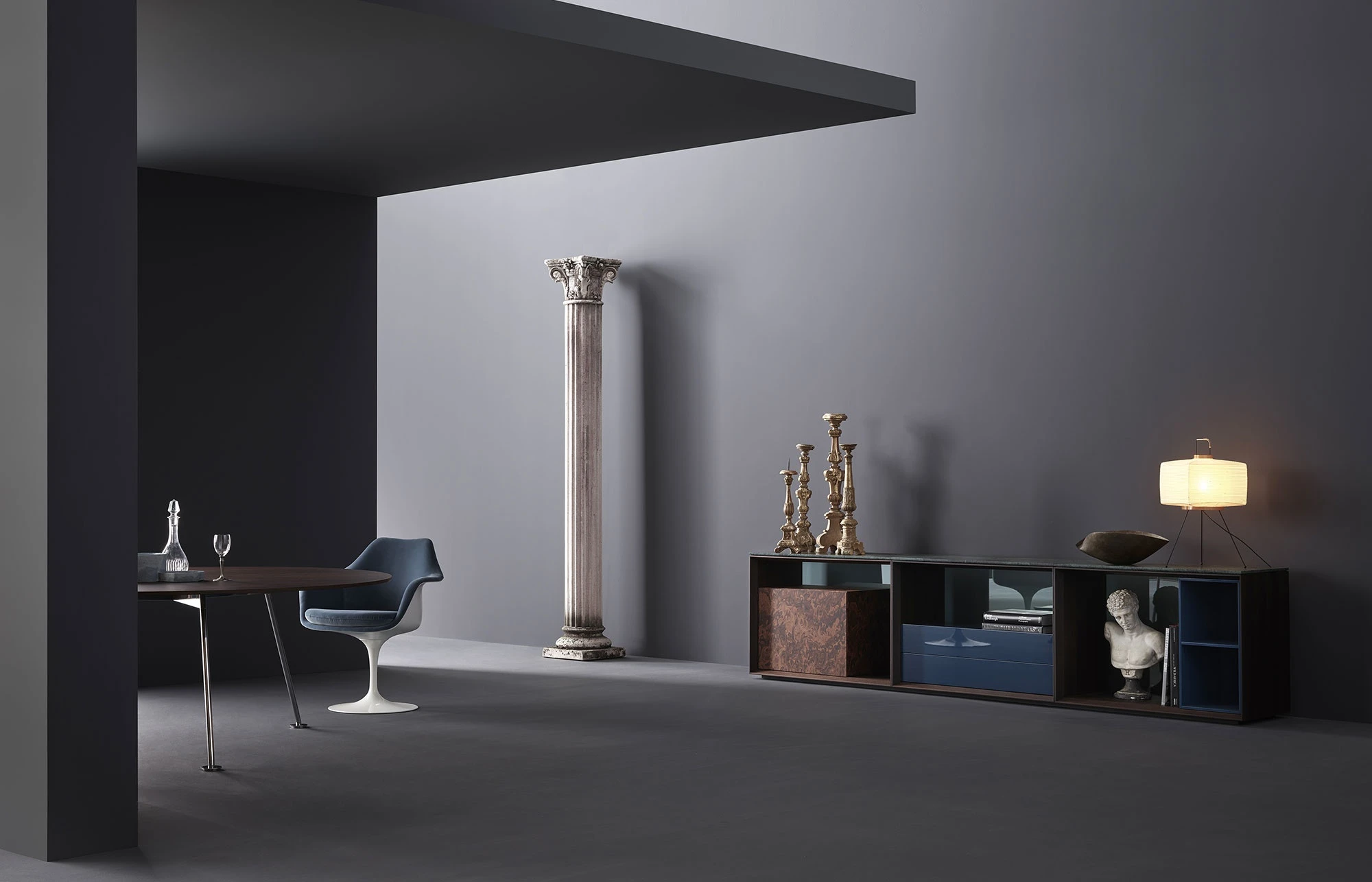 A sensual game of full and empty parts, lights and shadows: solid and essential, like an architecture that offers glimpses of its contents without revealing them entirely.