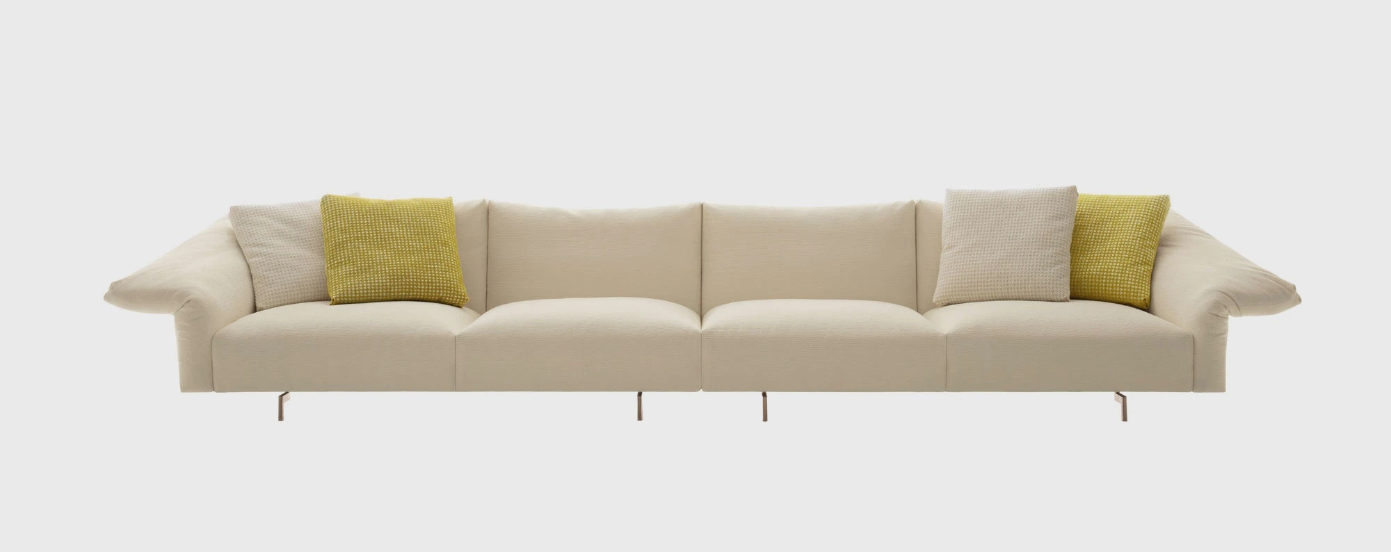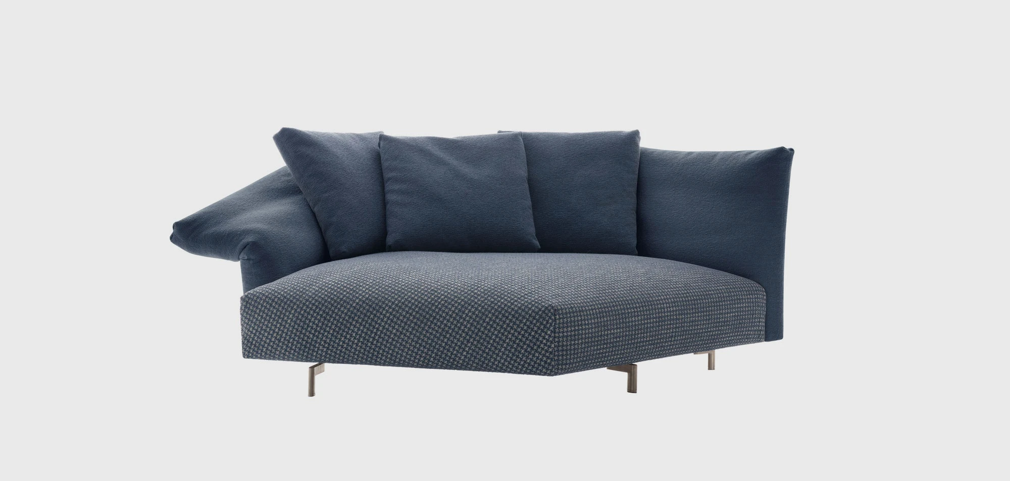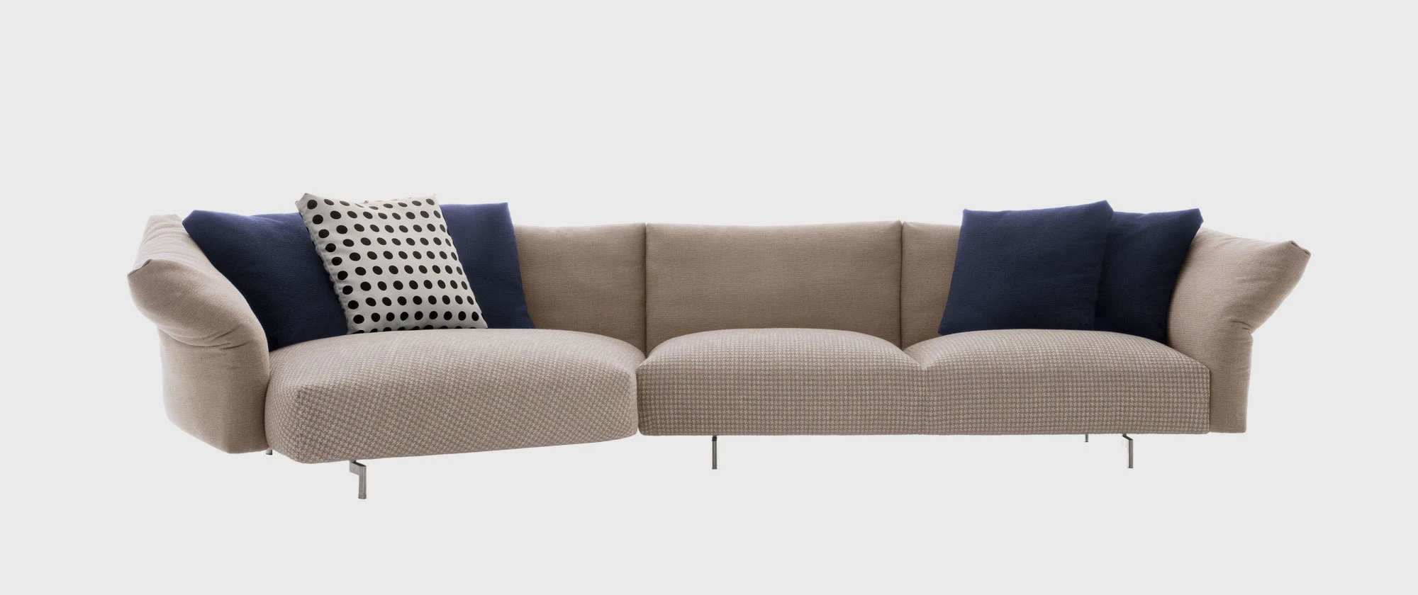 “Dambo is a modular system that suggests a new manner of seating, a system of large islands. The sofa is easy to put together and features an armrest that moves asymmetrically. I imagined it as an island amid the ebb and flow of everyday life. An island to enjoy alone or in company, listening to music, reading or maybe even browsing on the computer. It is very technological, fully demountable and has been cleaned of any superfluity. We have also added a few surprises in the construction of the cushions, which of course have to remain secret. It has an alluring presence, creating unexpected places that are less casual and more quintessential.” Piero Lissoni
