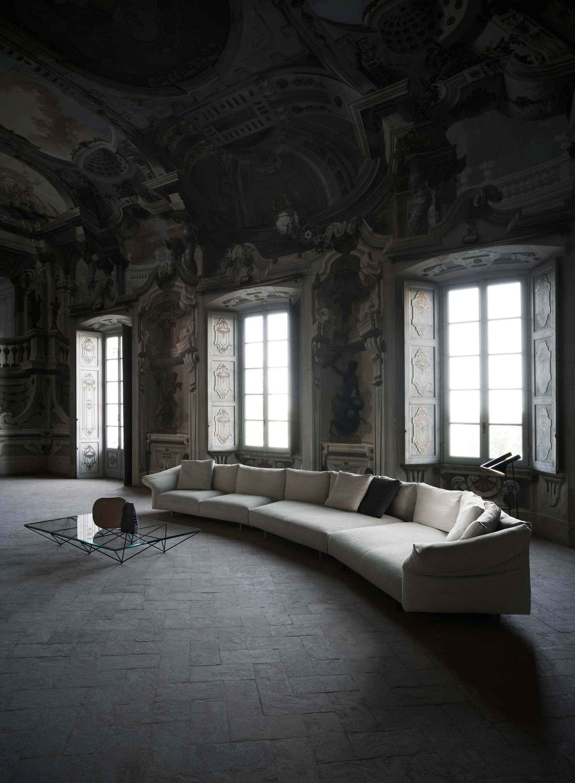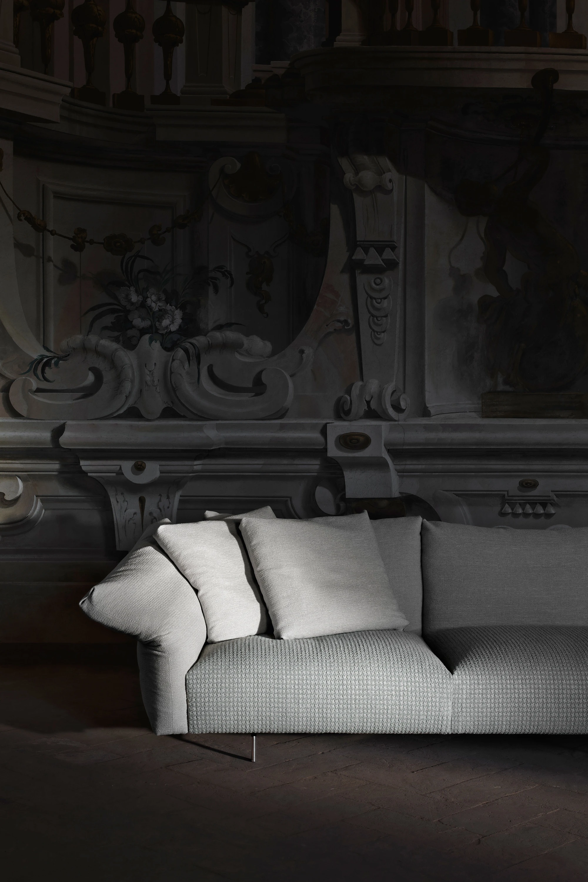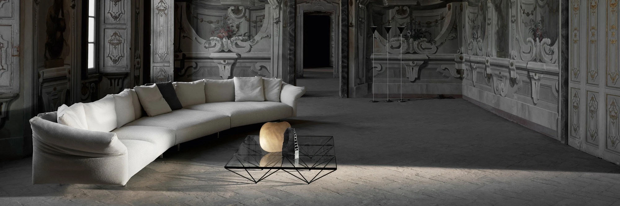 “Dambo is a modular system that suggests a new manner of seating, a system of large islands. The sofa is easy to put together and features an armrest that moves asymmetrically. I imagined it as an island amid the ebb and flow of everyday life. An island to enjoy alone or in company, listening to music, reading or maybe even browsing on the computer. It is very technological, fully demountable and has been cleaned of any superfluity. We have also added a few surprises in the construction of the cushions, which of course have to remain secret. It has an alluring presence, creating unexpected places that are less casual and more quintessential.” Piero Lissoni