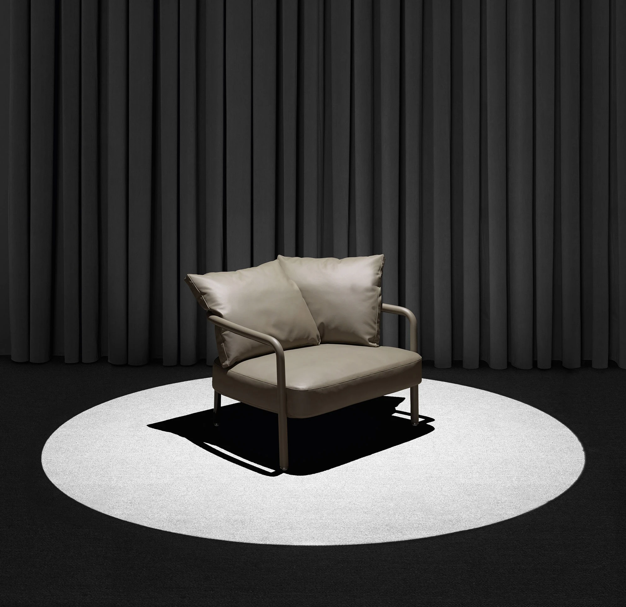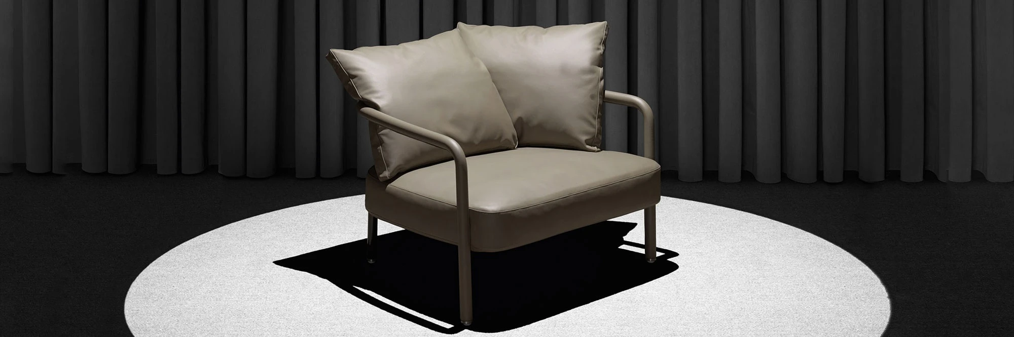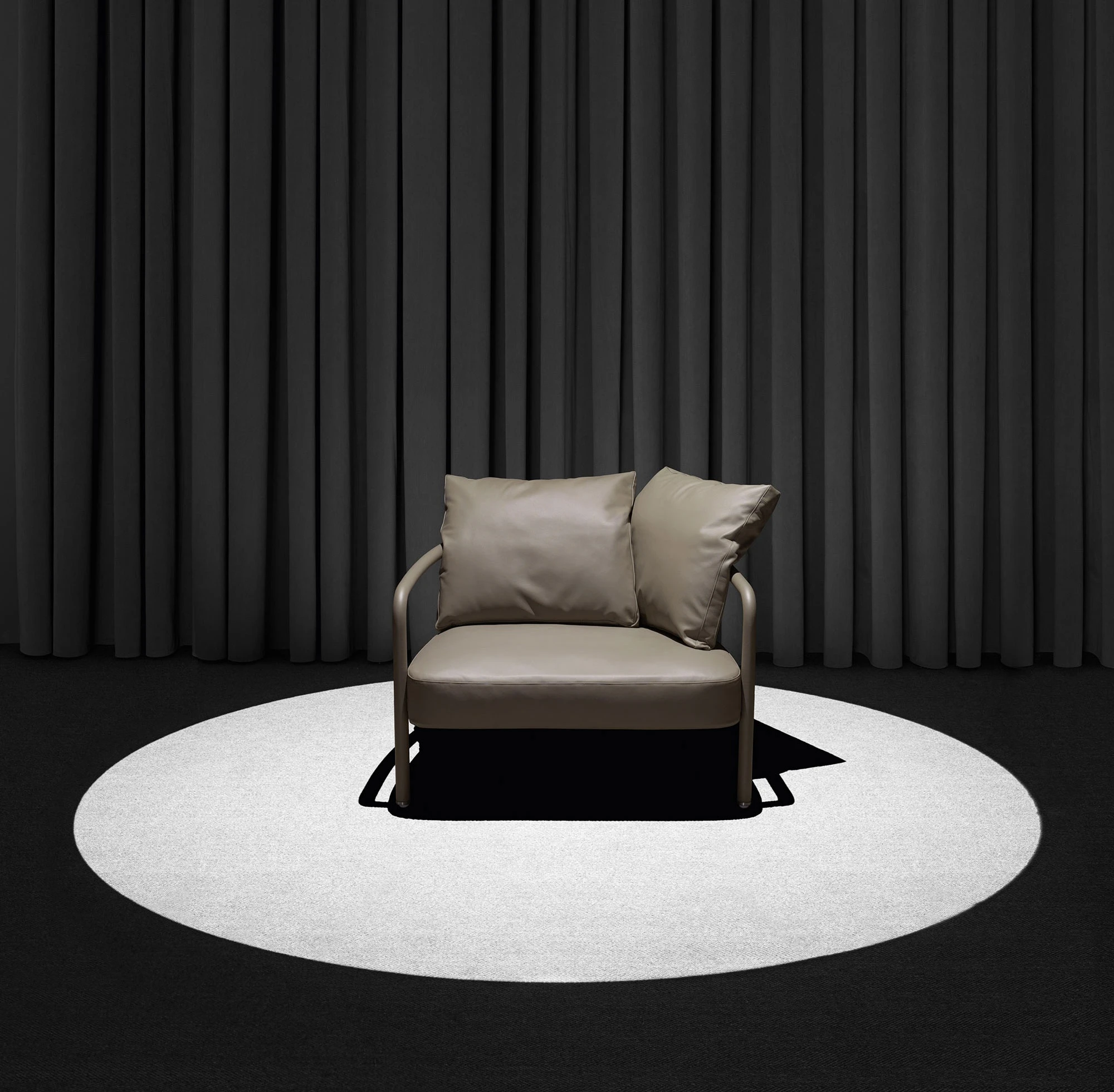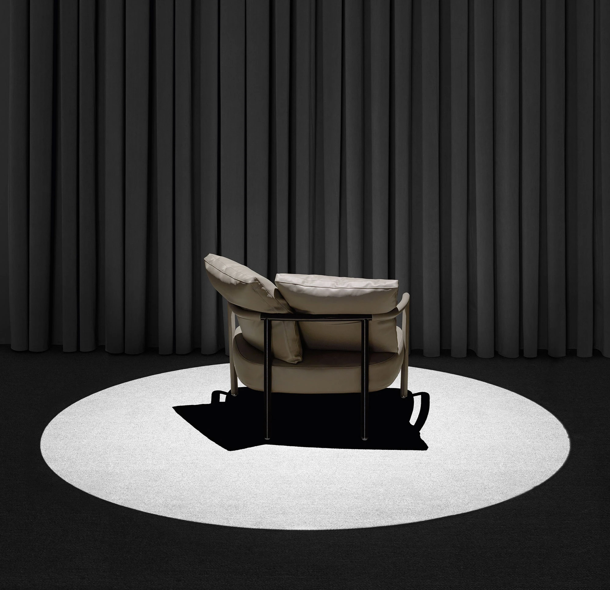 “Pochette is like a handbag, incorporating the most meticulous detailing and possessing the sophisticated finish of the finest leatherware. It is formed of leather-wrapped tubing on which rest two large cushions. If it weren’t so large, you’d be tempted to carry it with you!” Piero Lissoni