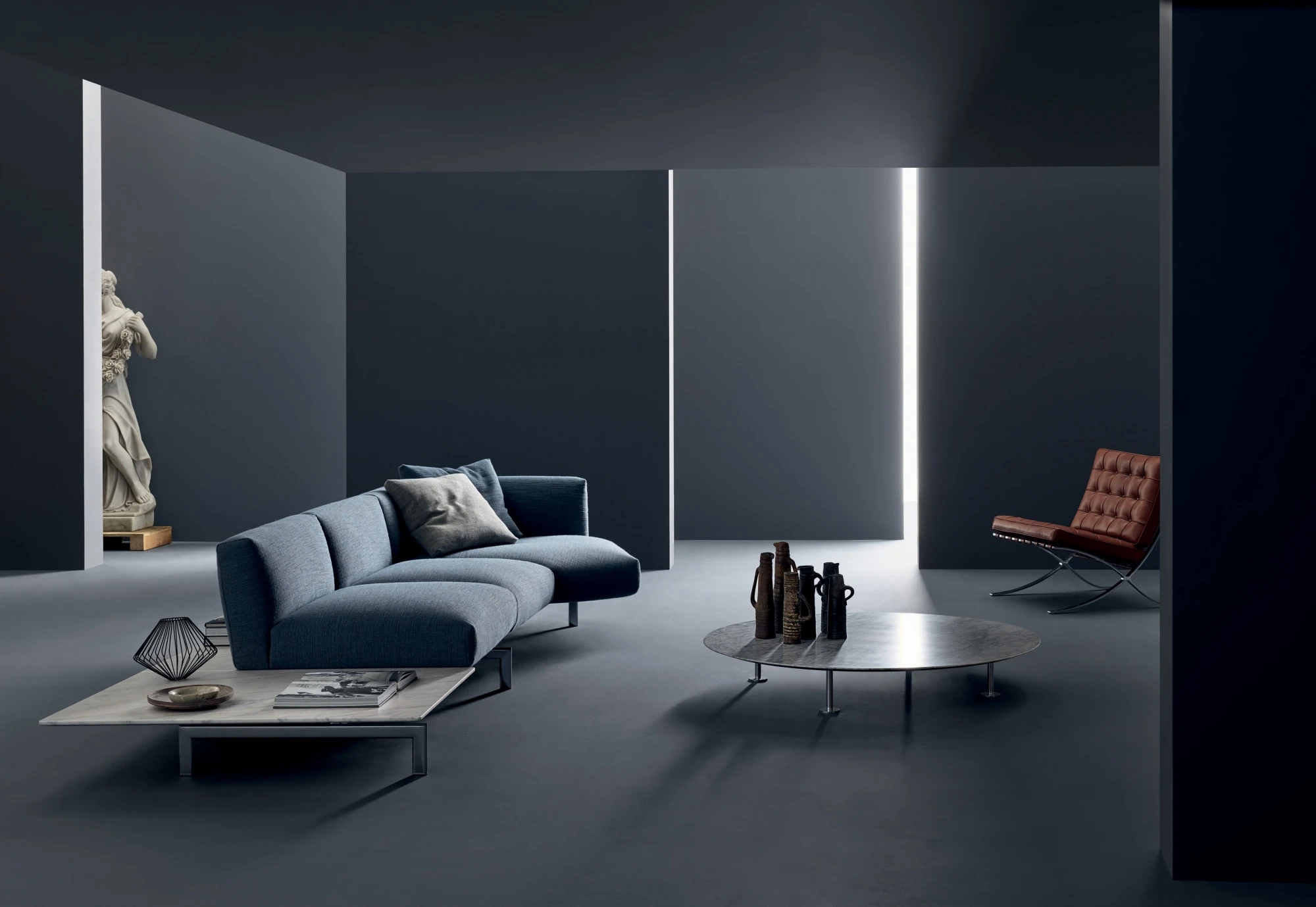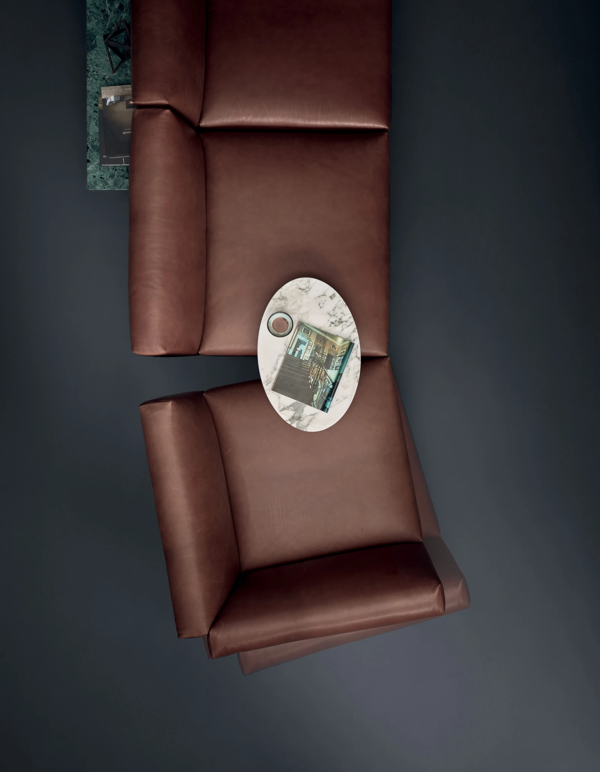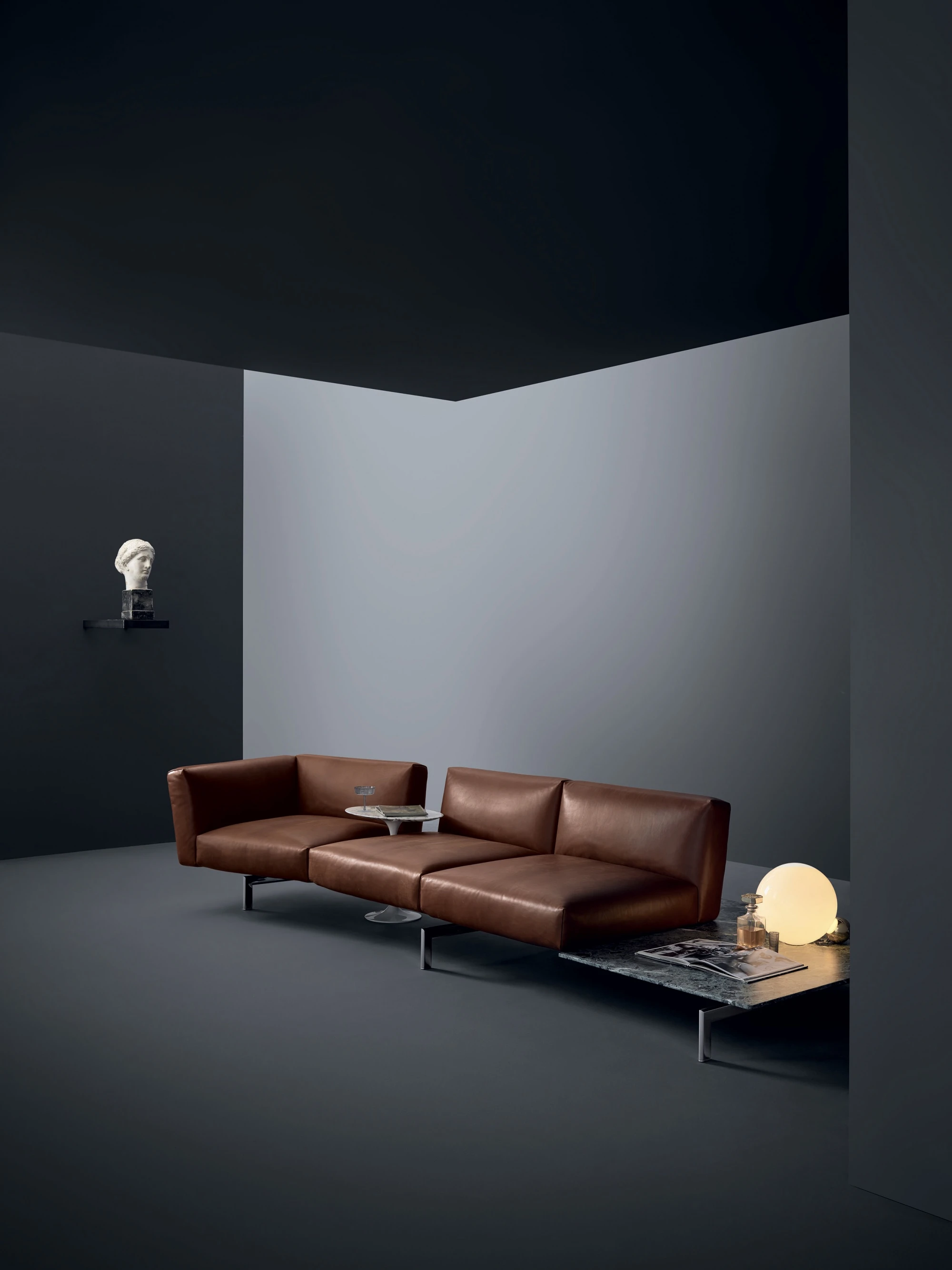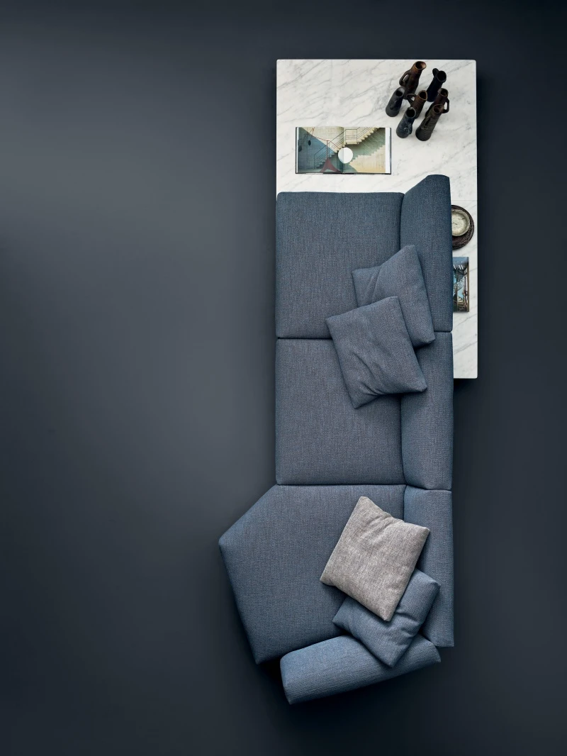 "I imagined that Avio could move, responding to the user’s wish for convenience and sociability. For this I designed a mechanism that is hidden but at the same time appealing, like the detailing of certain motorbikes, and most importantly very easy to use. Linked to this idea of movement, a large irregular end or corner element has been introduced that slightly alters the pure and precise line of Avio, suggesting a more informal and relaxed atmosphere, a conception of elegance with a touch of idiosyncrasy." Piero Lissoni