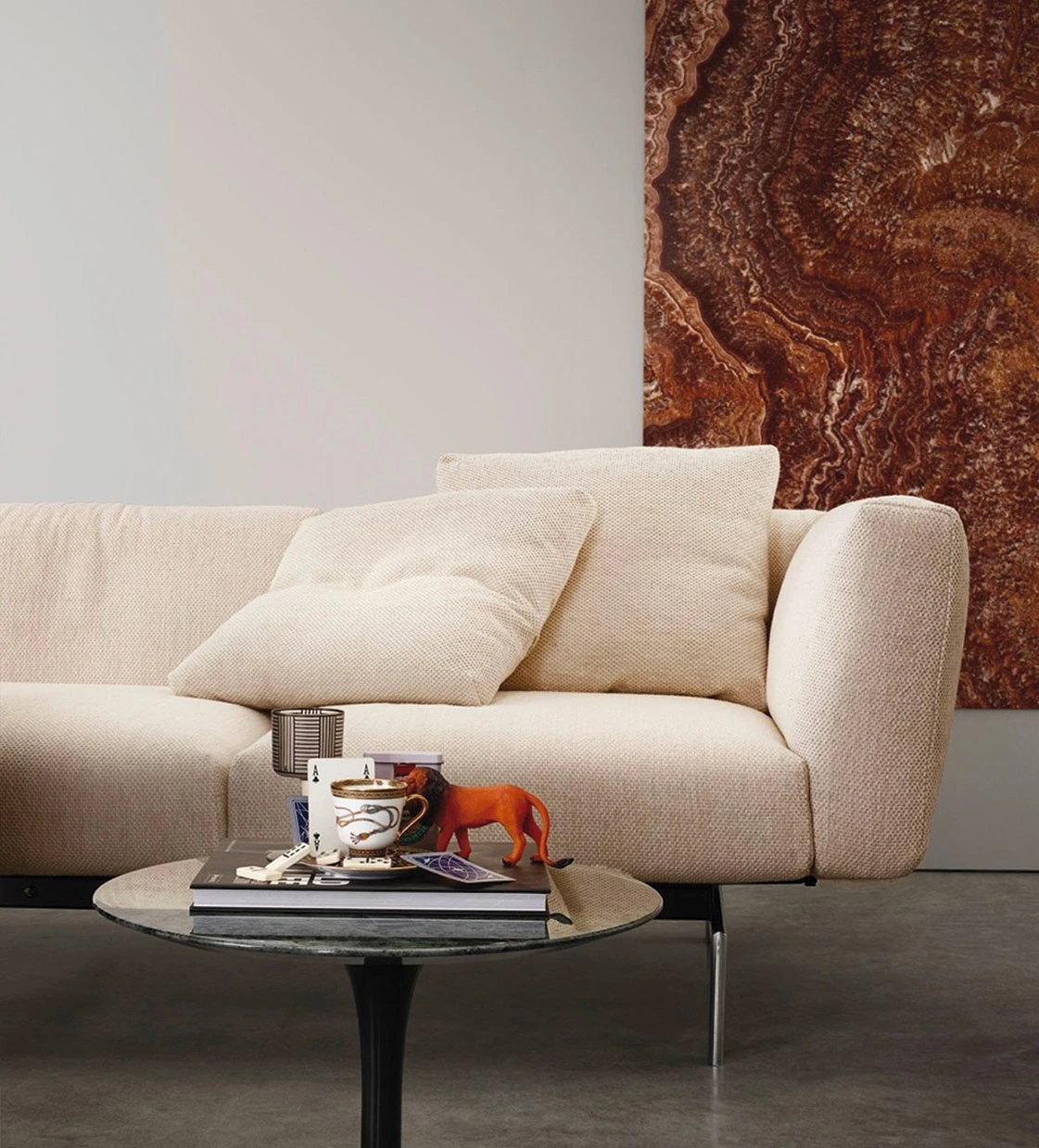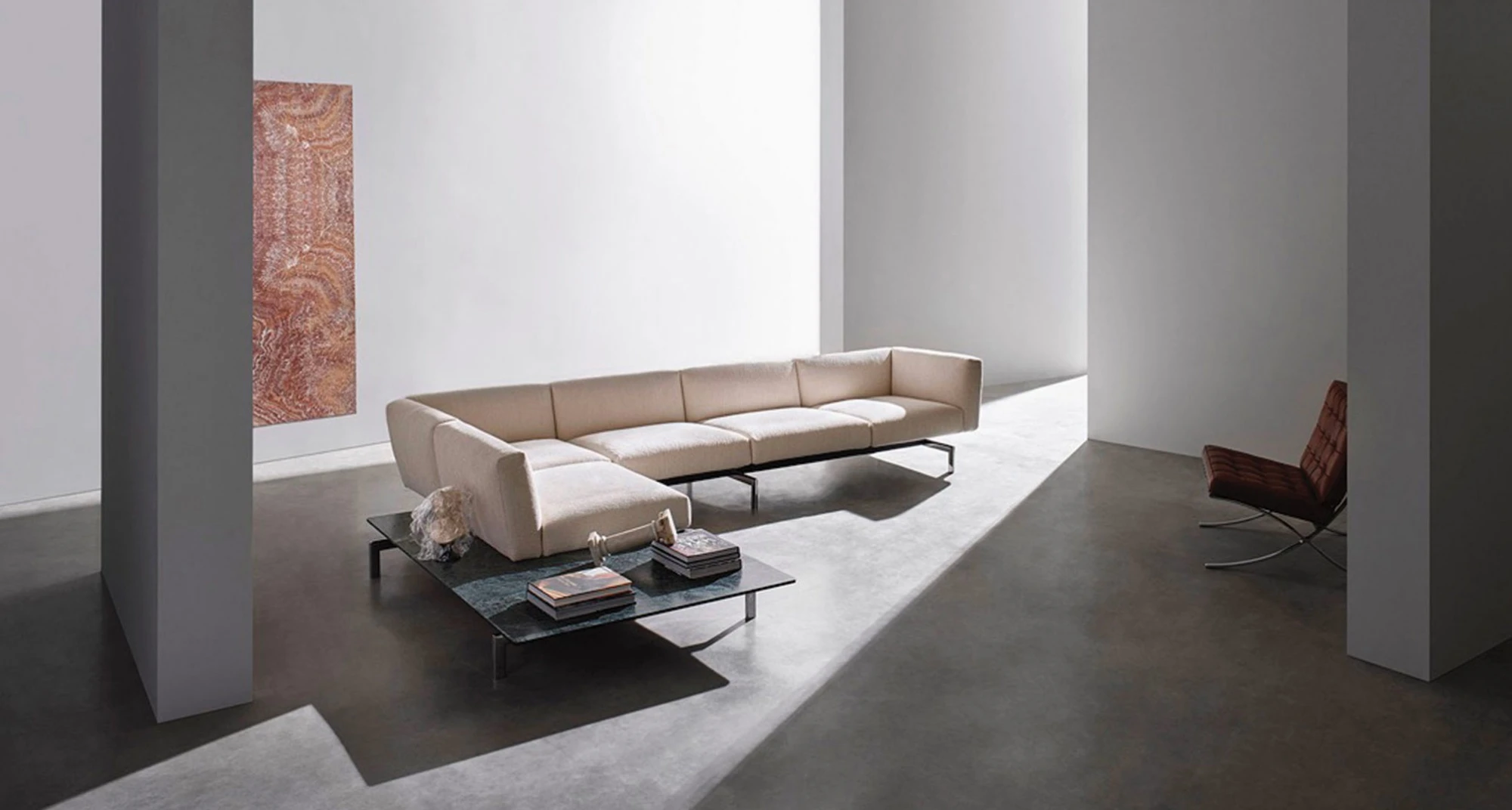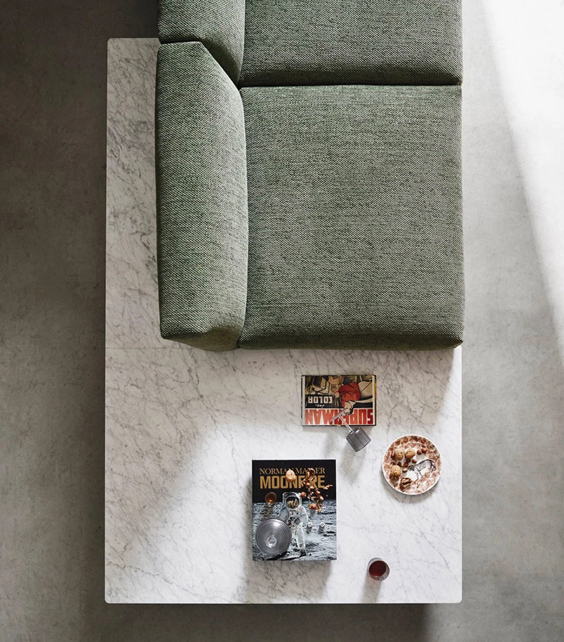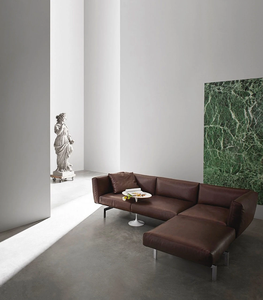 "I imagined that Avio could move, responding to the user’s wish for convenience and sociability. For this I designed a mechanism that is hidden but at the same time appealing, like the detailing of certain motorbikes, and most importantly very easy to use. Linked to this idea of movement, a large irregular end or corner element has been introduced that slightly alters the pure and precise line of Avio, suggesting a more informal and relaxed atmosphere, a conception of elegance with a touch of idiosyncrasy." Piero Lissoni