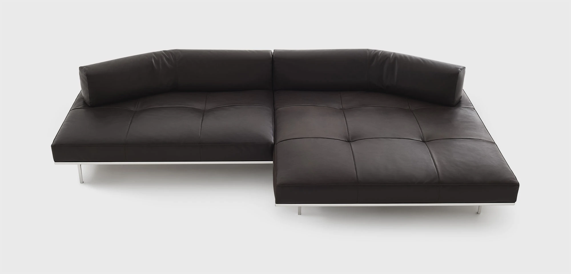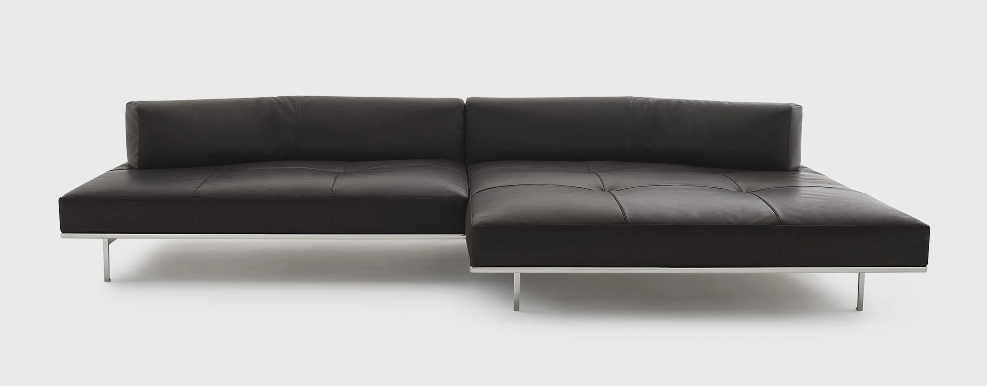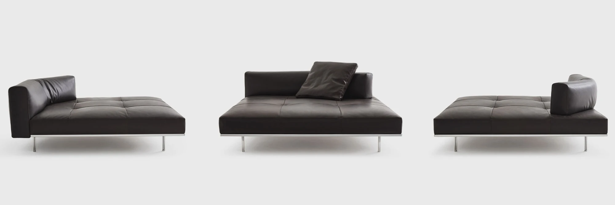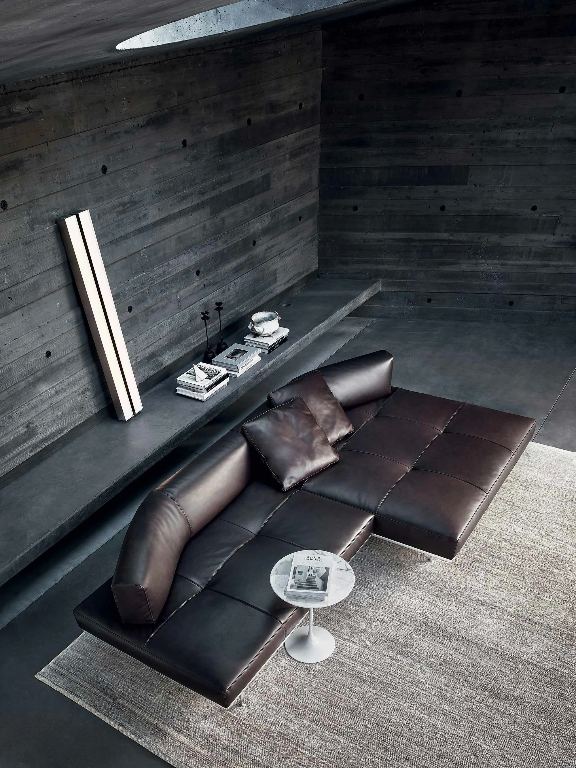 "A platform suspended in space, a cross between an island and architecture. An object imagined to float in space and present itself as a universe in and of itself. Matic borrows moves from a frame designed like a building with a strict structural system: pillars, footings, beams, columns, slabs. A high-profile technological exercise that decides its own aesthetic destiny, its own form. Very low, ample seating of different dimensions, on which modular arms and backs can be arranged, created to provide structural support. A muted nature, depending on the finishes, Matic can fit into settings where it disappears or can stand out with its decisive character, but discreetly." Piero Lissoni