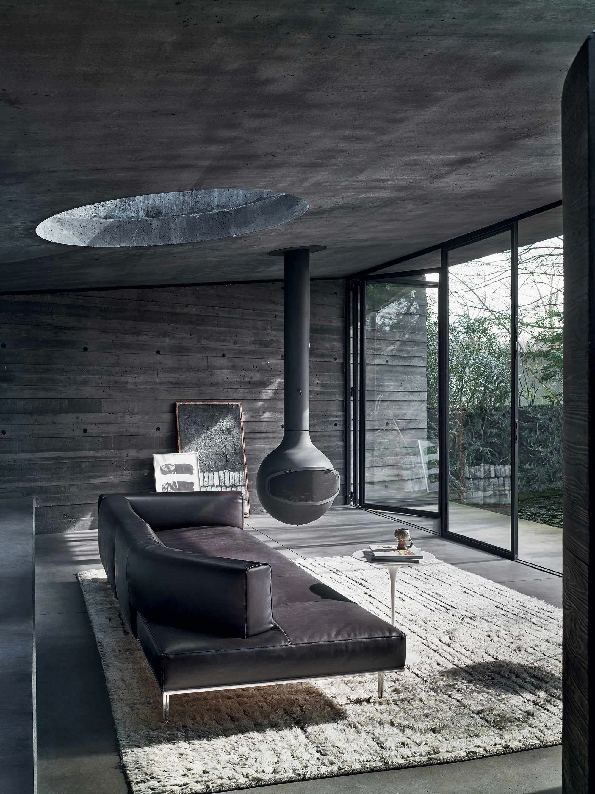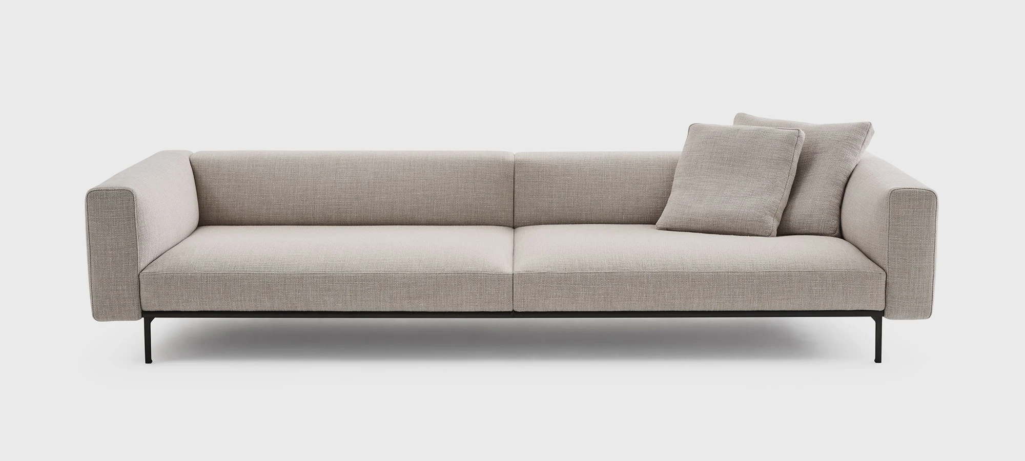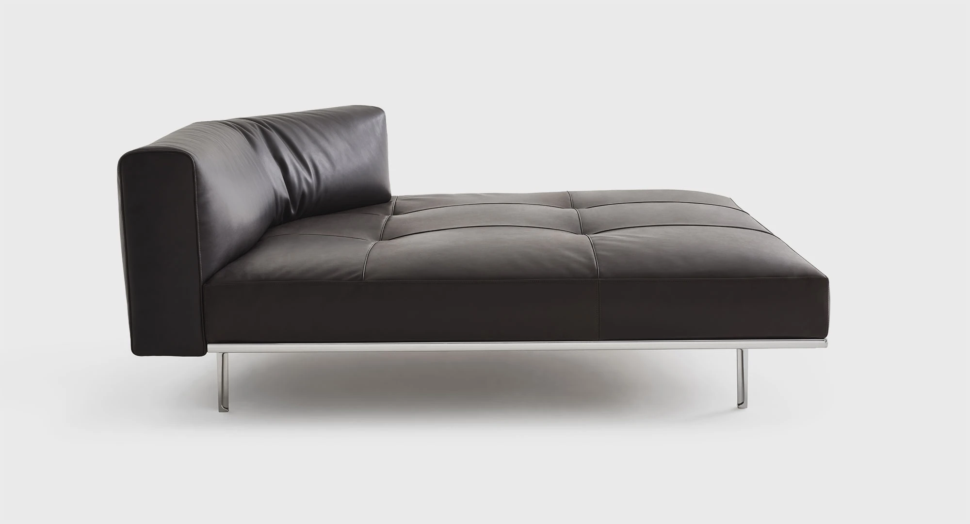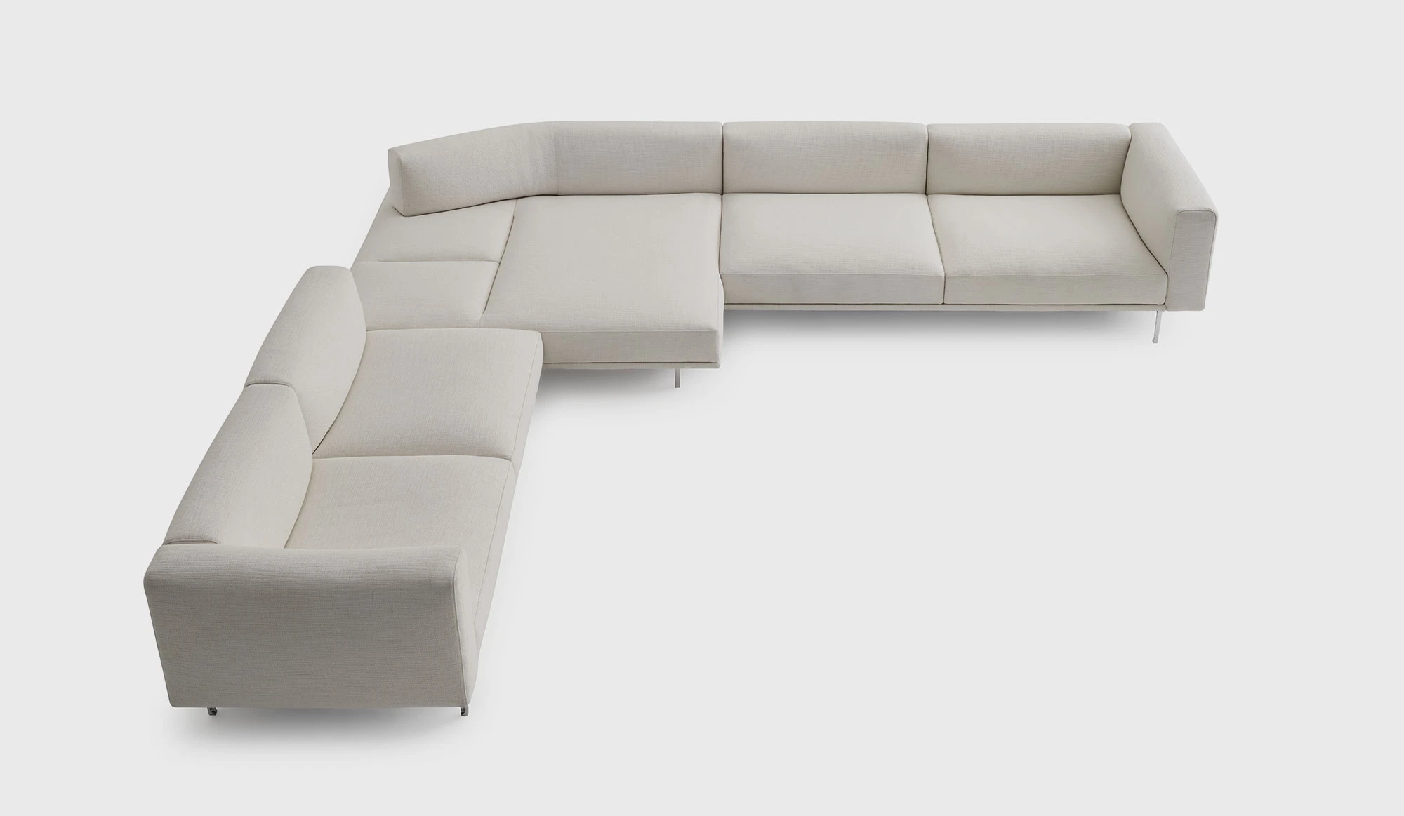 "A platform suspended in space, a cross between an island and architecture. An object imagined to float in space and present itself as a universe in and of itself. Matic borrows moves from a frame designed like a building with a strict structural system: pillars, footings, beams, columns, slabs. A high-profile technological exercise that decides its own aesthetic destiny, its own form. Very low, ample seating of different dimensions, on which modular arms and backs can be arranged, created to provide structural support. A muted nature, depending on the finishes, Matic can fit into settings where it disappears or can stand out with its decisive character, but discreetly." Piero Lissoni