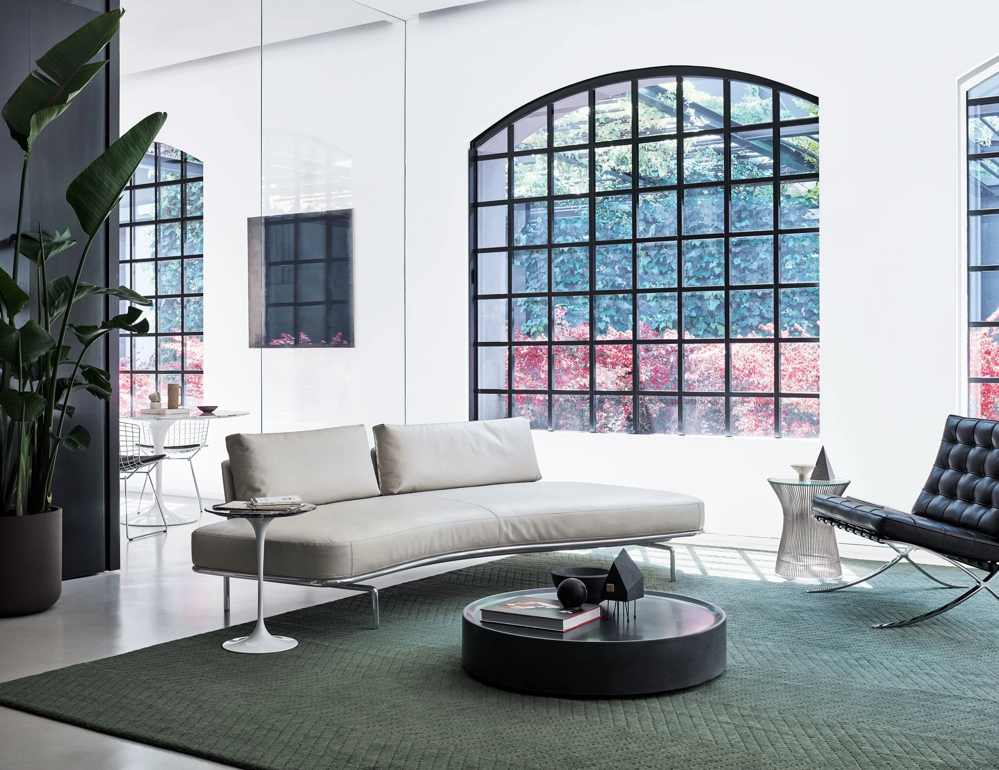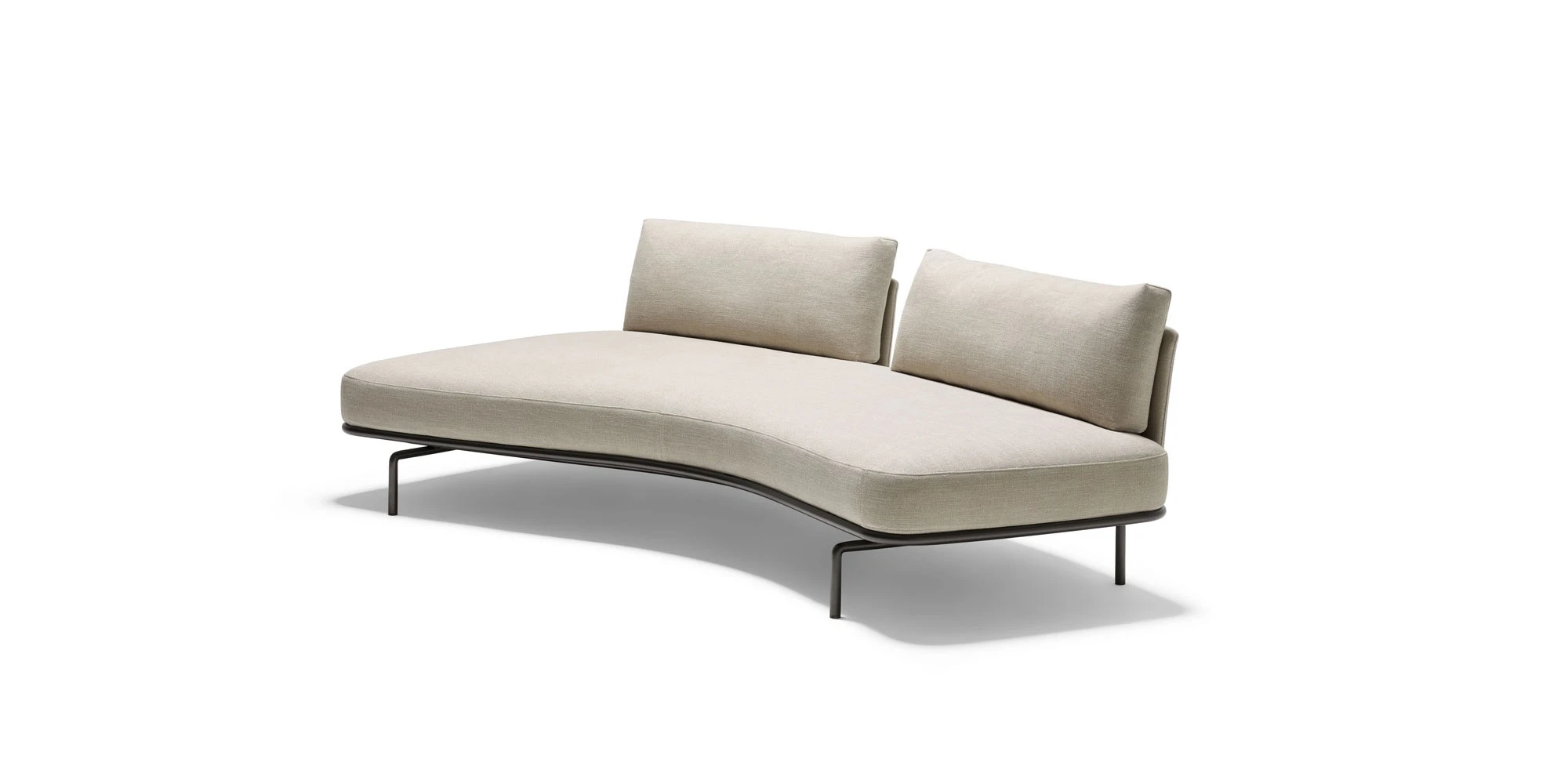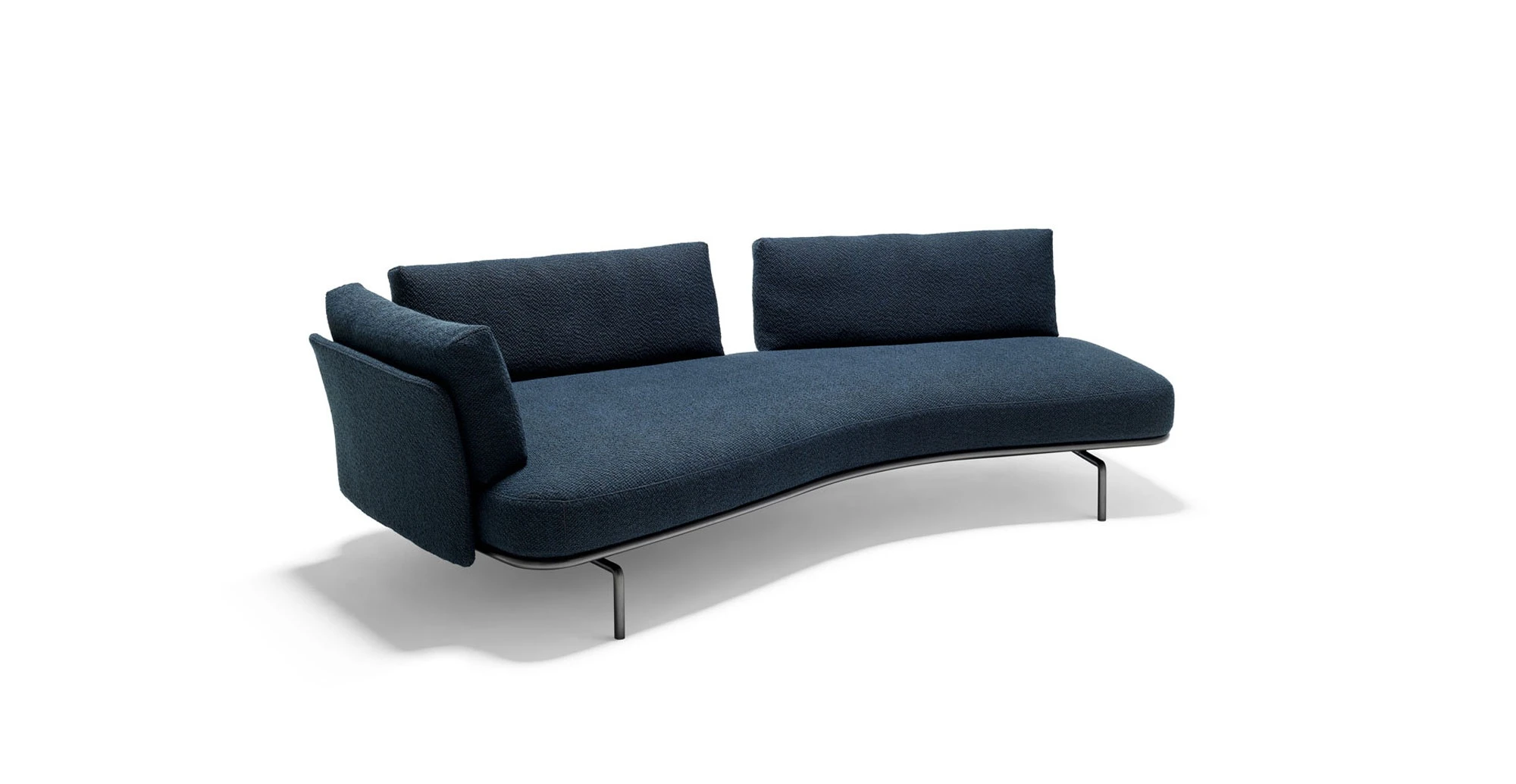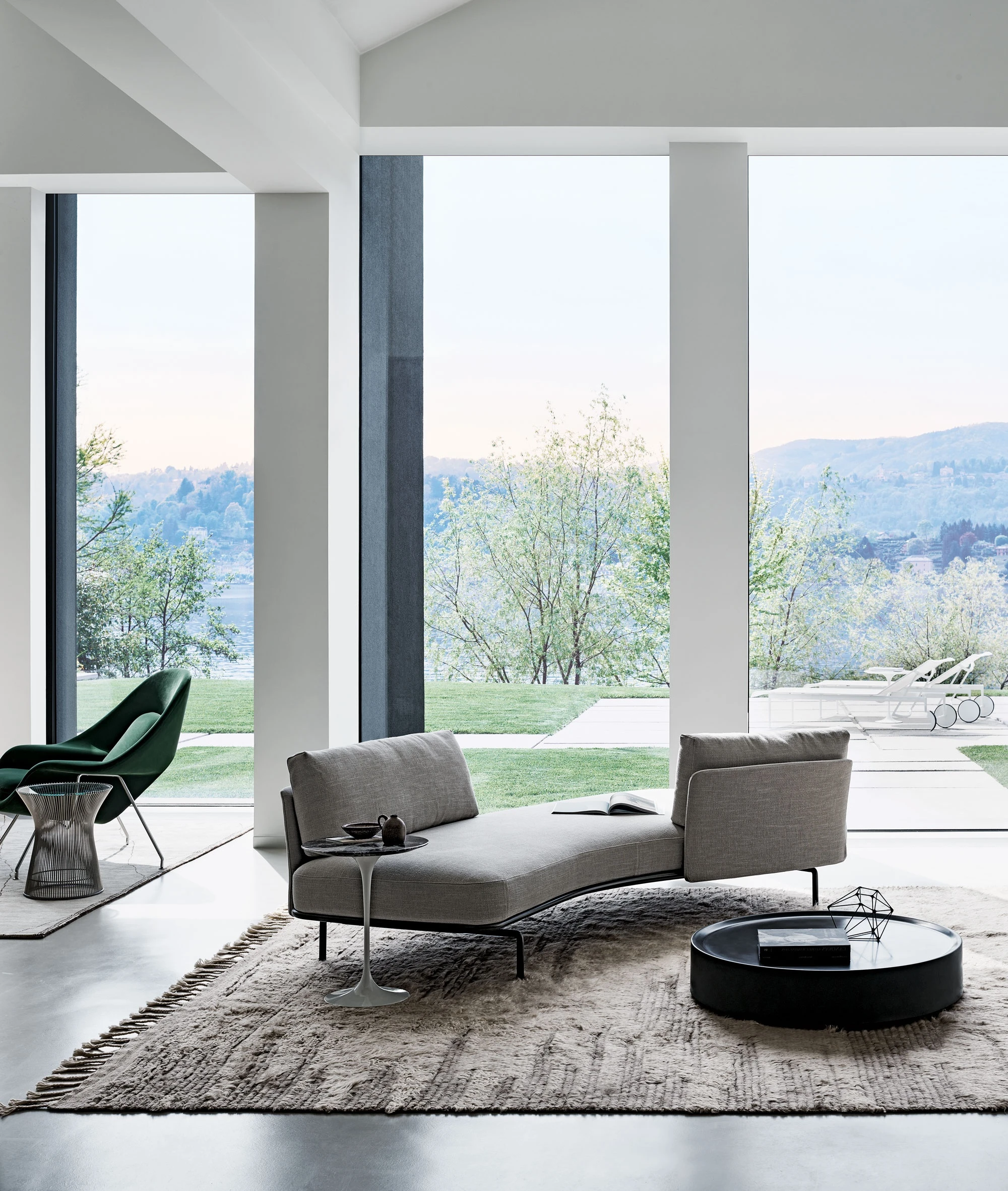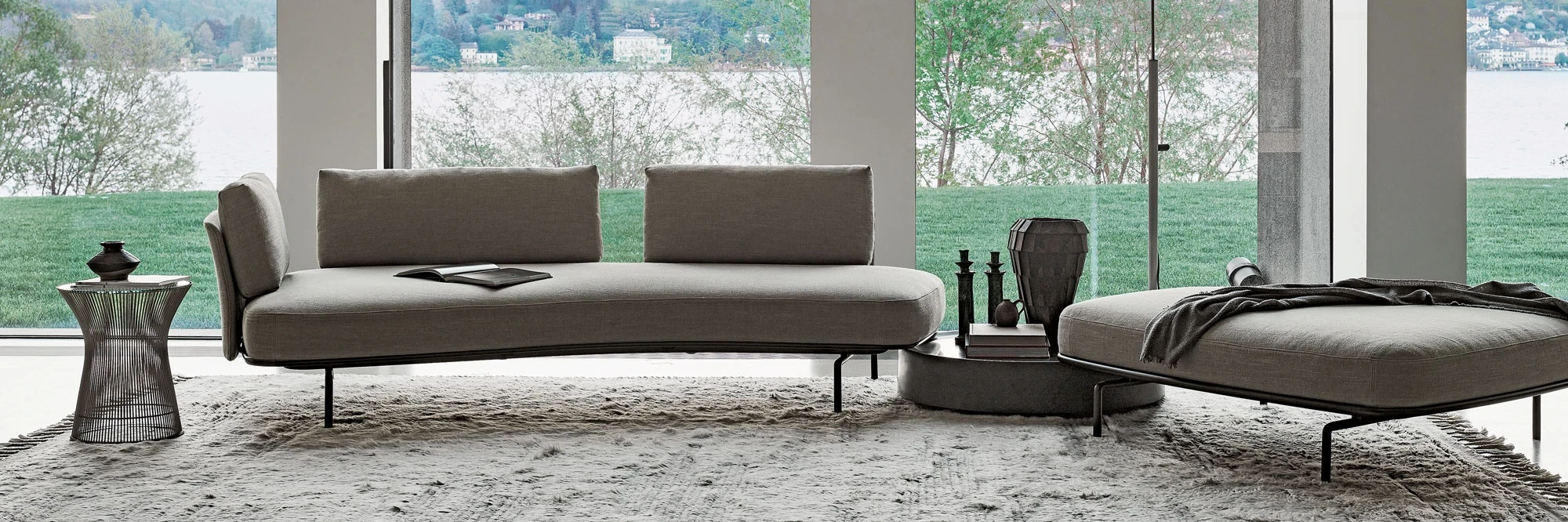 “It’s very organic in form, a sort of platform with a special system for hanging the backrests and positioning the cushions. But it was born precisely to be a platform so I’m reluctant to call it a sofa: it’s like a dais that can be fitted with objects, be they the armrest or backrest, but they don’t necessarily have to integrate the full form.” Piero Lissoni