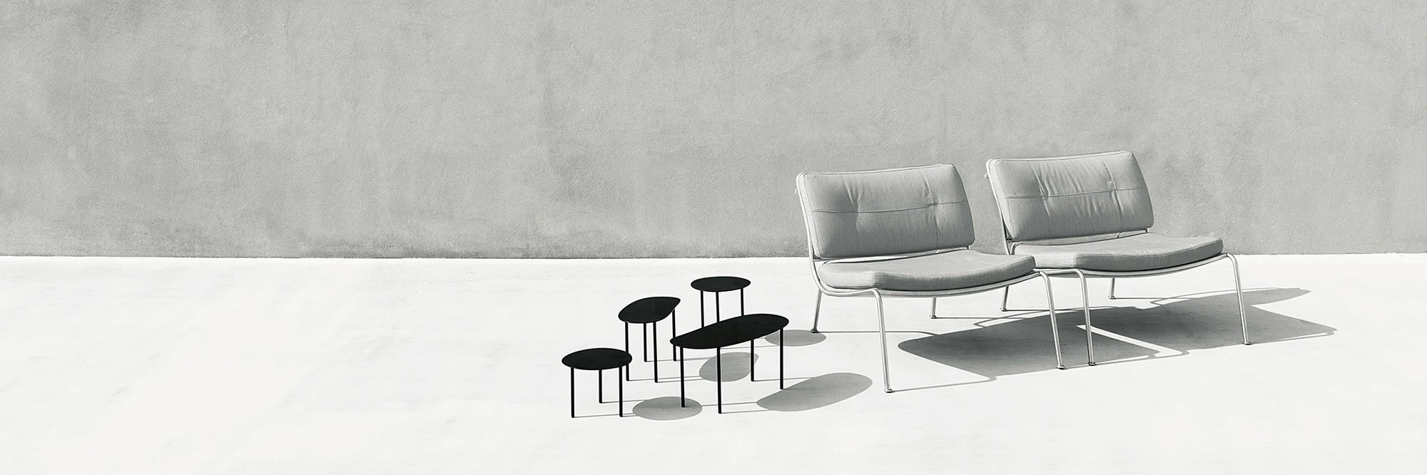 Frog is minimalist and lightweight for a summer look, with an upholstered version for the cooler months.