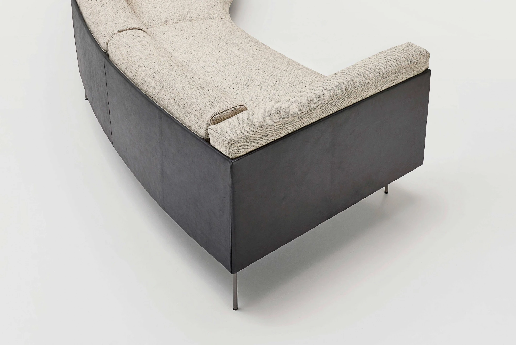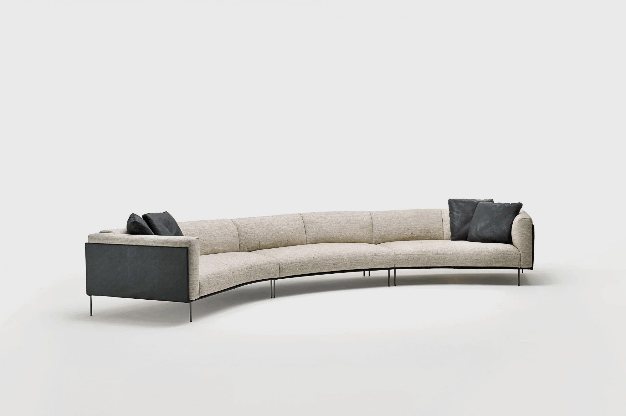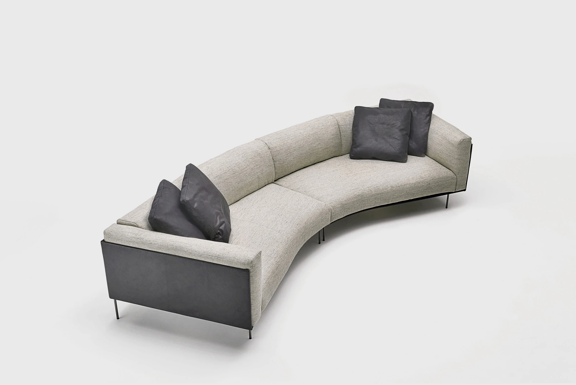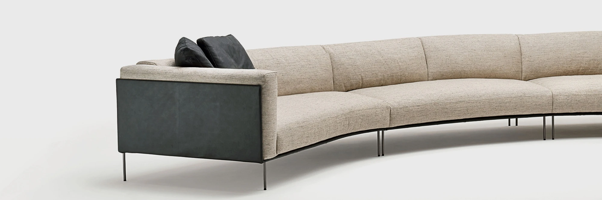 The Rod Bean sofa consists of central and terminal elements – fluid and dynamic shapes which come together sinuously to form ever more alluring spaces. The angle of the curvature and the dual depth of the terminal units allow the new elements to be perfectly integrated with the existing ones, opening up new arrangements and combinations.