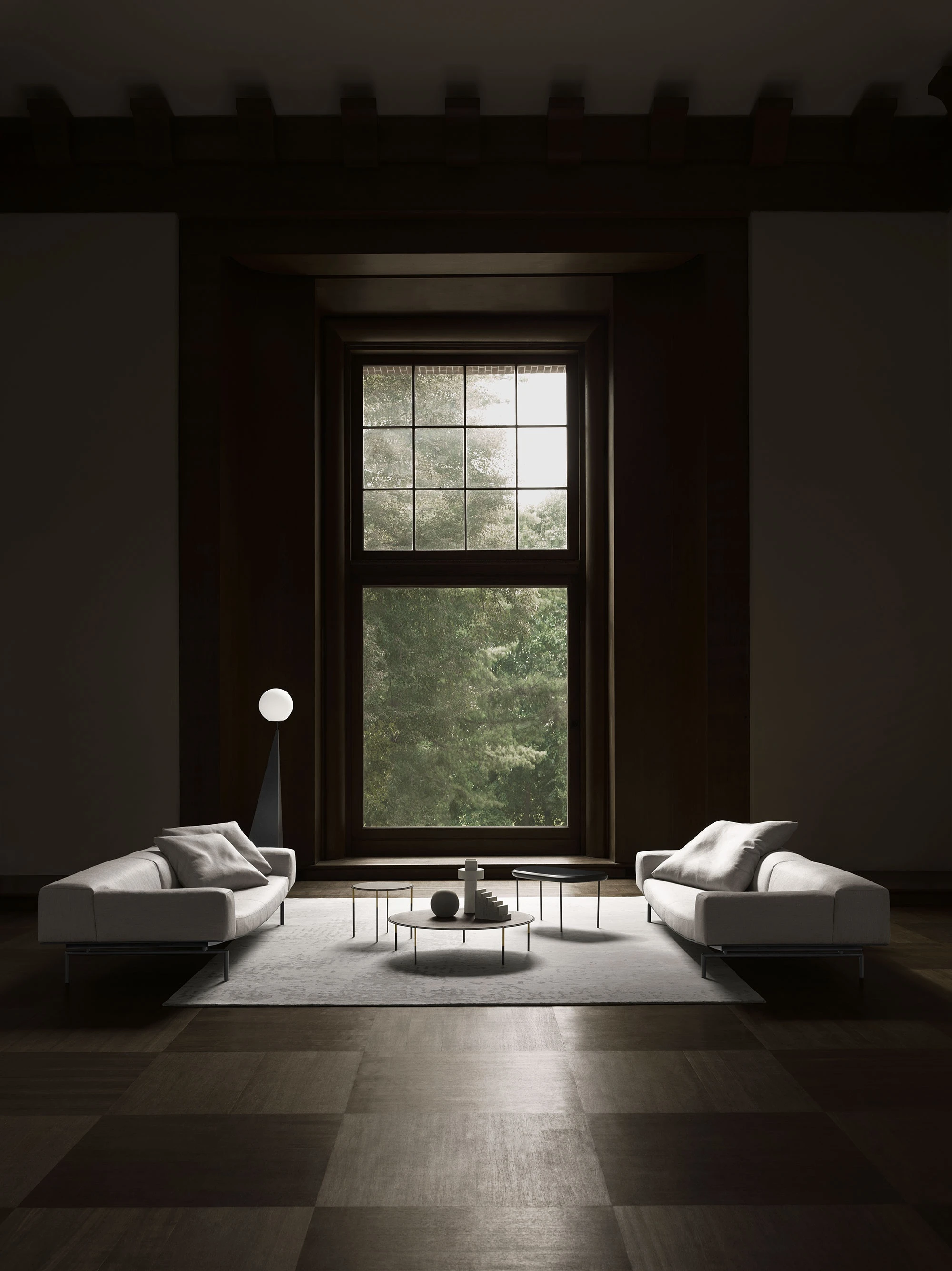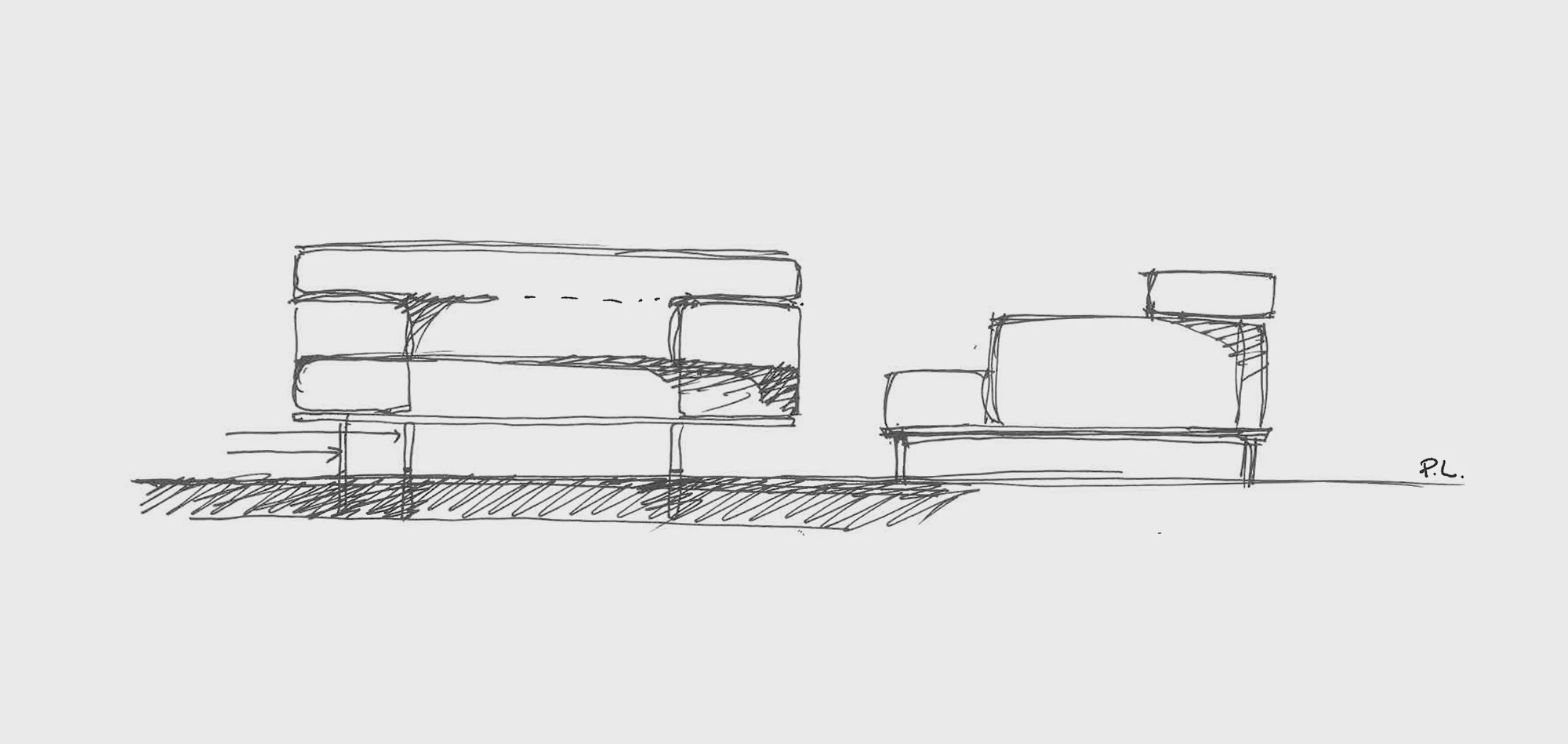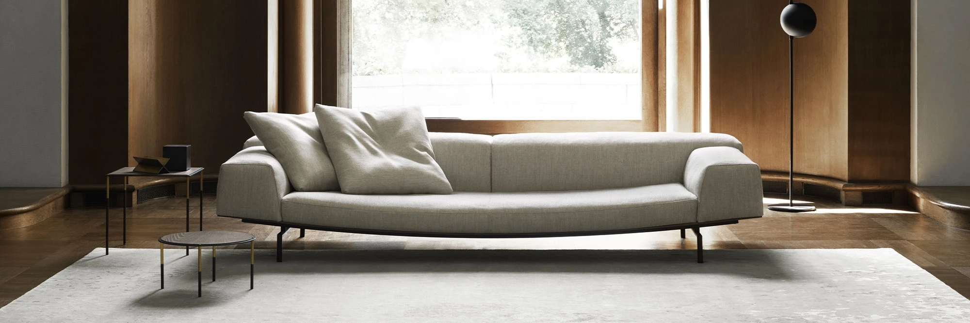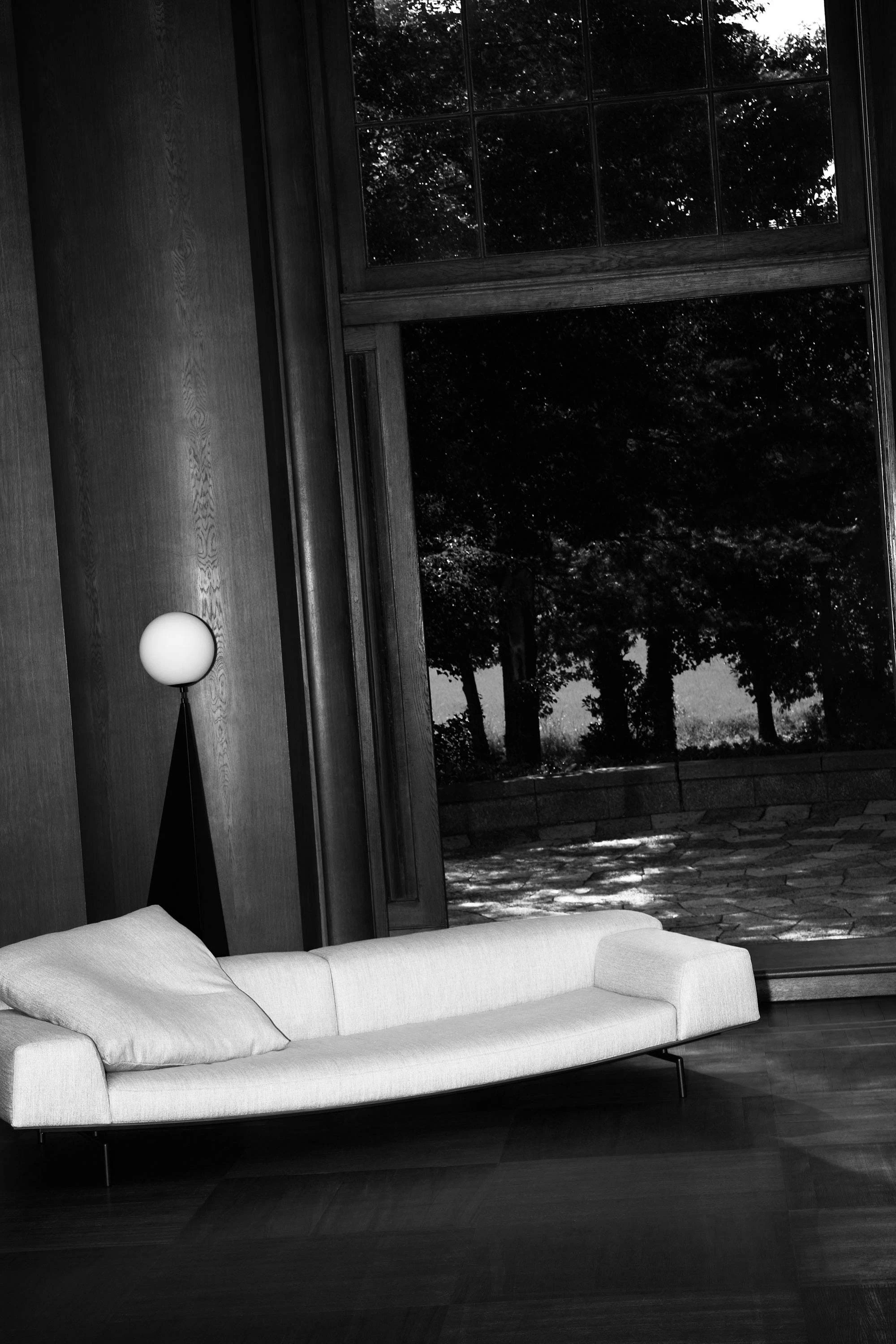A tribute to the epitome of elegance, the lenticular sofa Sumo brings dynamism, character and energy into the space with its slender and unique silhouette, a rigorous yet fluid form. The tapered and essential shape of the frame, pleasantly concave and raised on metal feet, counterpoises the large and welcoming padded components; the union of these two apparently contrasting elements produces a balanced and harmonious result that is truly enchanting.