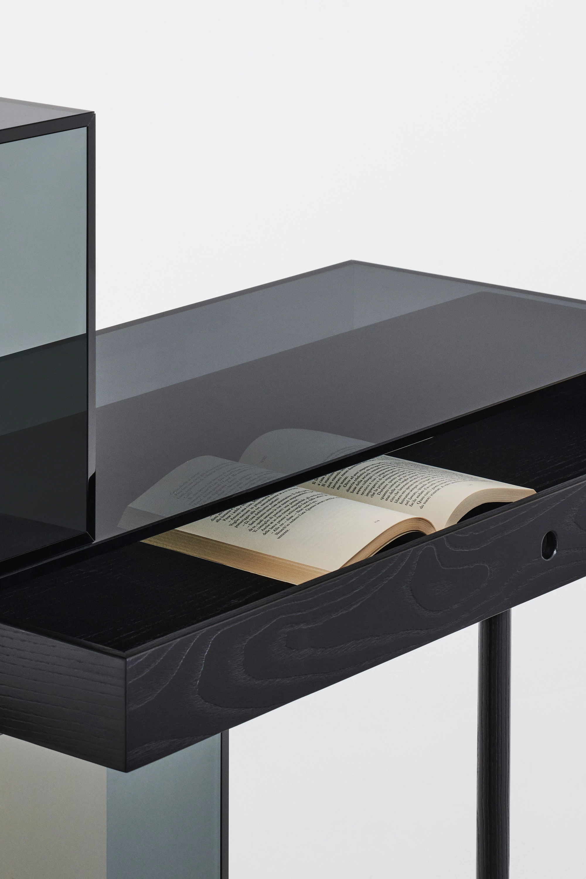 The lines of the Ratio desk evince a certain formality and simplicity, creating a great decorative effect that is further enhanced by the precise detailing and the original use of materials, colors and finishes.