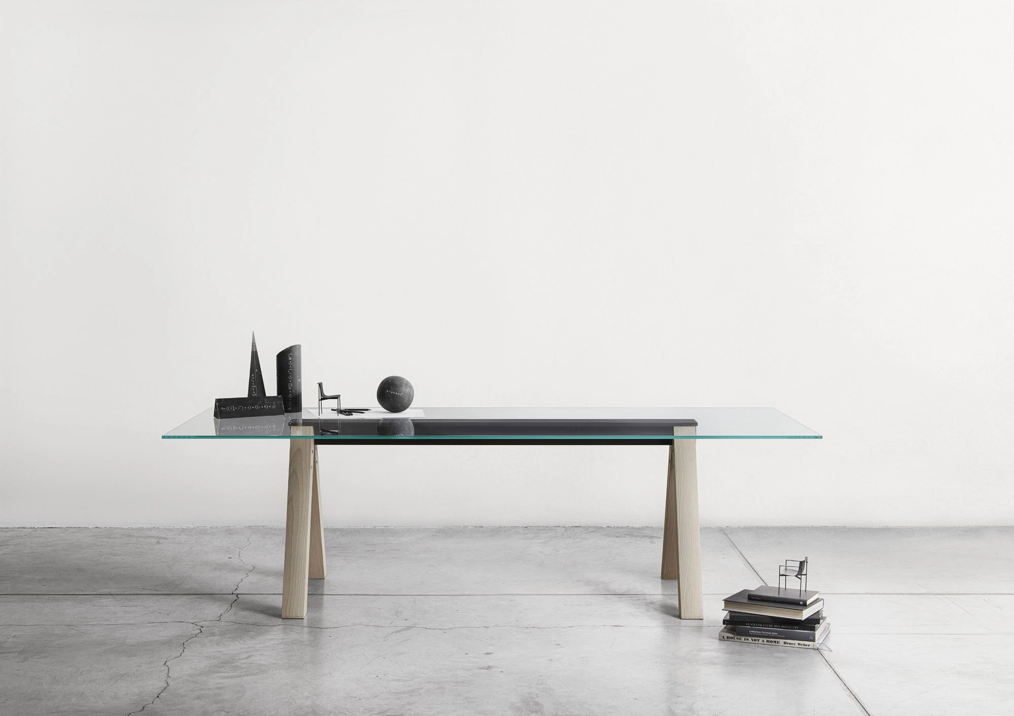 “Sesto is a table with two fundamental elements: legs and a top. It is constructed to an architectural scale and maintains this language while paring it down to its very essence: two legs that intersect, a beam that holds them together distributing the weight and a flat surface placed on top, exactly as in a building. It’s no coincidence that it’s called Sesto, which translates as arched, as are the legs.” Piero Lissoni