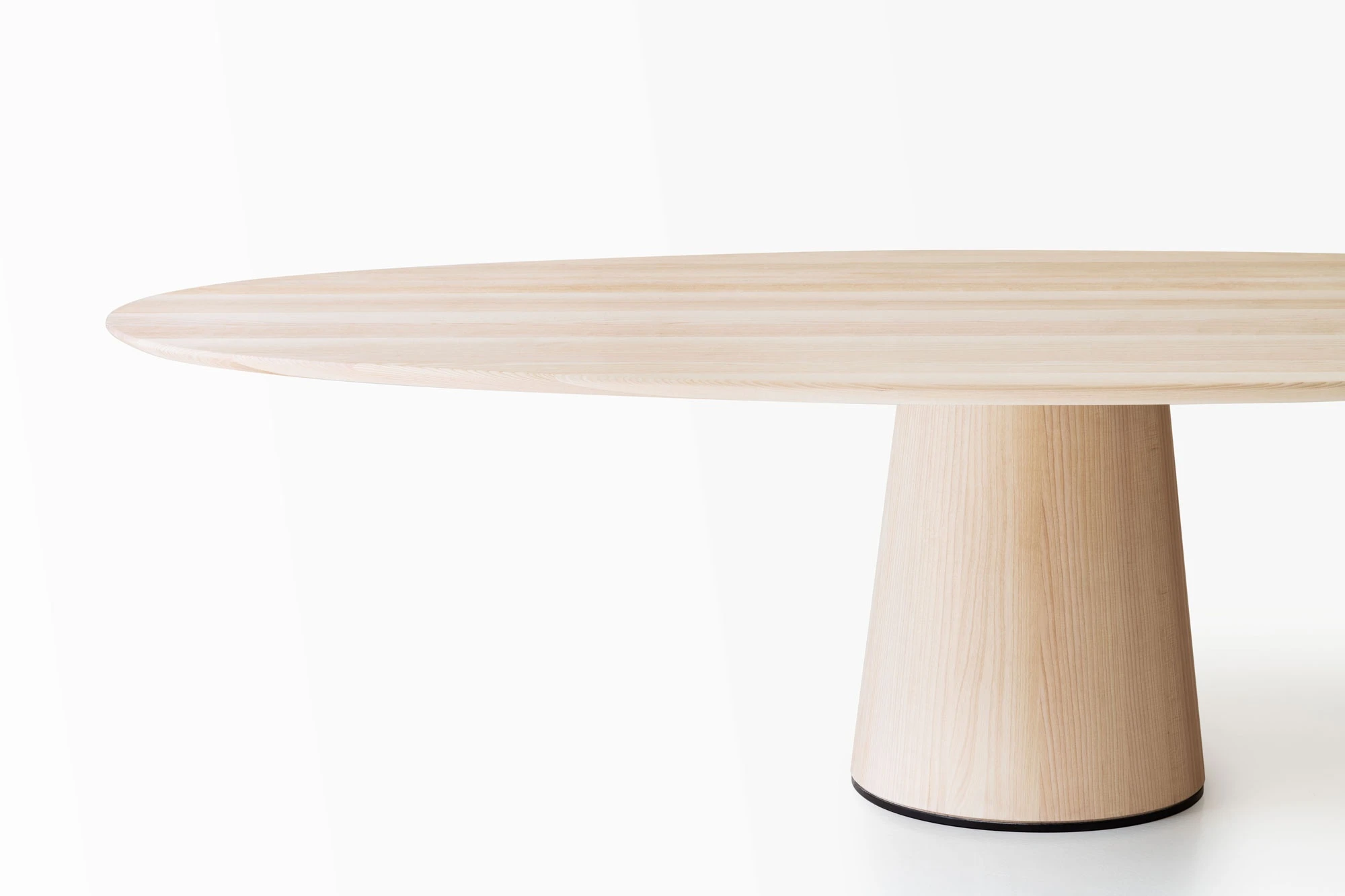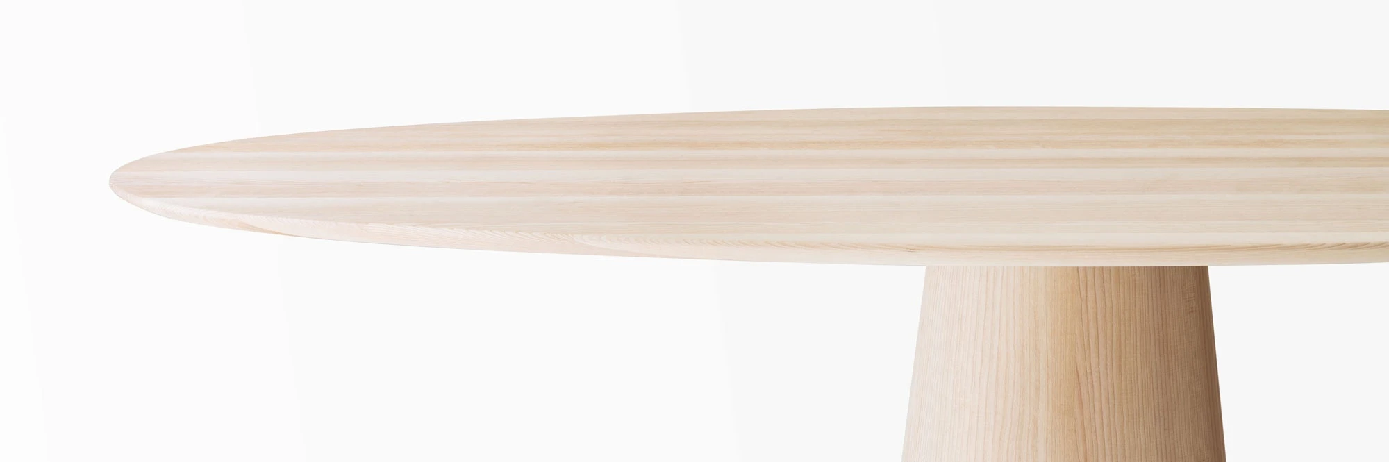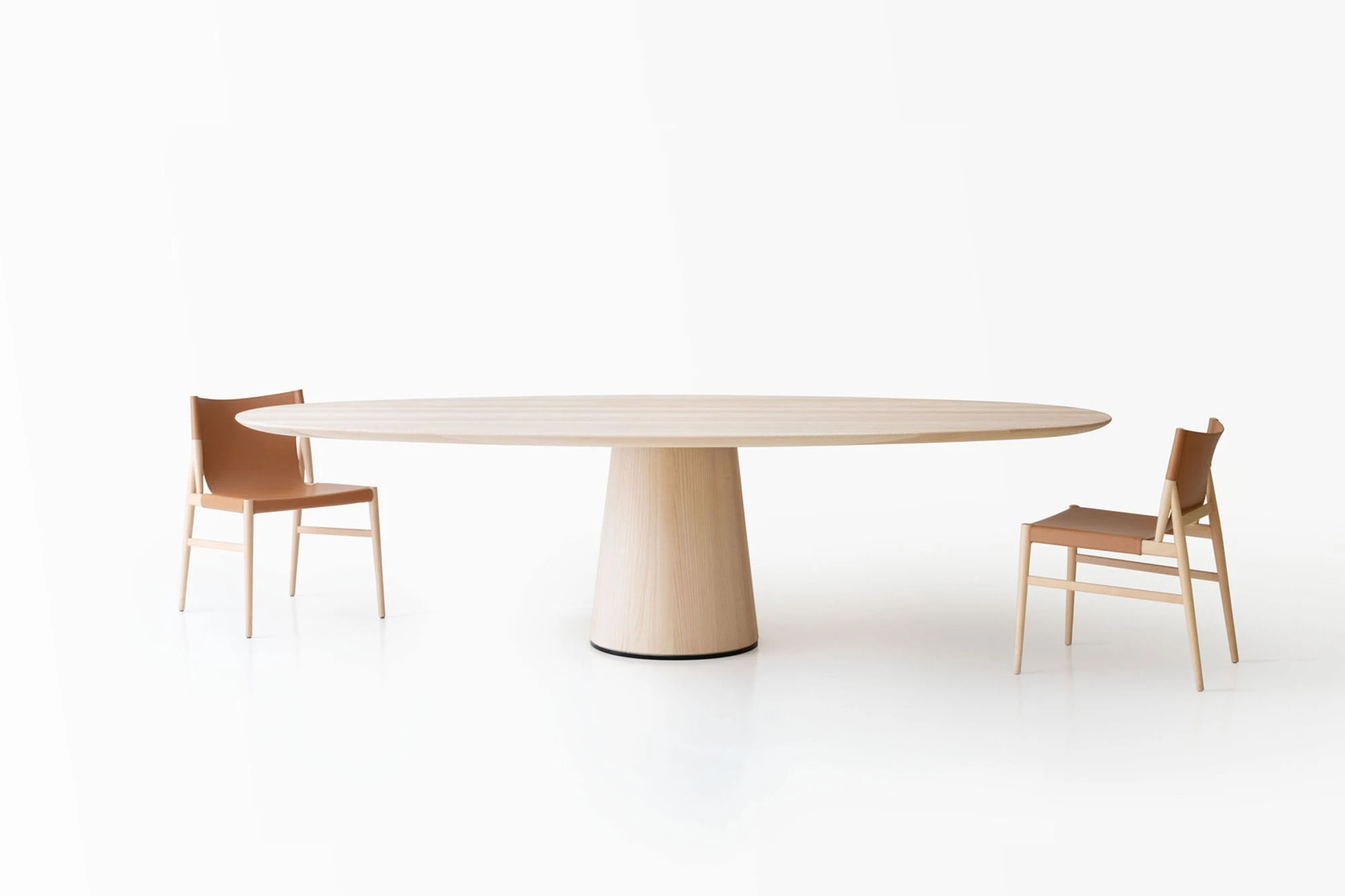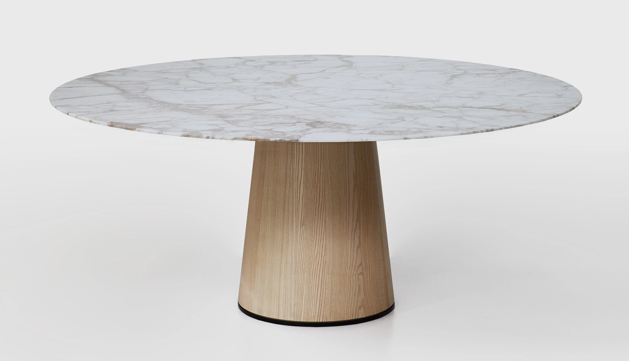 The Materic table is a sculptural object where the absolute simplicity of design is juxtaposed with the sophistication of materials and workmanship. Materic features a round and bevelled top placed on a base formed of a truncated cone. The top can also incorporate a rotating tray in the centre.