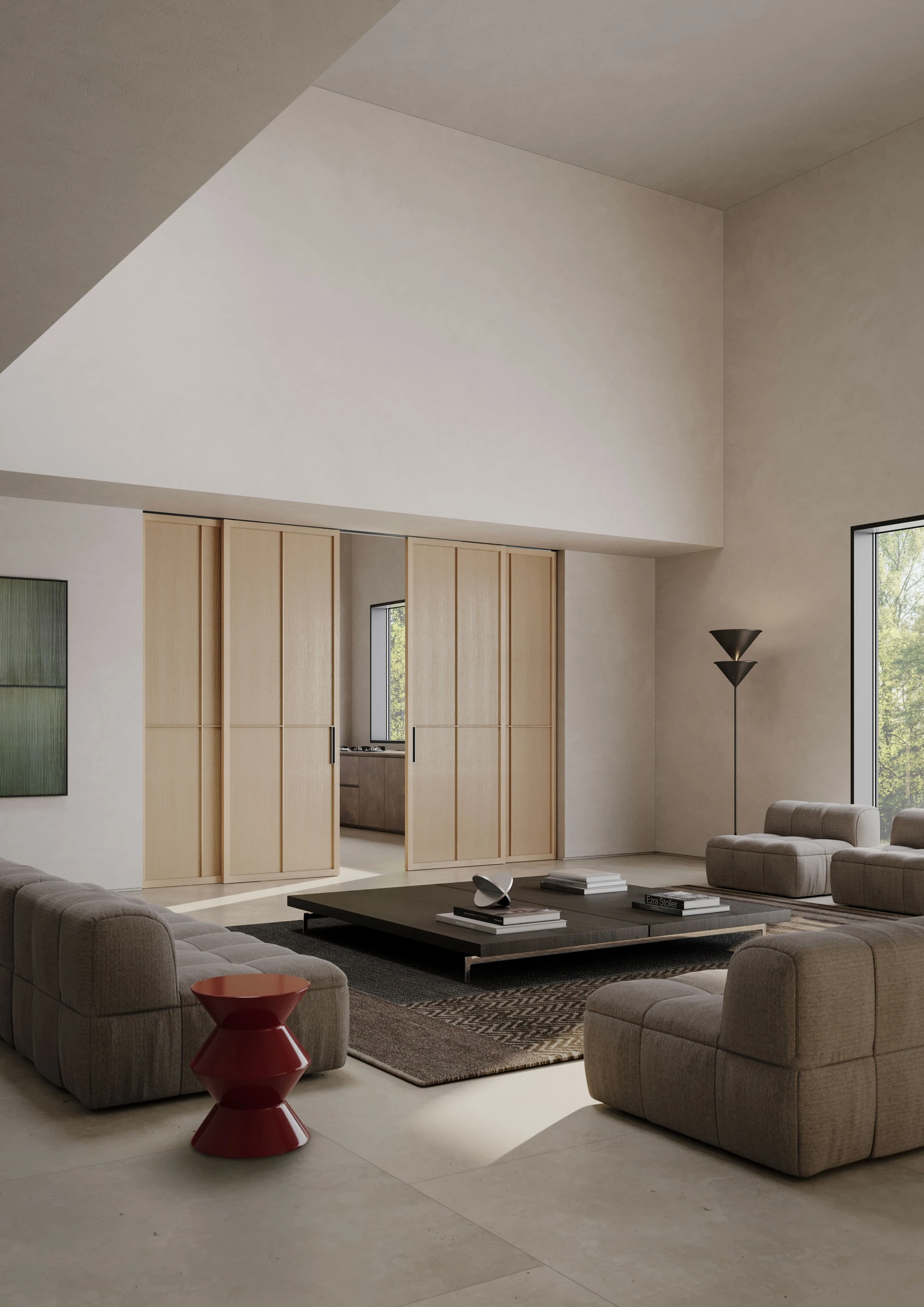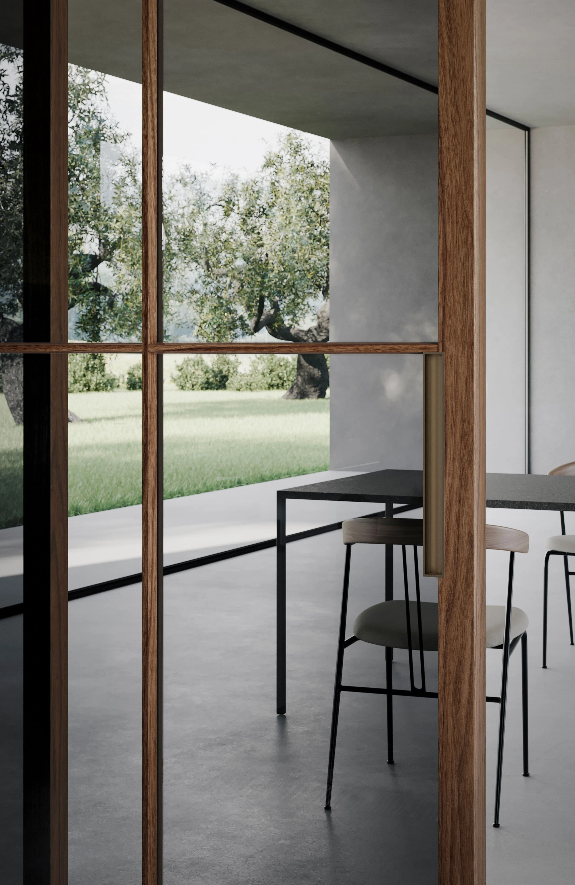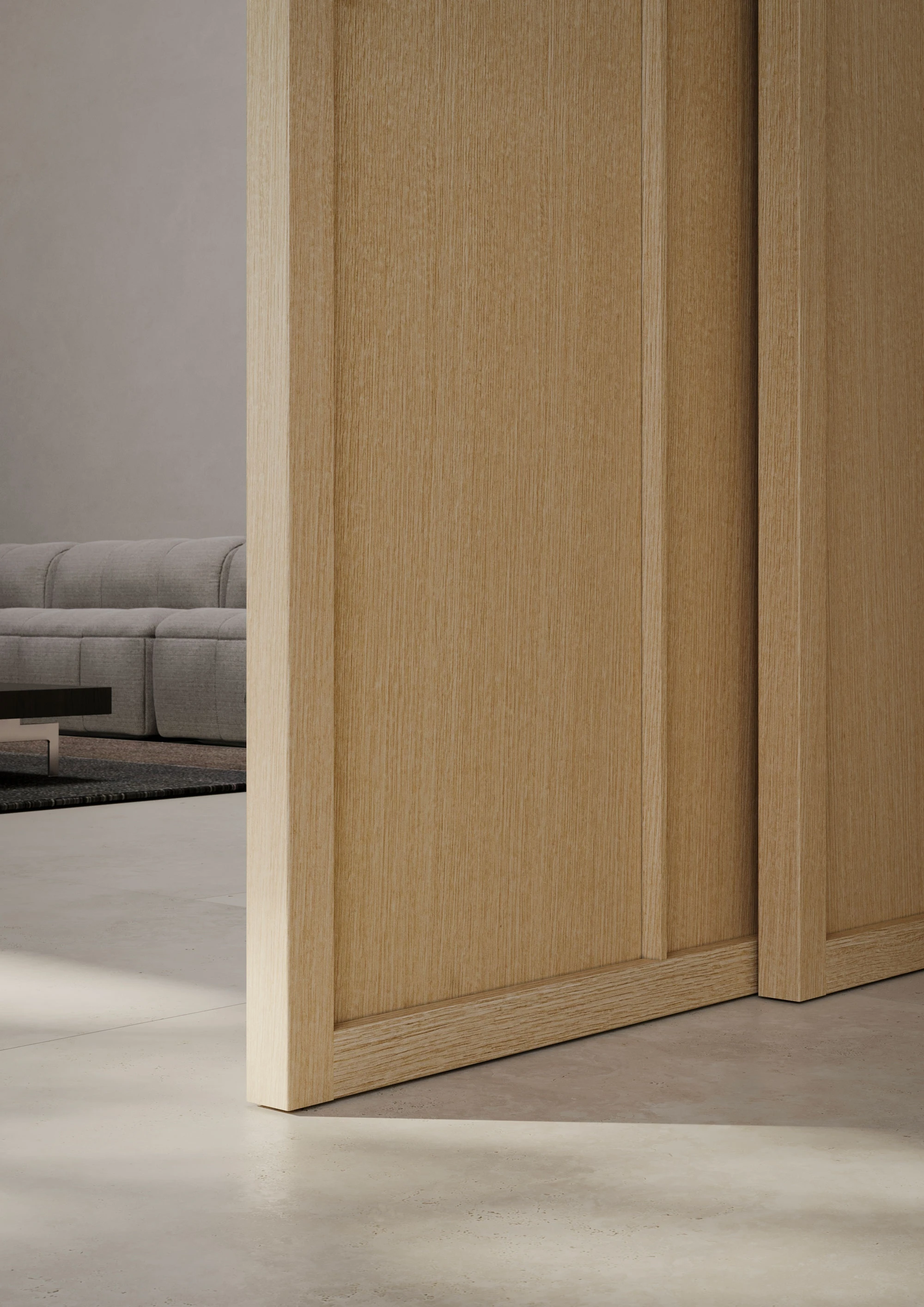 “Skye is a door that has many functions, it can be sliding or hinged. But above all, to make it we used an extraordinary material that exists from time immemorial, we used wood for the frame that surrounds it.” - Piero Lissoni
