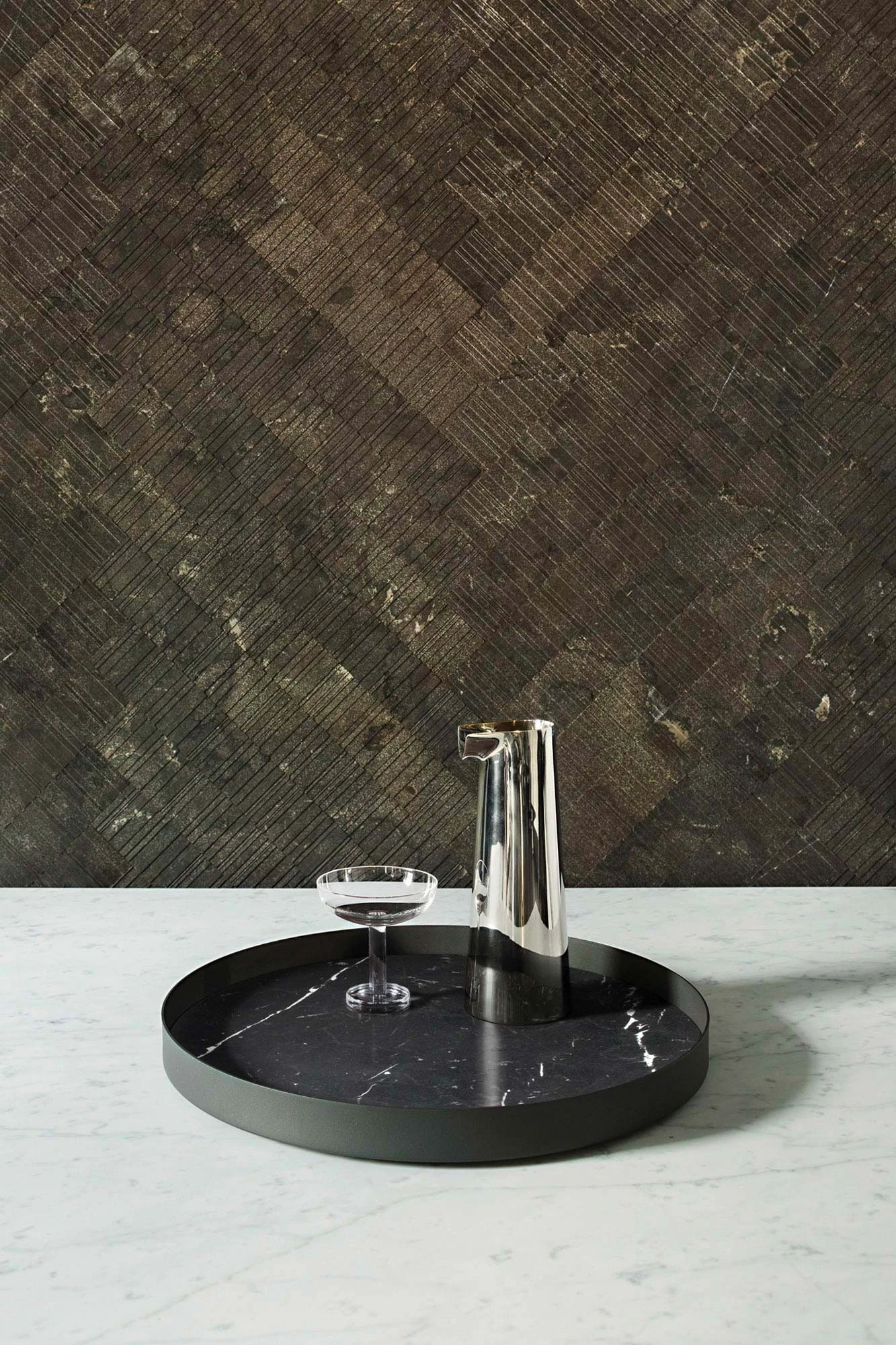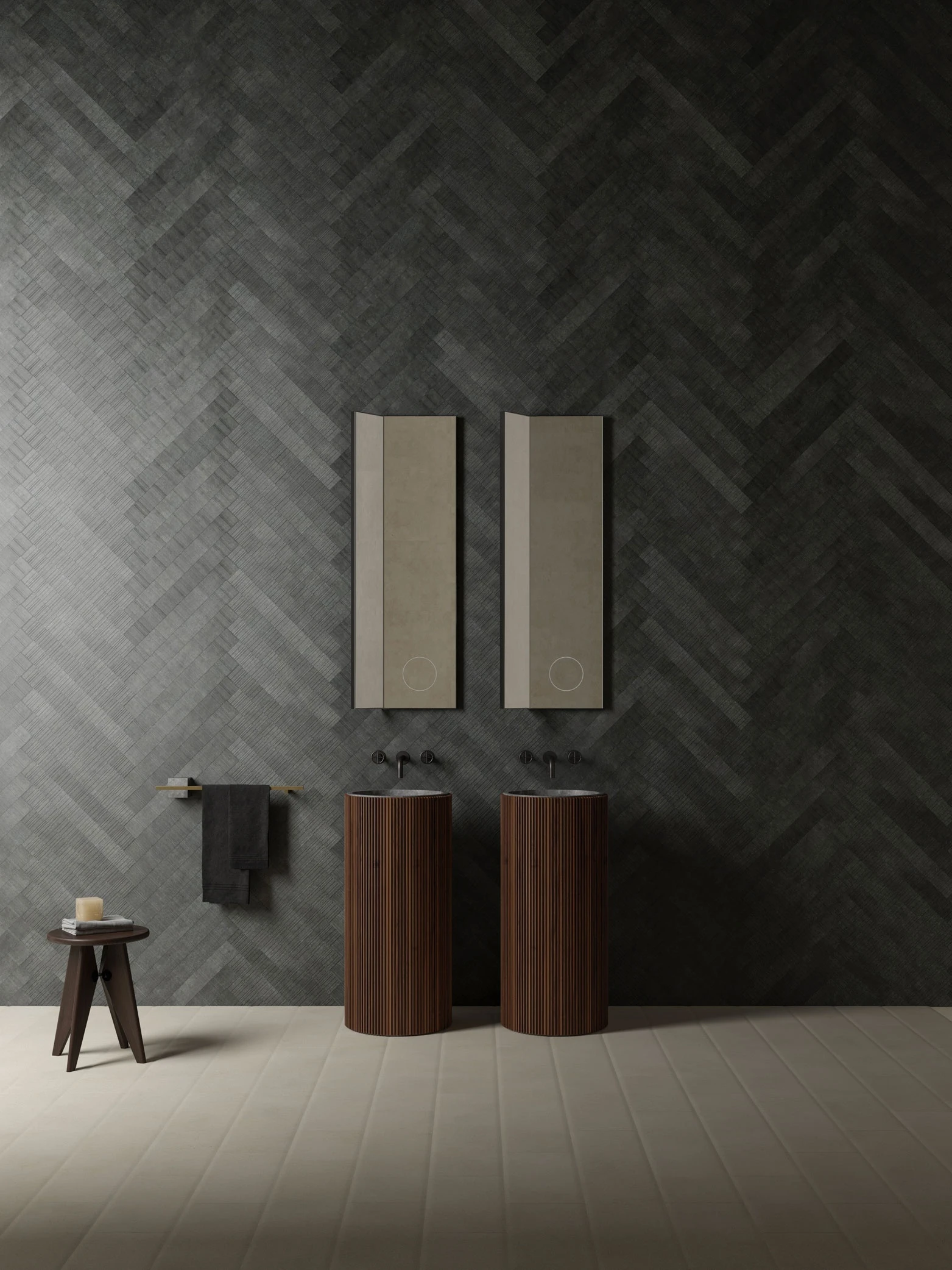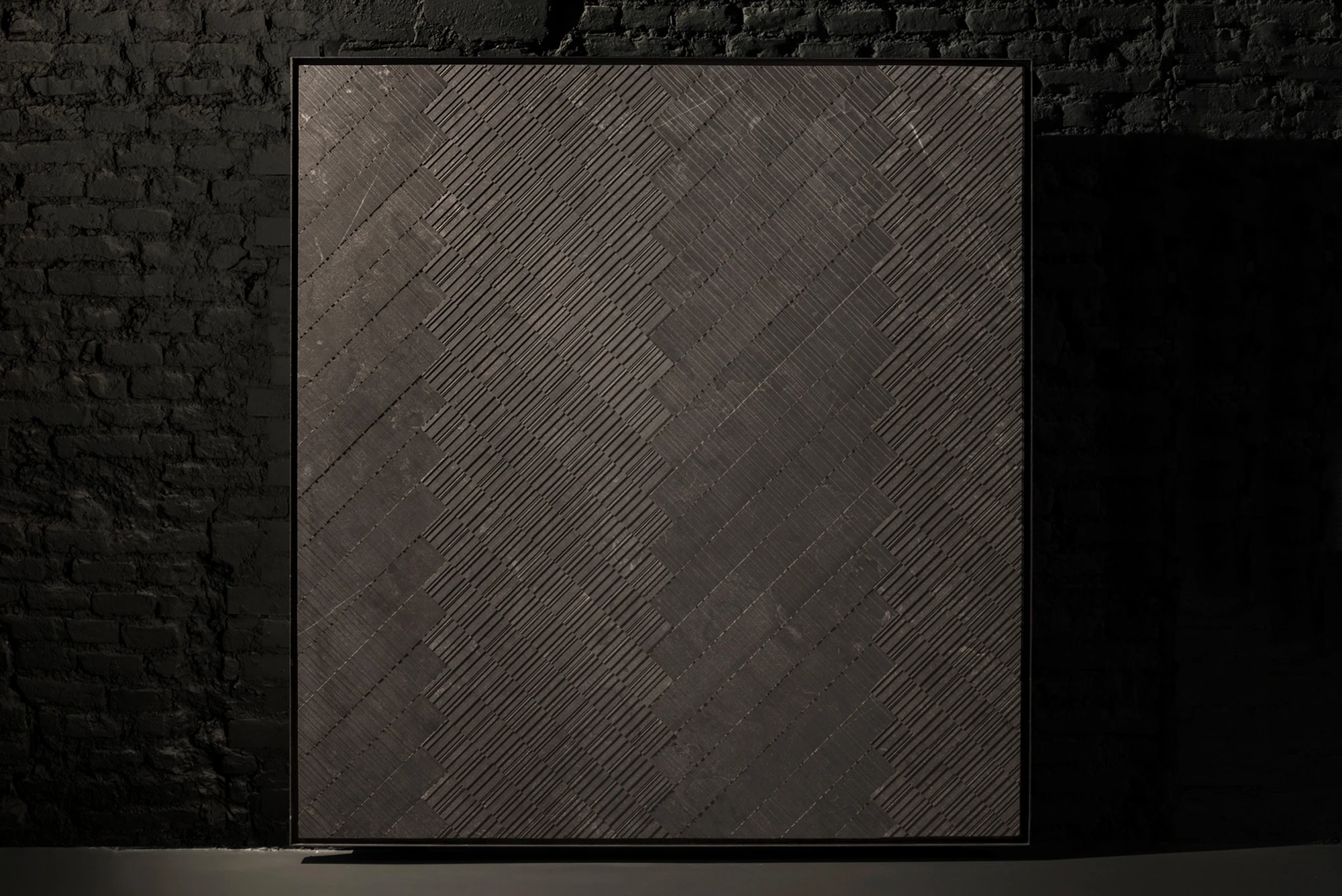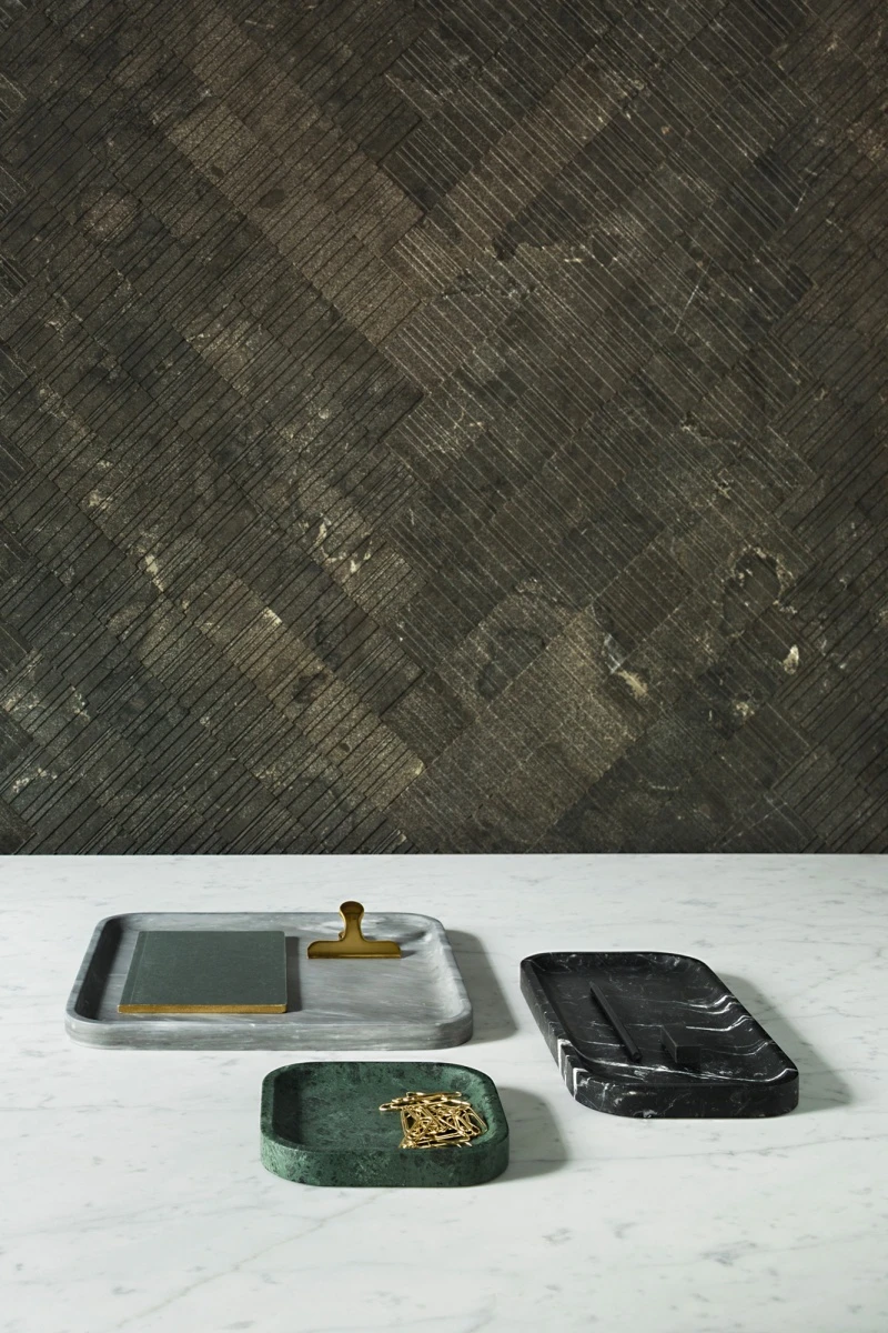 Composed of alternating, irregular lines, the rugged beauty of B-Fish is emphasised by light and it is therefore crucial that when planning your laying pattern, you consider how the main light source and tiles will work together so that the texture is highlighted. Whilst it can be laid in uniform, staggered or random patterns, B-Fish also lends itself beautifully to a herringbone format. The process which creates our B-Fish tiles is designed to preserve the organic and aesthetic qualities of the stone. As a result of this, the tiles may not be perfectly identical, however, this non-uniformity is intrinsic both to the texture and the natural stone itself.