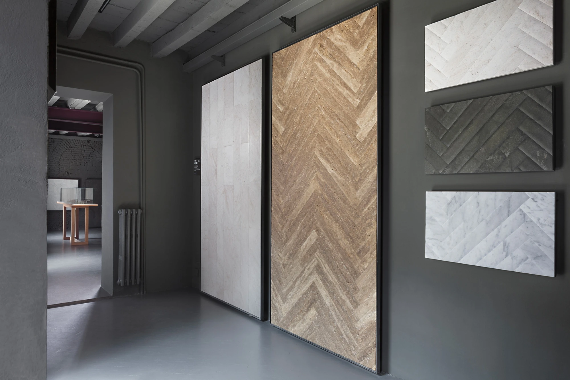 Stone Parquet is, as the name suggests, an interpretation in natural stone of the classic wooden flooring traditionally found in historic noble buildings.The softened surface recalls the effect of well-trodden floors which bear the beautiful marks of centuries of footsteps. Whether installed in a staggered or herringbone pattern its gentle lines create an elegant, peaceful effect.