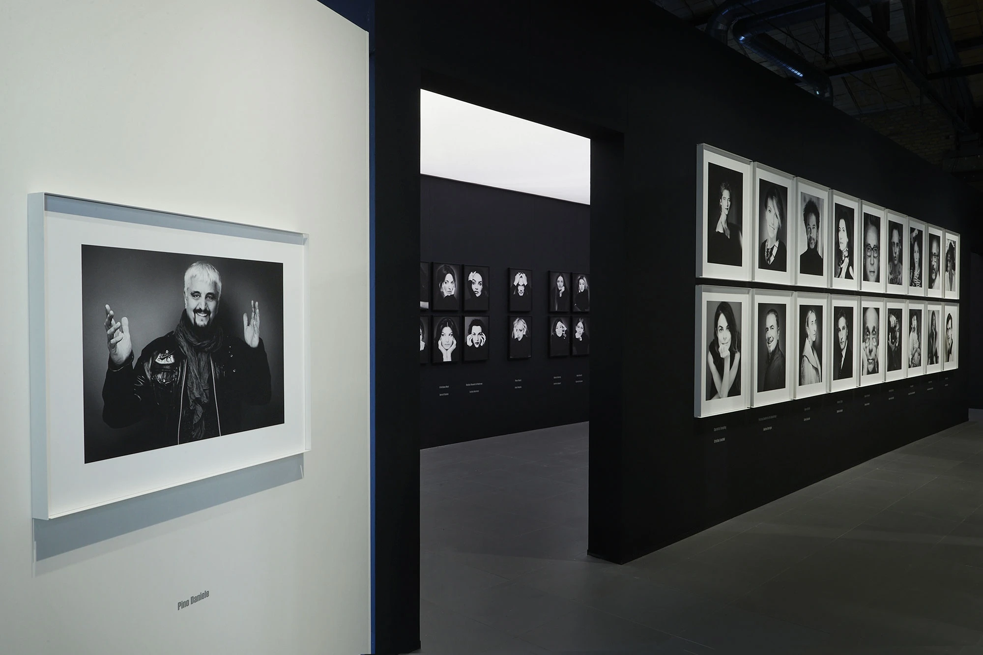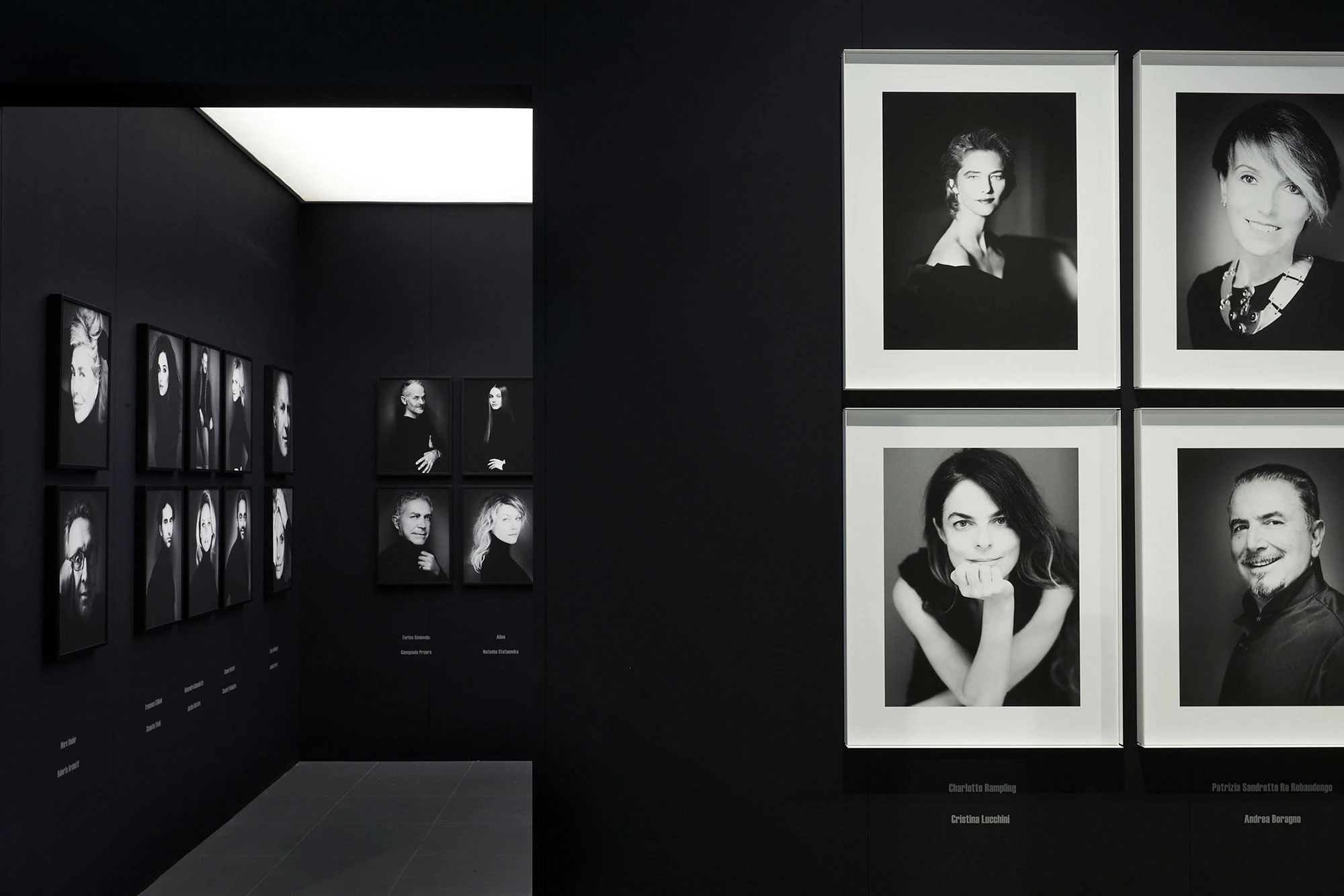 The labyrinthine space, marked out by screens of varying sizes, presents the portraits of Giovanni Gastel as if the individuals are looking out from windows onto some urban landscape. This collective dimension of the exhibition emphasizes the network of relationships and connections that the photographer cultivated throughout his career, while the introspective investigation of each subject reveals their specific individuality.