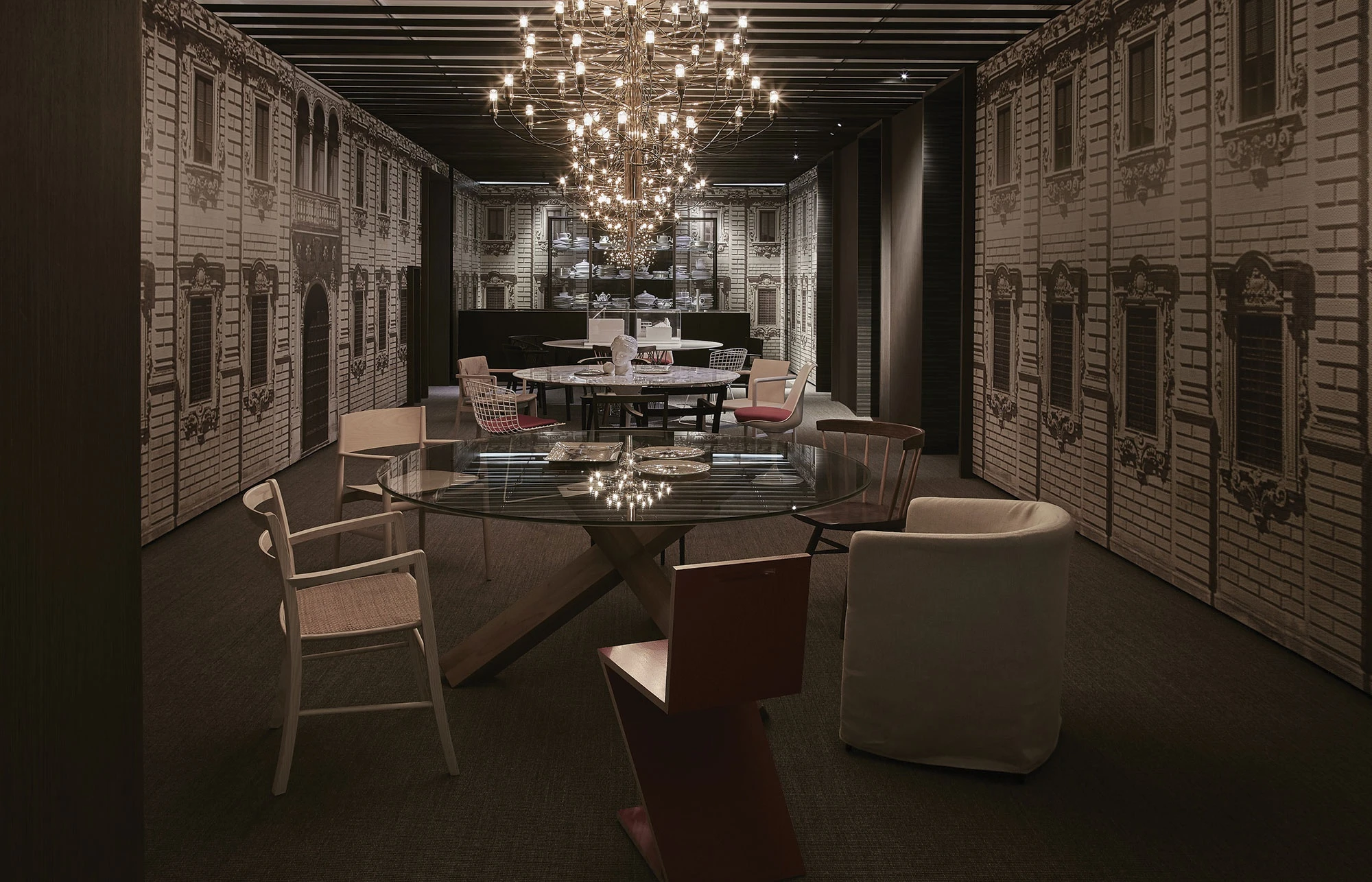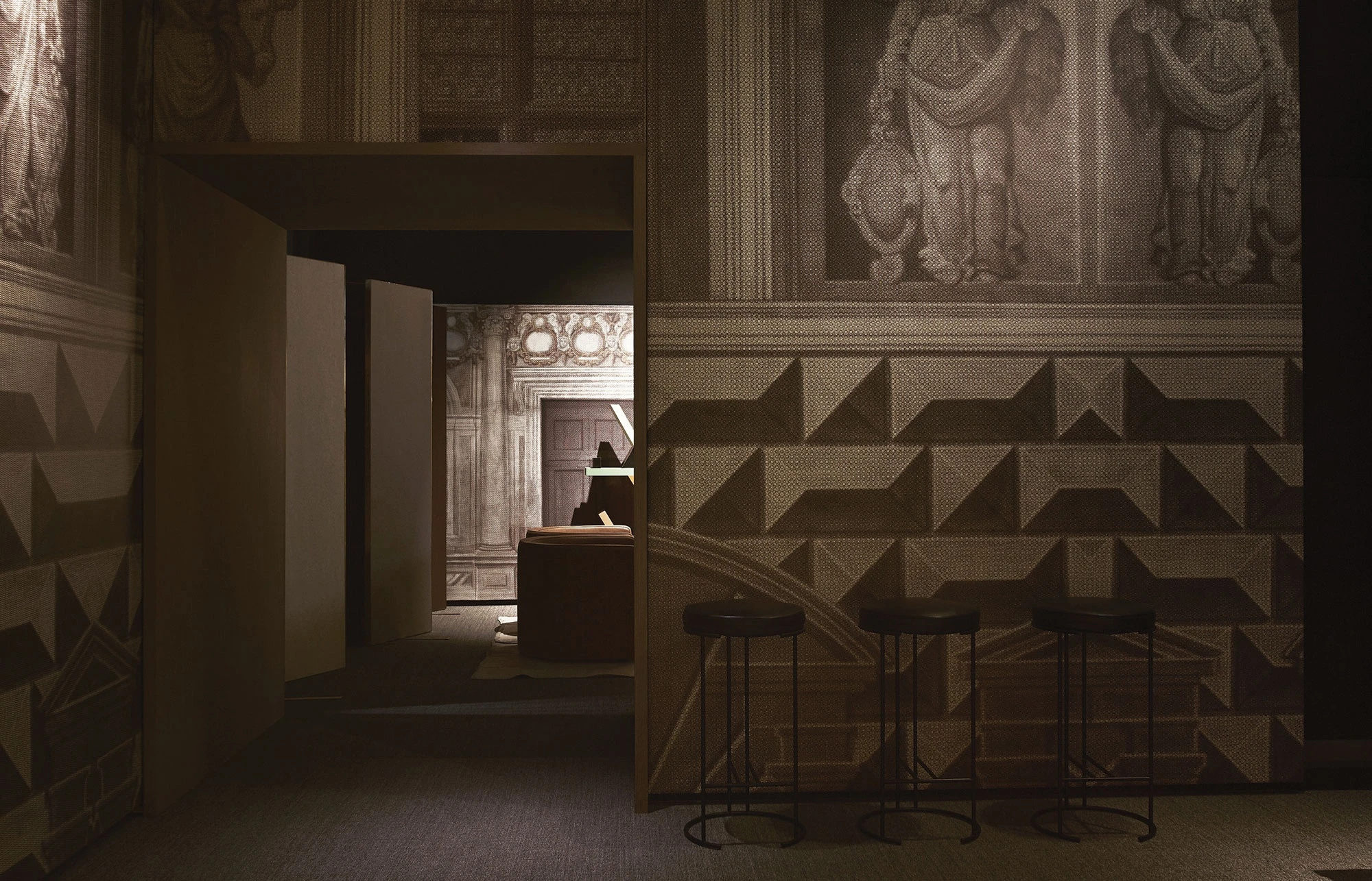 Elle Decor Grand Hotel is an exhibition-installation inside Palazzo Morando in Milan, to imagine a hotel dedicated to 21st century travellers. Piero Lissoni designed Accueuil, Séjour, Fumoir, Bibliothèque, Café & Restaurant, Jardin, taking inspiration from the French hôtel particulier, a type of luxurious villa, but located inside the city. The entire design focuses on clear contrasts, such as the modern world dialoguing with history. “I designed a hotel that was not a hotel, but more of an aristocratic hostel”