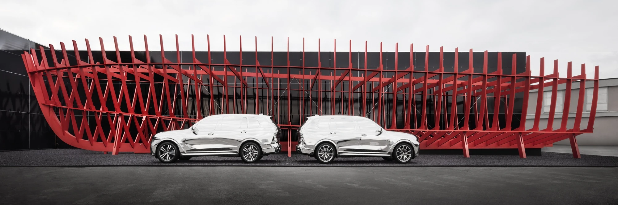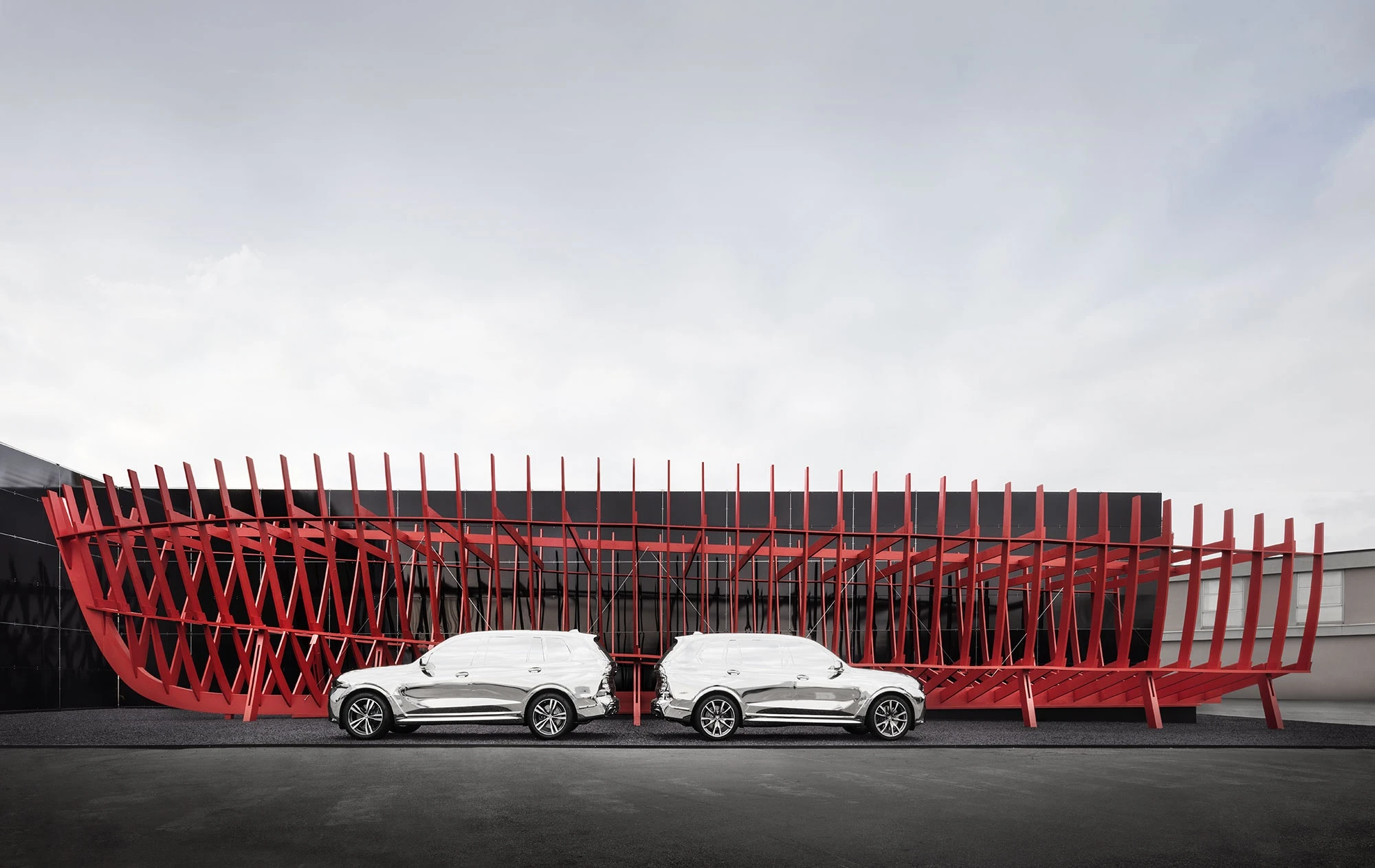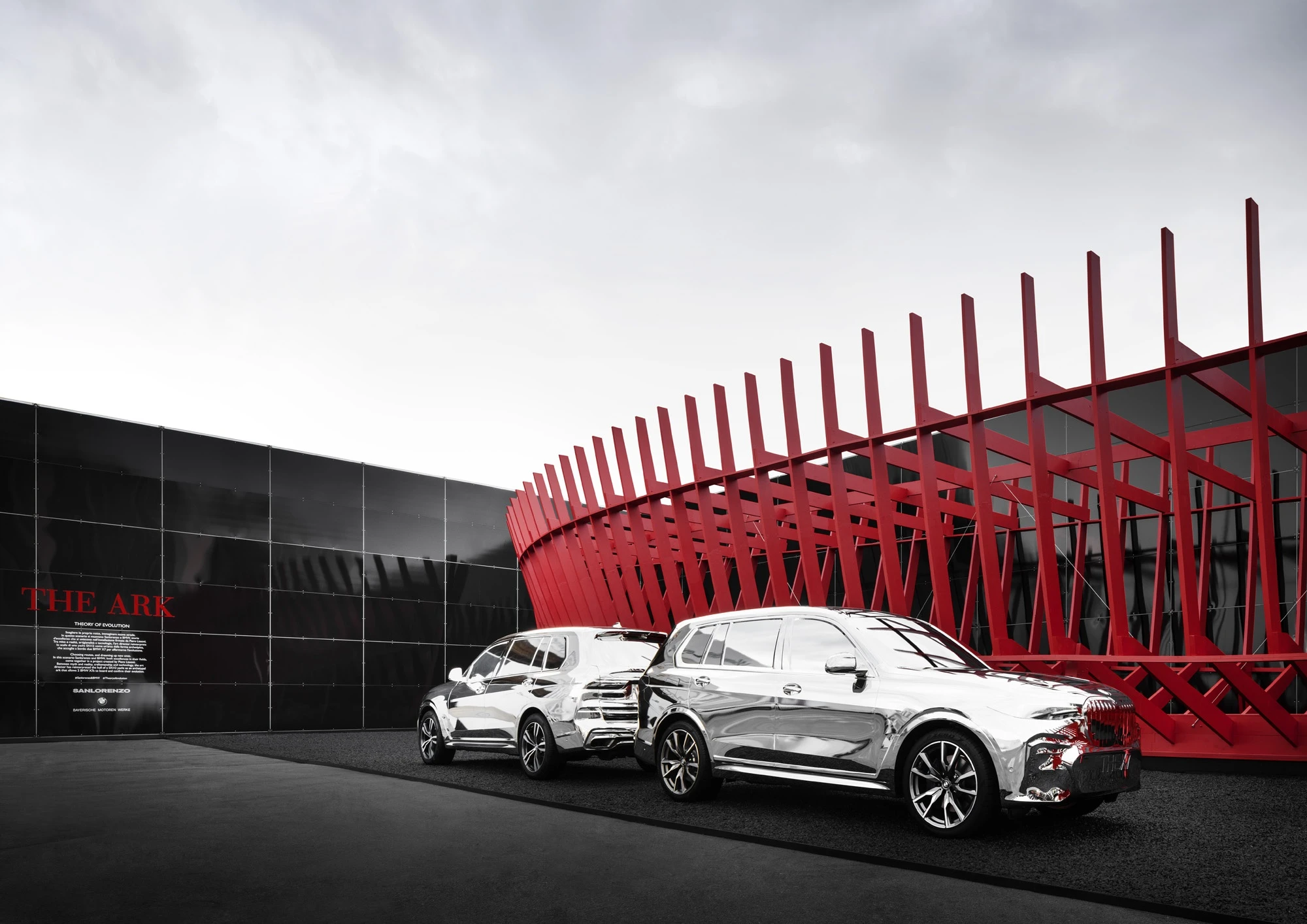 The Ark was the installation that announced the partnership between BMW and Sanlorenzo on the occasion of the Genoa Boat Show in 2019. Between myth and reality, craftsmanship and technology, Piero Lissoni reinterpreted the hull of a SX112 yacht, imagining it as an ark with an atypical form that contained two BMW X7 automobiles to illustrate their evolution. The two chrome-plated cars appeared as if forged from one block of metal, transformed into futuristic sculptures that became a symbol of the avant-garde, of the will to break with convention and of the courage to innovate, convictions shared by both BMW and Sanlorenzo.