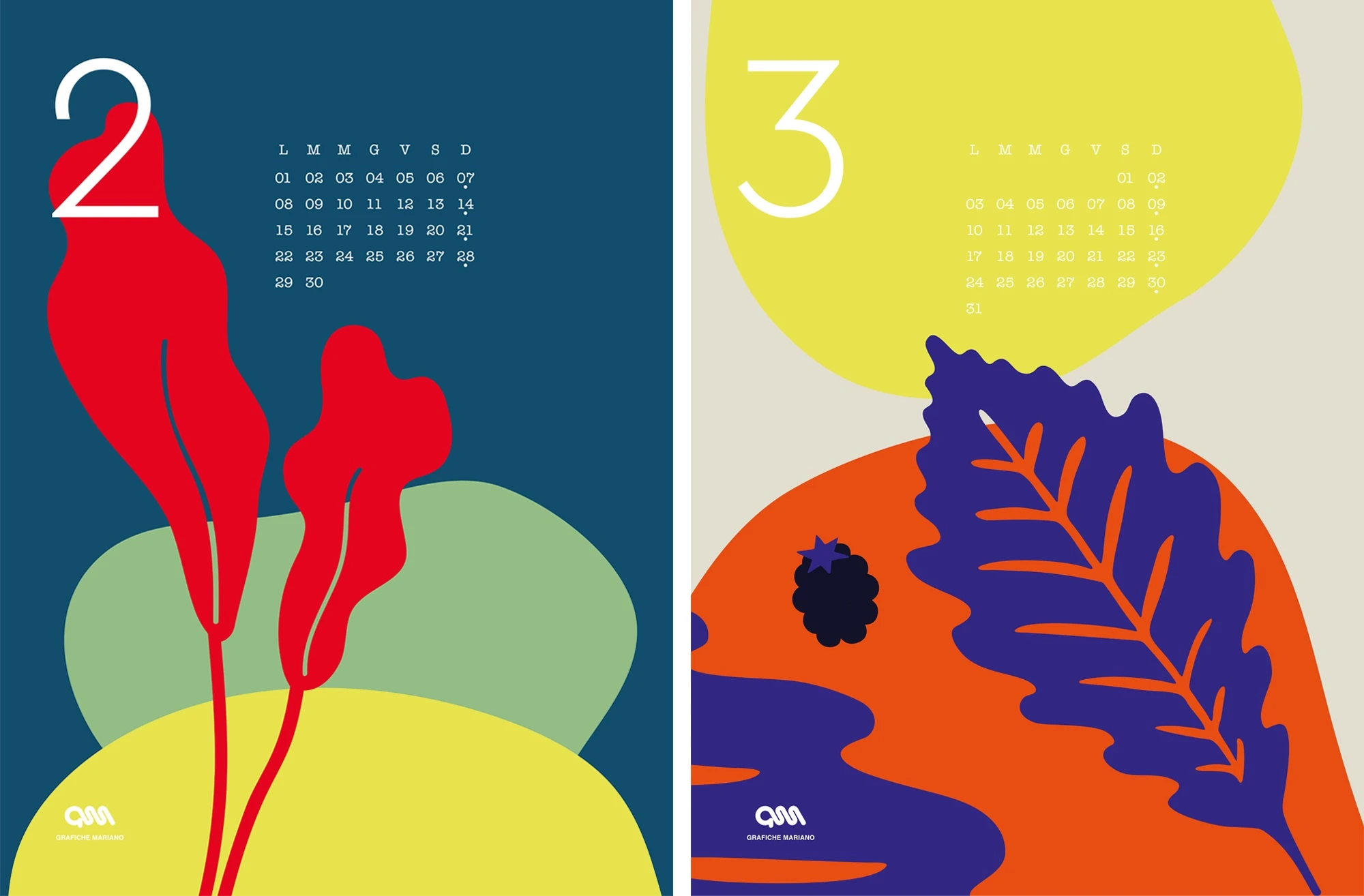 12 COLORFUL MONTHS. Lissoni Graphx interpreted each of the twelve months with essential, ironic, and colorful graphics.