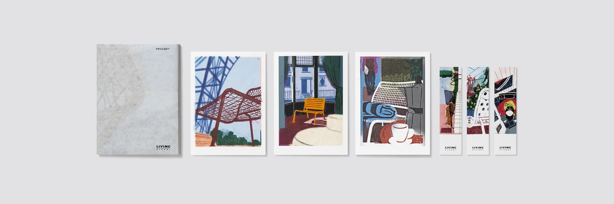 Concept development, art direction and graphic design for Living Divani’s book and a series of coordinated printed materials — poster, postcards, bookmarks and tote bag — on the occasion of the 30th anniversary of the Frog chair.