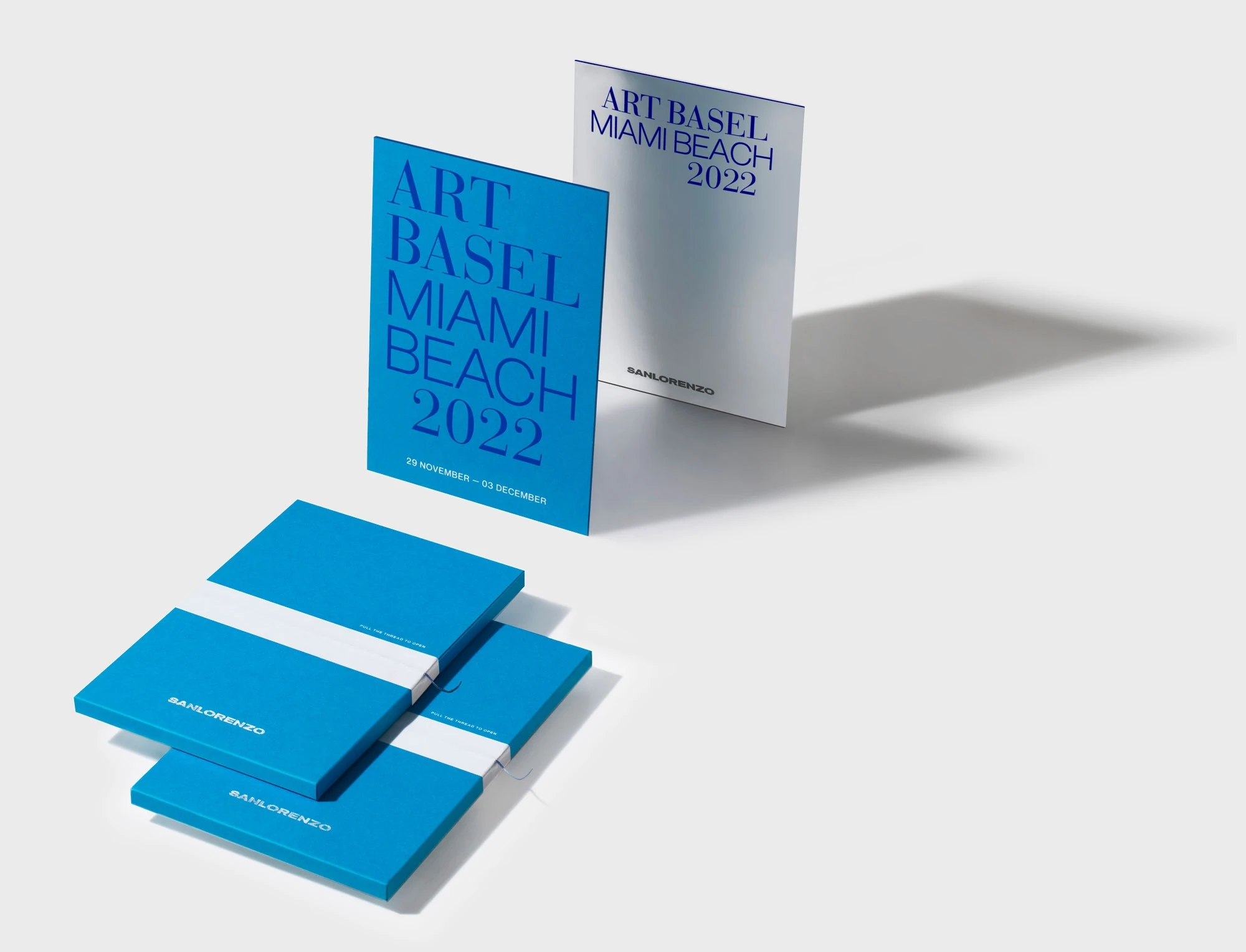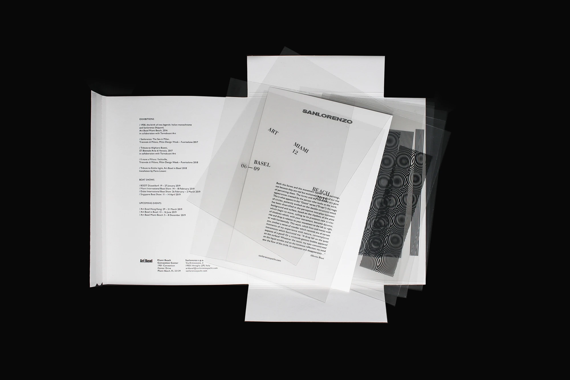 Printed and digital invitation and booklet for Sanlorenzo’s Art Basel exhibitions.