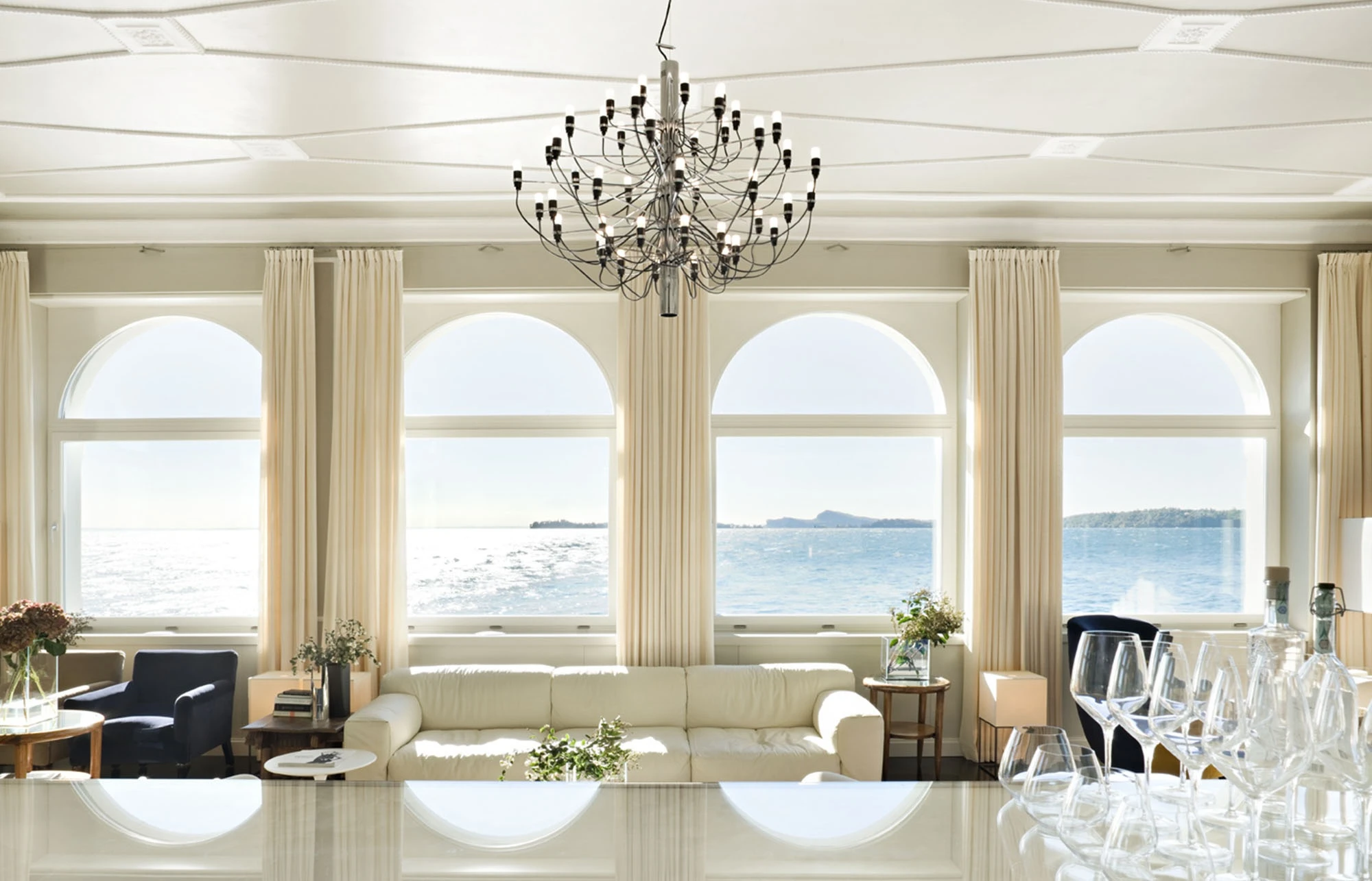 Situated in a splendid location on Garda Lake, the 23 rooms Bellariva Hotel, a historic manor house, was completely renovated. The project transformed the size of the rooms, along with the level of comfort and service offered. The public spaces are situated on the ground floor, consisting of a lounge area, a bar, a restaurant and a new kitchen, spread over two floors, with the food preparation on the ground floor and the store room on the floor below.