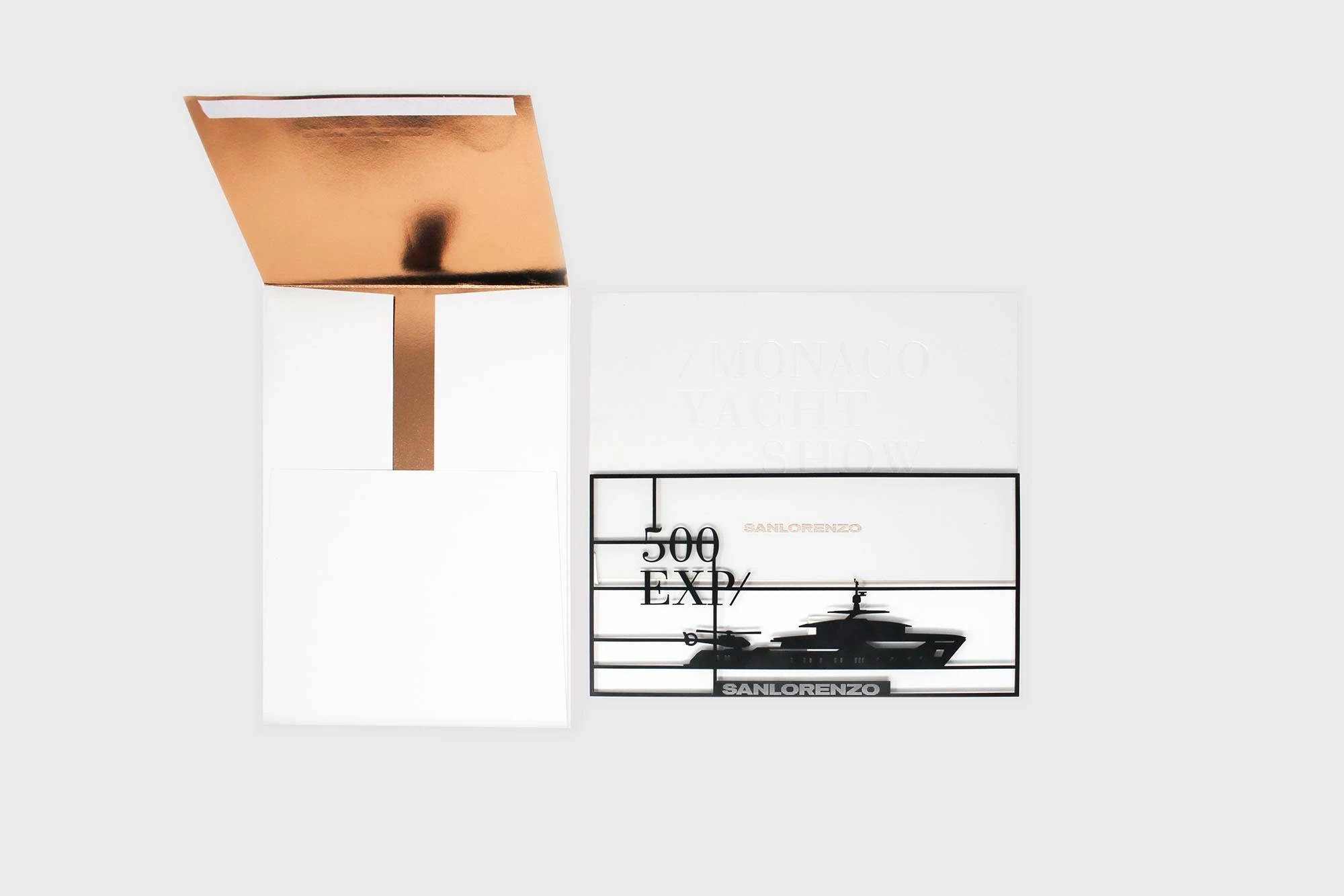 Printed and digital invitation for Sanlorenzo’s Boat shows.