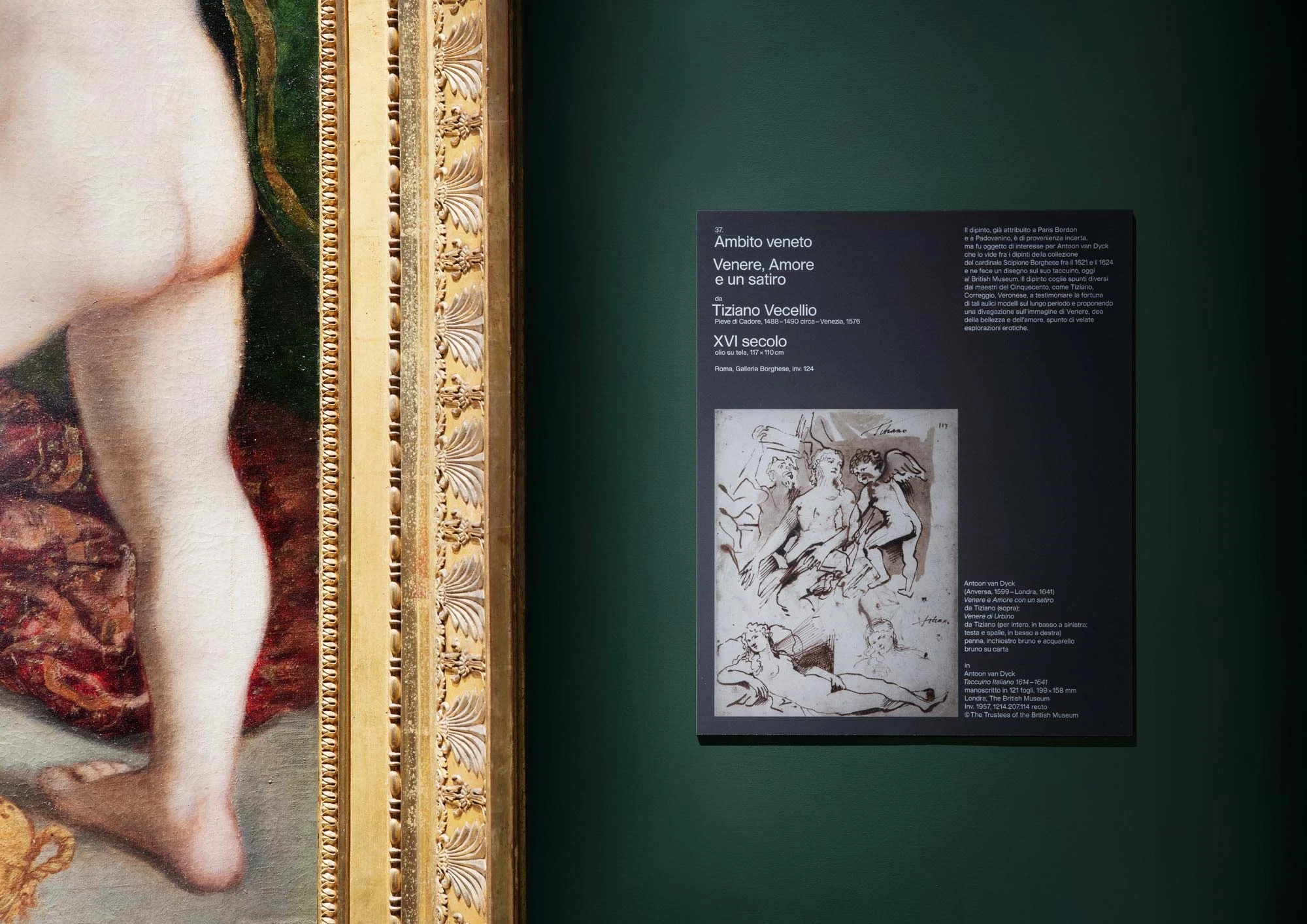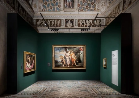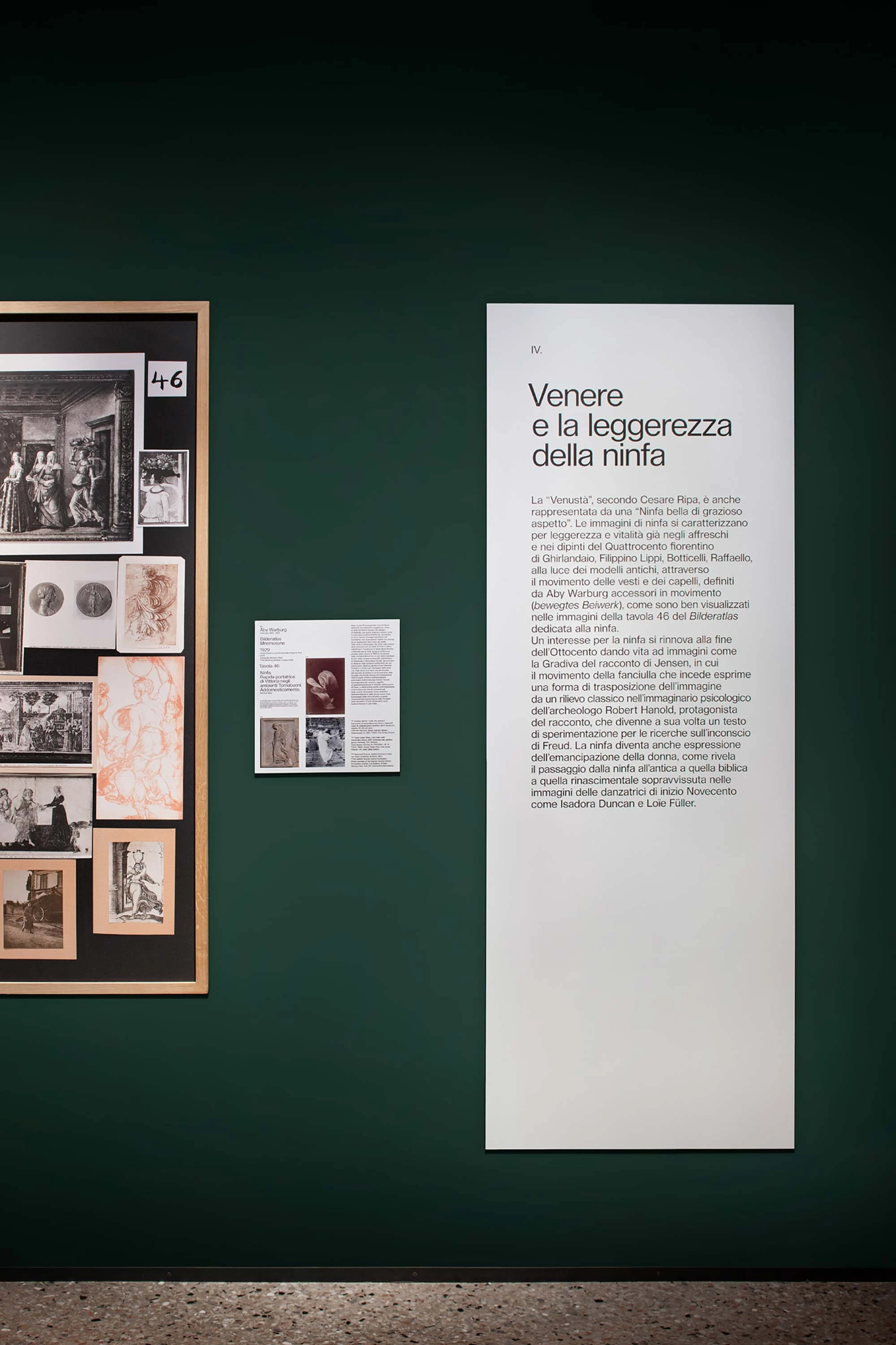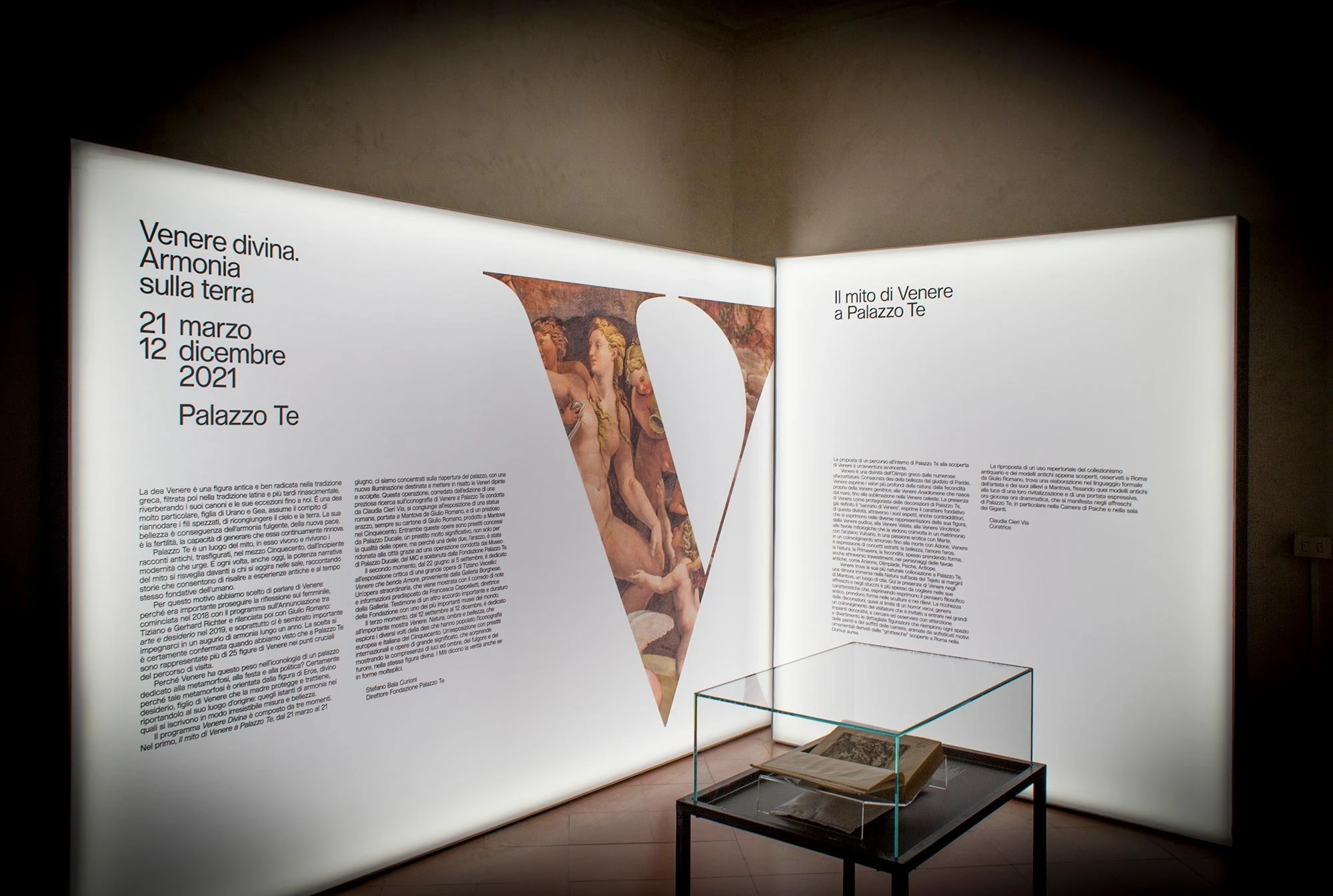 The V of Venus was used to define all the visual communications, a majestic monogram characterized by a serif font that is both forceful and decisive and which combines sinuous curves with fragmented lines, conveying the sensual and complex aspects of her character that are brought to the fore in September’s exhibition. As one stage gives way to the next, so the works chosen to depict the figure of Venus change to reflect this.