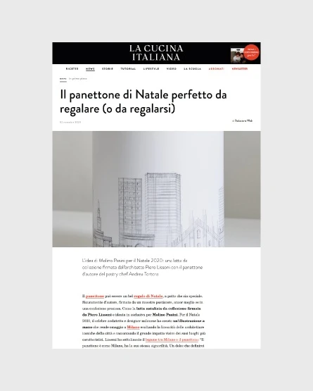 Piero Lissoni’s hand-drawn illustration that adorns the Christmas limited edition tin for the Panettone from the flour milling company Molino Pasini features some of Milan’s iconic architectures, paying tribute to the city where this classic leavened Christmas cake was born.