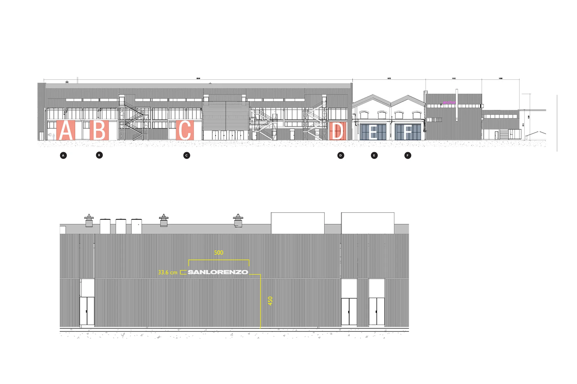 Signage and wayfinding system for Sanlorenzo Headquarters, La Spezia.