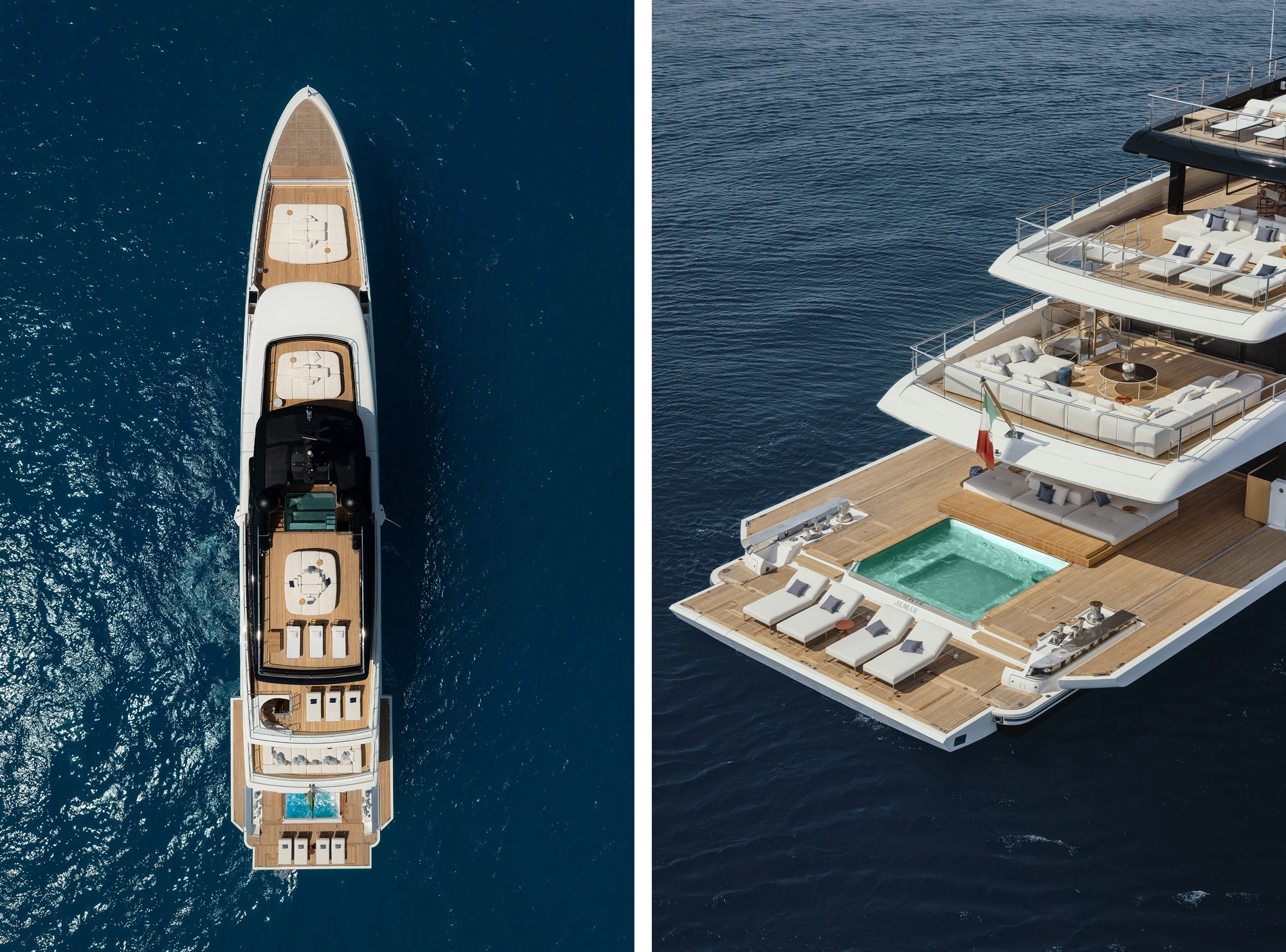 “I think the 50Steel is the most creative boat I’ve ever worked on. It’s creative because it uses hydrogen to power all the lighting and air conditioning systems. It’s creative because it no longer has decks, but rather areas that have been designed as true architectures, so with large spaces that dialogue with each other. It’s creative because, when open, there's a barrier-free beach club extending for over 135 square meters. And it’s creative because what was previously the engine room has now become a living area.” – Piero Lissoni