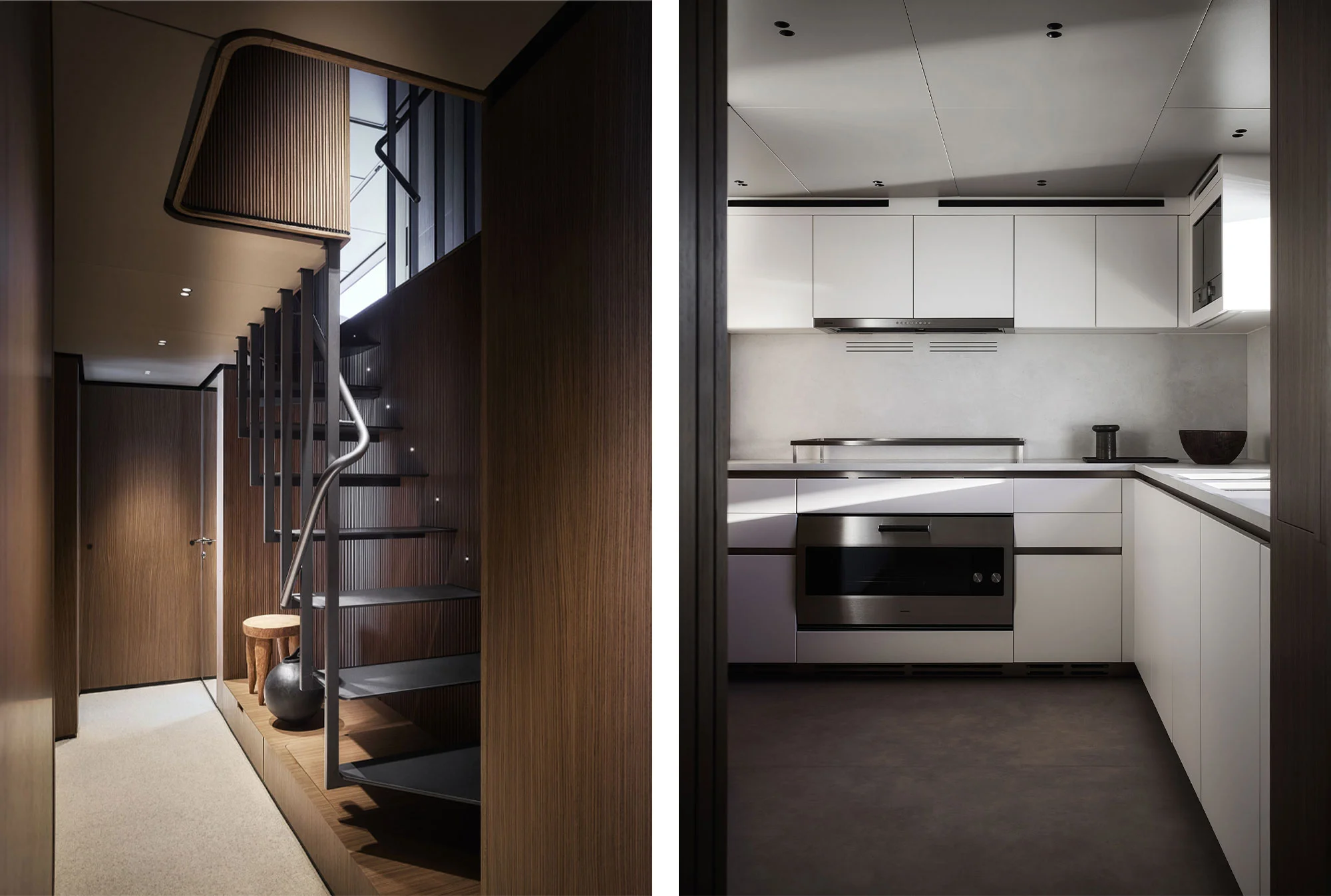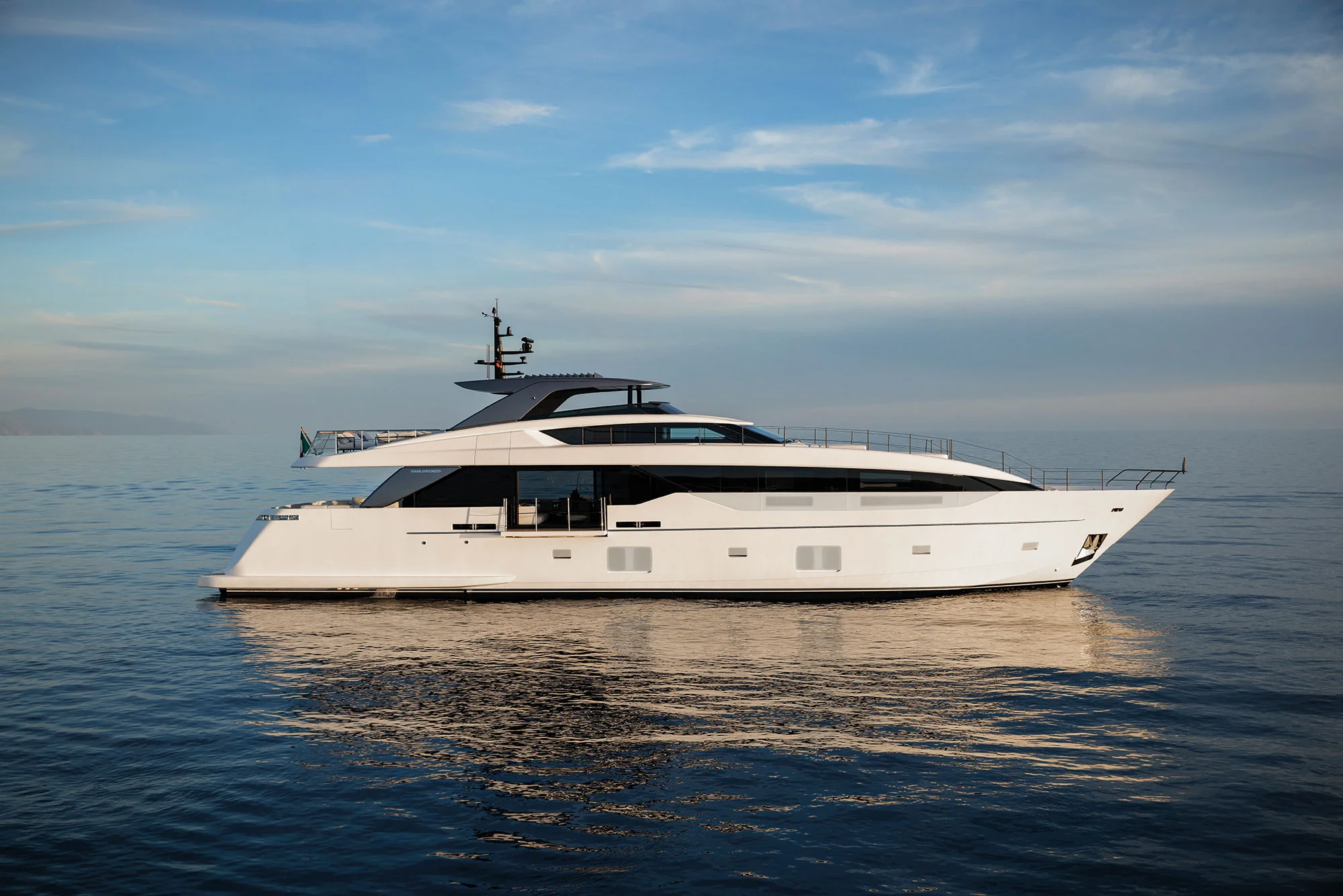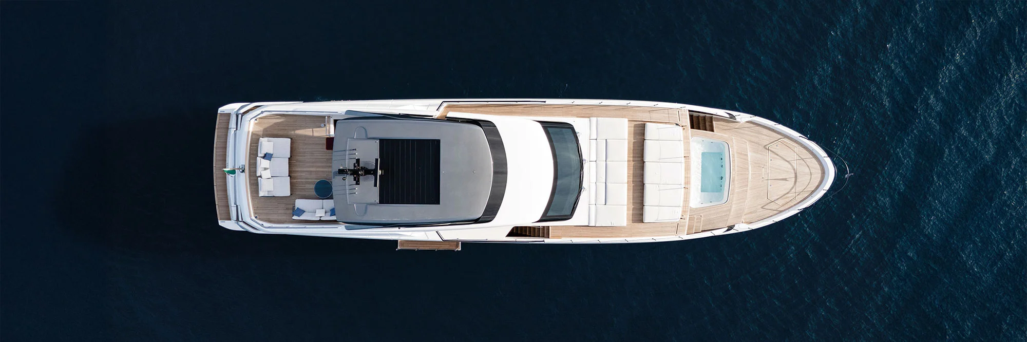 The SL110A is the new model with an asymmetric line, for which we designed the interiors and collaborated on the new prow. The architecture is conceived as a natural extension of the outside, thanks to the large openings that provide continuity between the spaces.