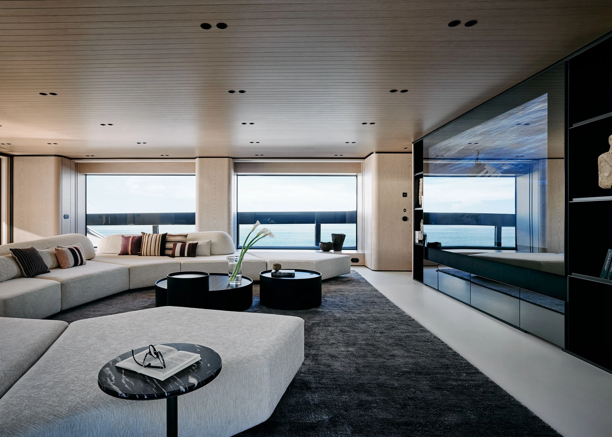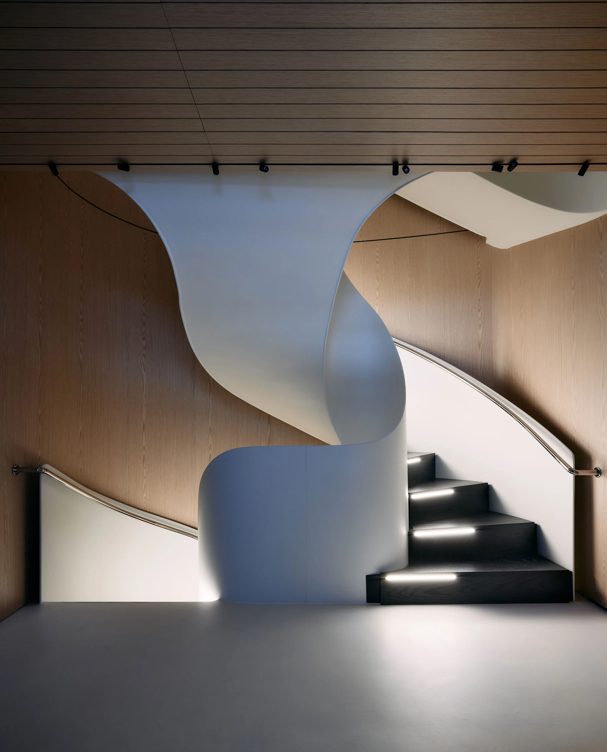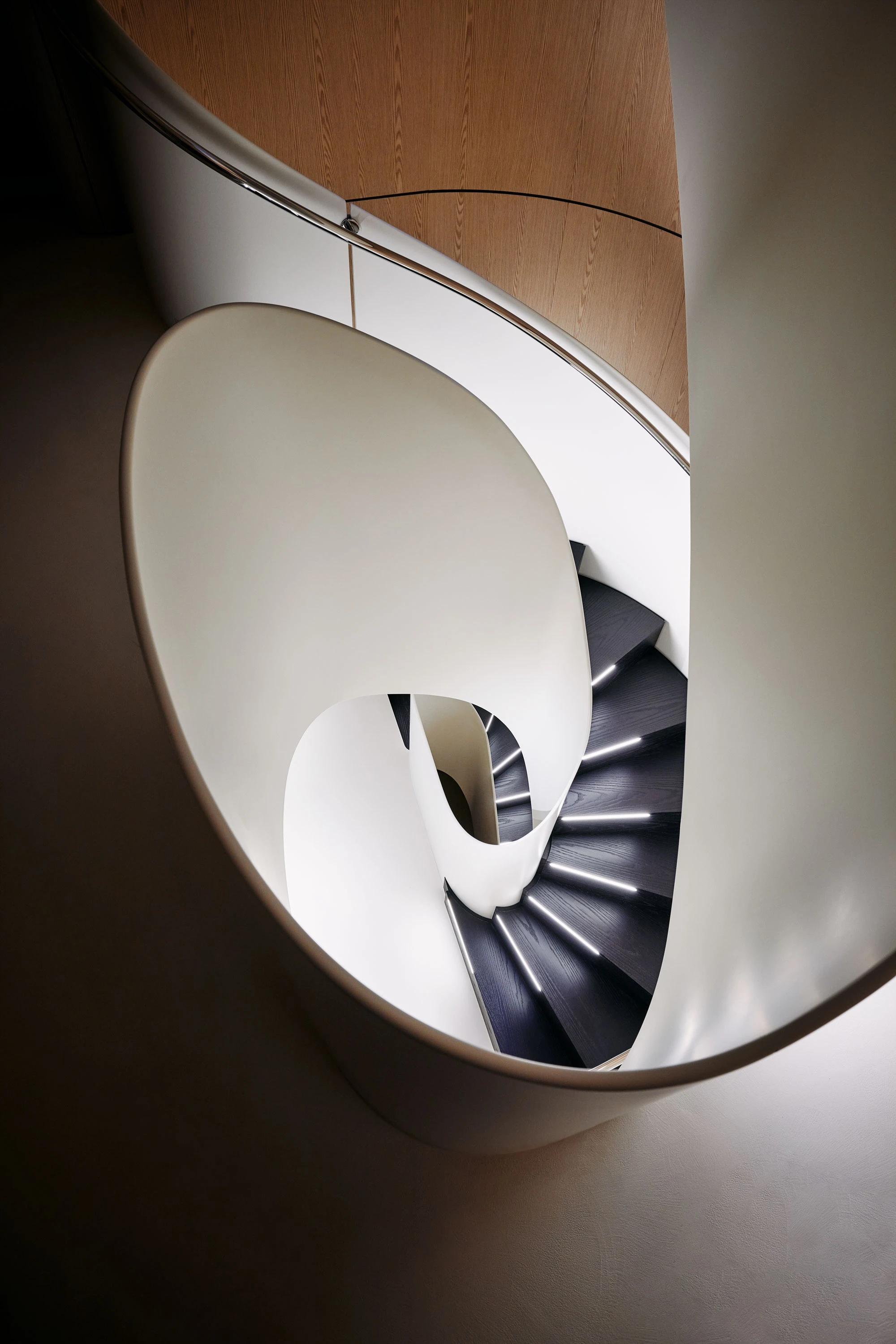"At the design level, this yacht thinks in architectural terms: spaces that open up, vertical elements that dialogue and, of course, I couldn't help but include one of my staircases. Again, it is not simply a staircase, but a kind of twilight zone, an intermediate space between many different places. I hope that the owners will ascend and descend this staircase as if in a dream." Piero Lissoni