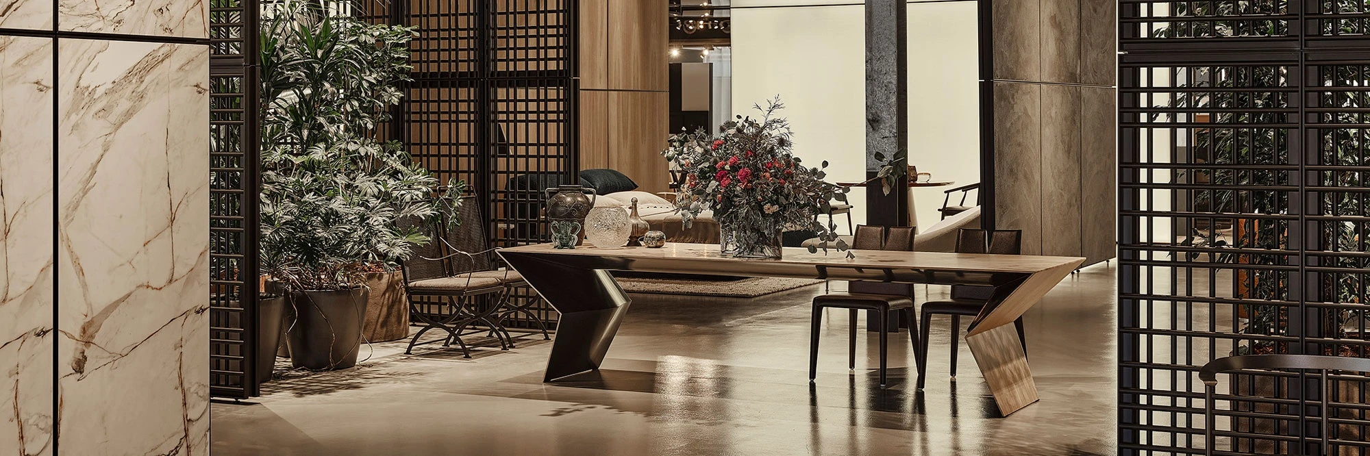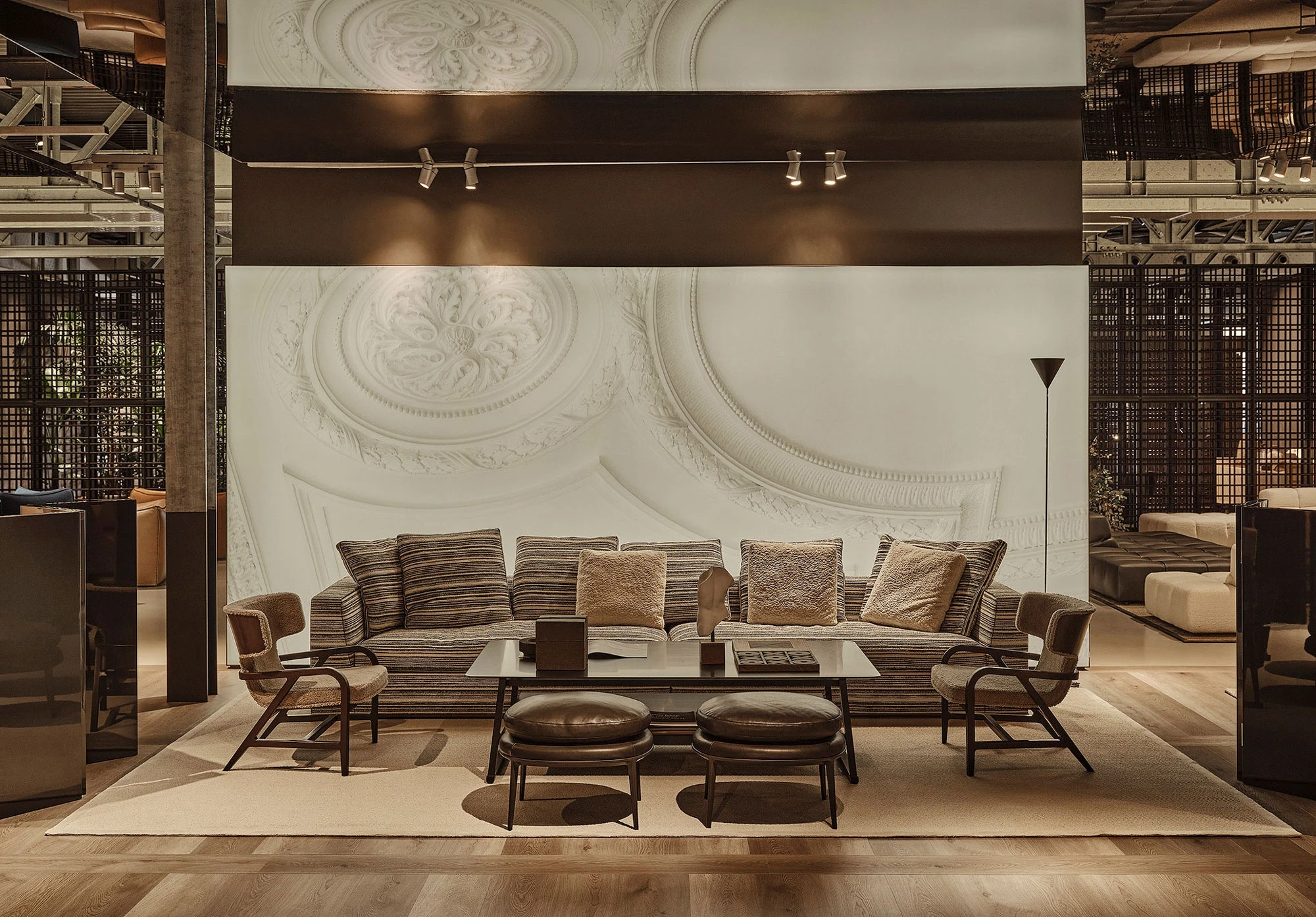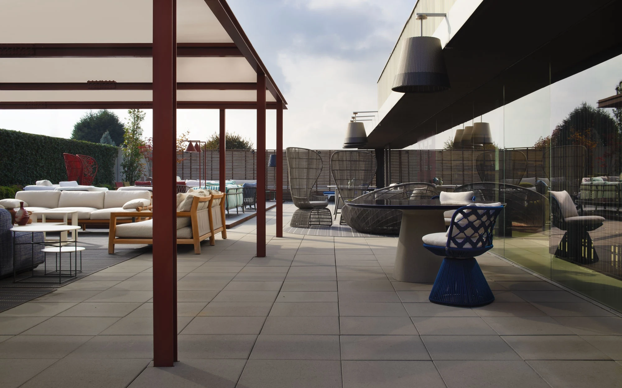 The project starts from the idea of wanting to give voice to the industrial soul, emphasizing its architectural structure and designing the showroom within as an enormous theatre space. The spaces were expanded and new colors were chosen, while the floor in cement allows it to integrate effortlessly with other materials and objects (fabrics, carpets, etc.), because the aim is to rotate the products frequently and propose ever new settings. Light is a fundamental element of the project, and the choice focusses on a selection of decorative lamps to produce warm and homely settings for the products from the collection. At the same time, the space is flanked by backlit walls to offer a surprise effect. Lastly, the gardens and plants work to connect and create a dialogue between the interior and the exterior in seamless continuity.
