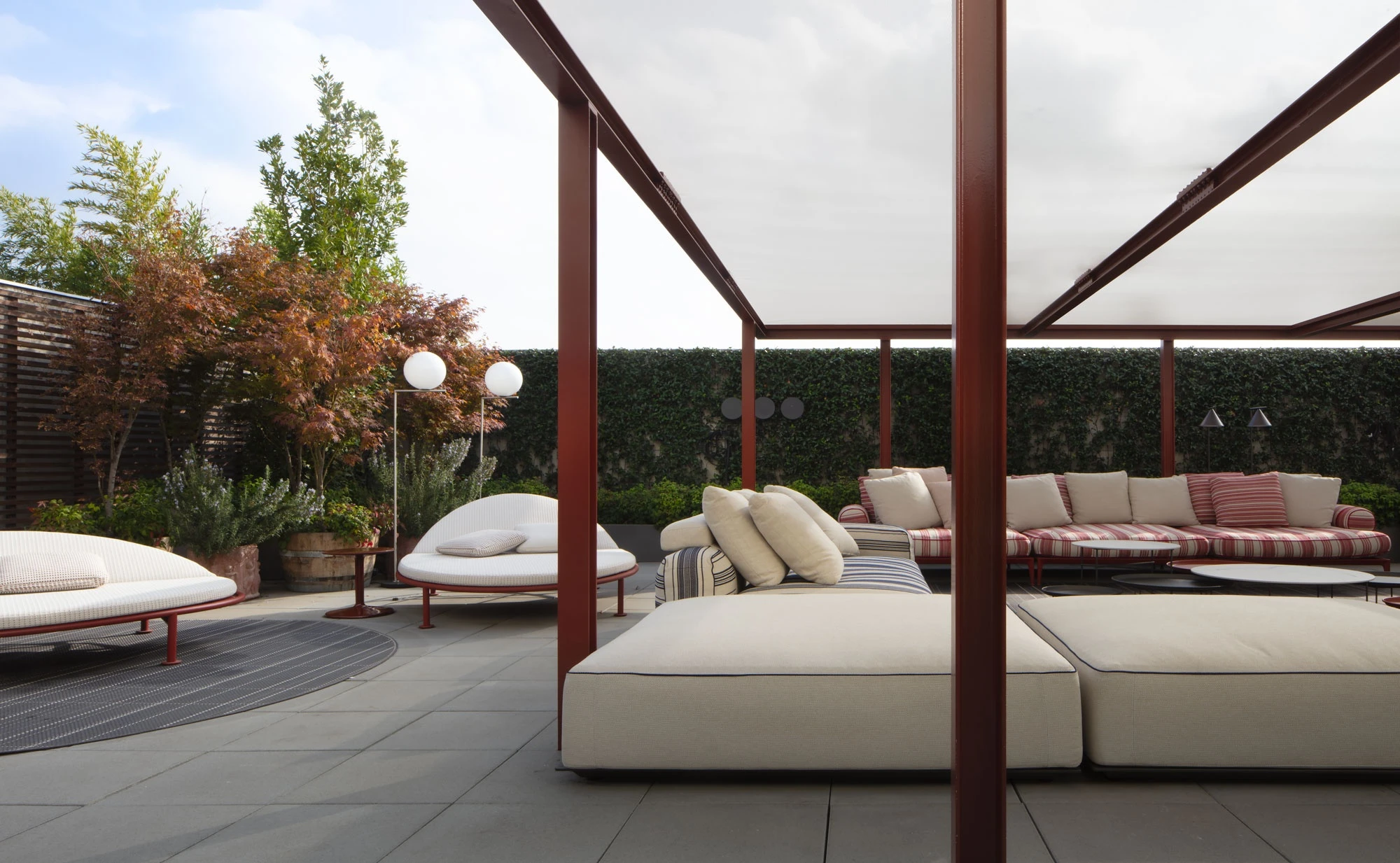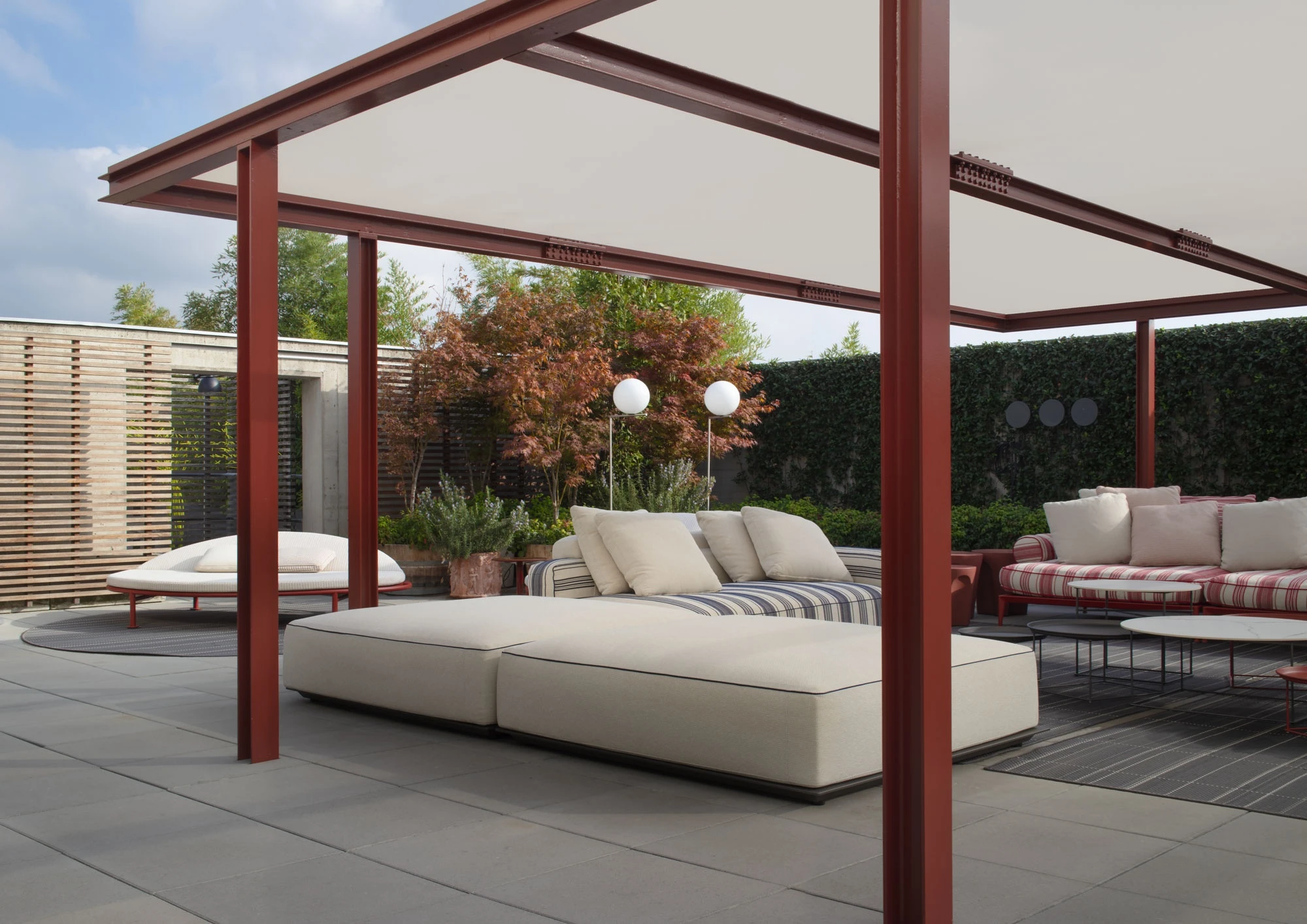 “I designed the space as if it were an enormous theatre where the products take turns on the stage. I extended the surfaces and worked with the light to produce an effect that is singular and dreamlike. Then I used the gardens as a bond between the interior and exterior spaces.” Piero Lissoni