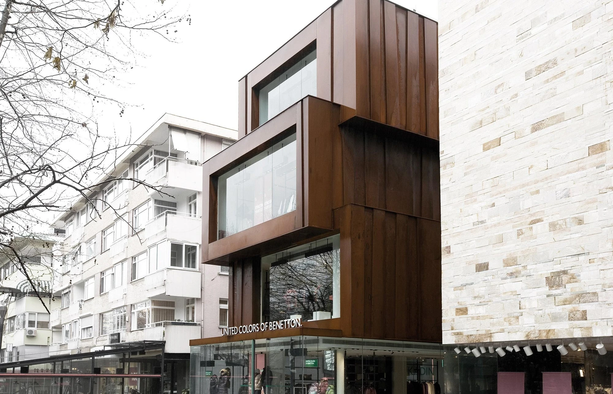 Given that the new building is located in an earthquake zone and was also subject to strict urban planning regulations, severe limits were placed on the concept. Steel and concrete were used for the construction of the building due to their elasticity and load-bearing capacity, while the façade is clad with Corten steel plates, making it possible to substantially reduce the thickness of the façade and therefore also the weight of the building itself. In addition, the weather-resistant nature of the material prevents corrosion and its surface confers a striking appearance to the building.